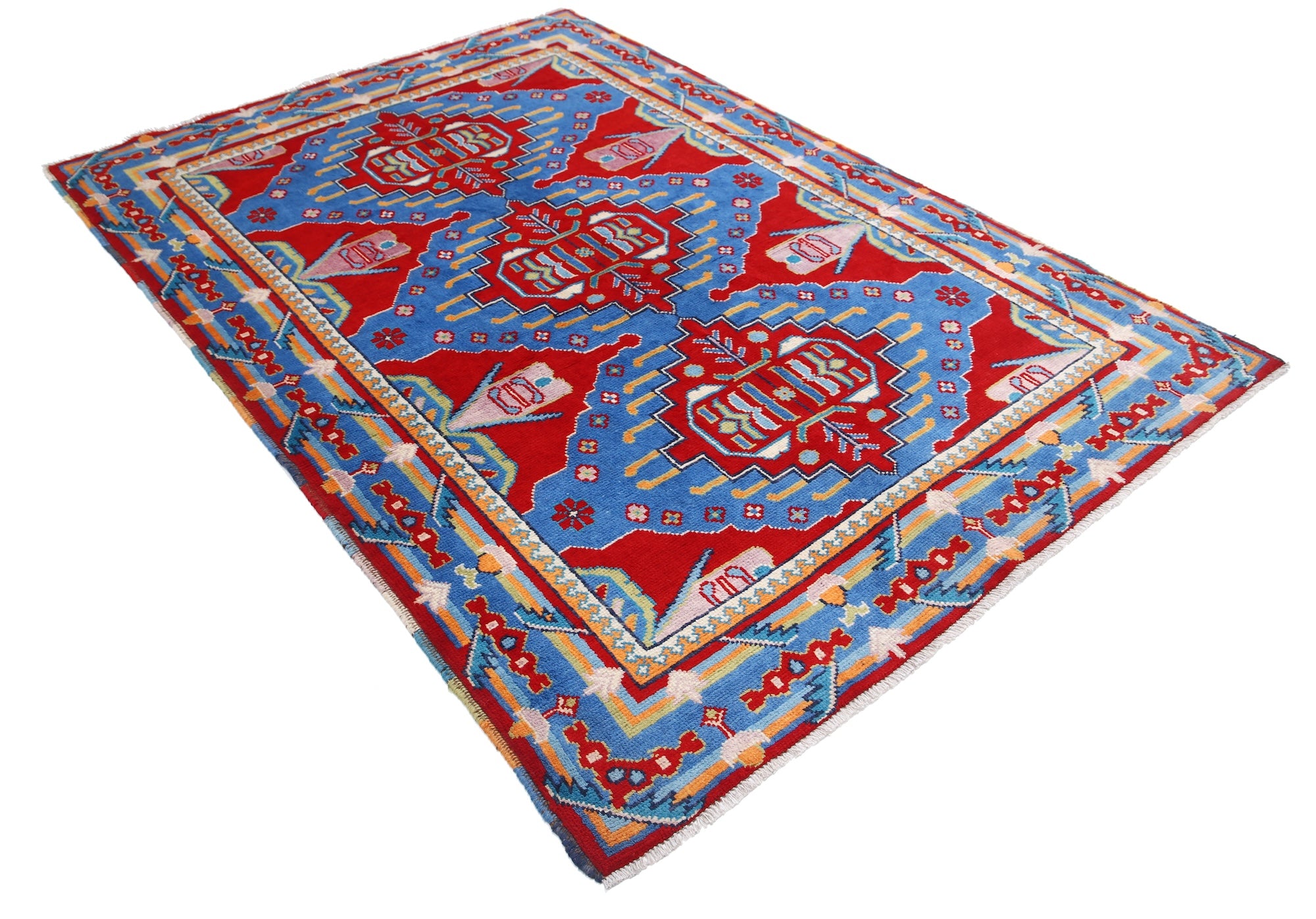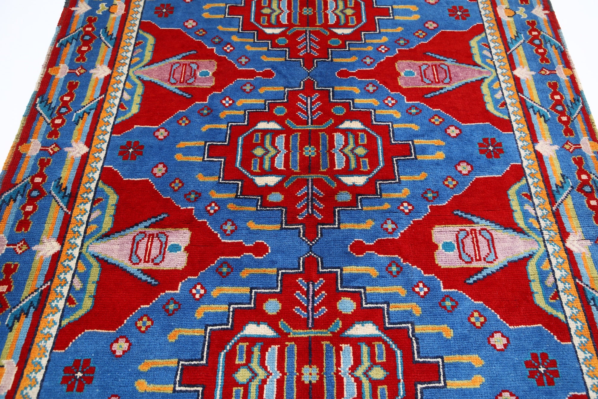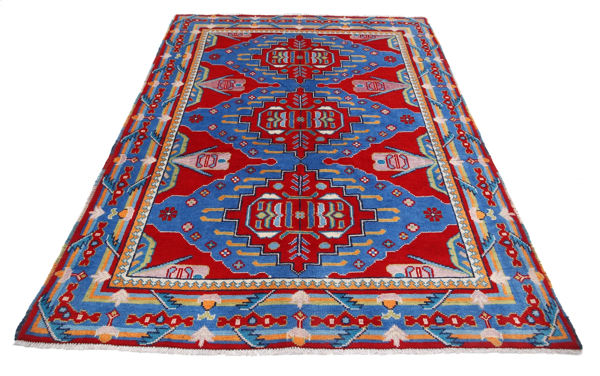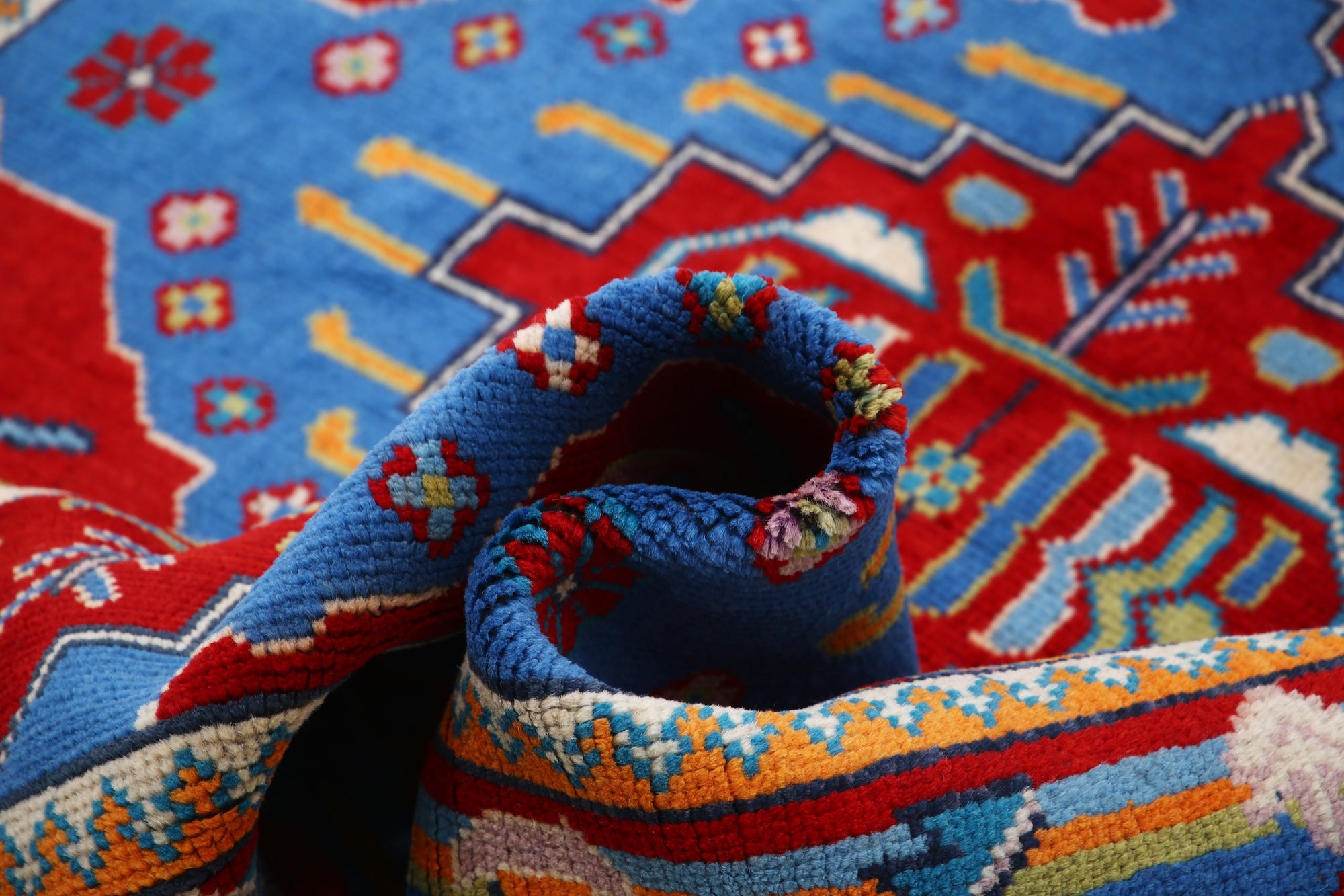 The hand-knotted Afghan wool rug features an intricate tribal geometric design, celebrated for its cultural heritage and timeless elegance. Woven by skilled artisans, it offers exceptional durability, making it ideal for high-traffic areas. Its unique patterns and premium wool blend tradition with modern sophistication, adding warmth and character to any interior.