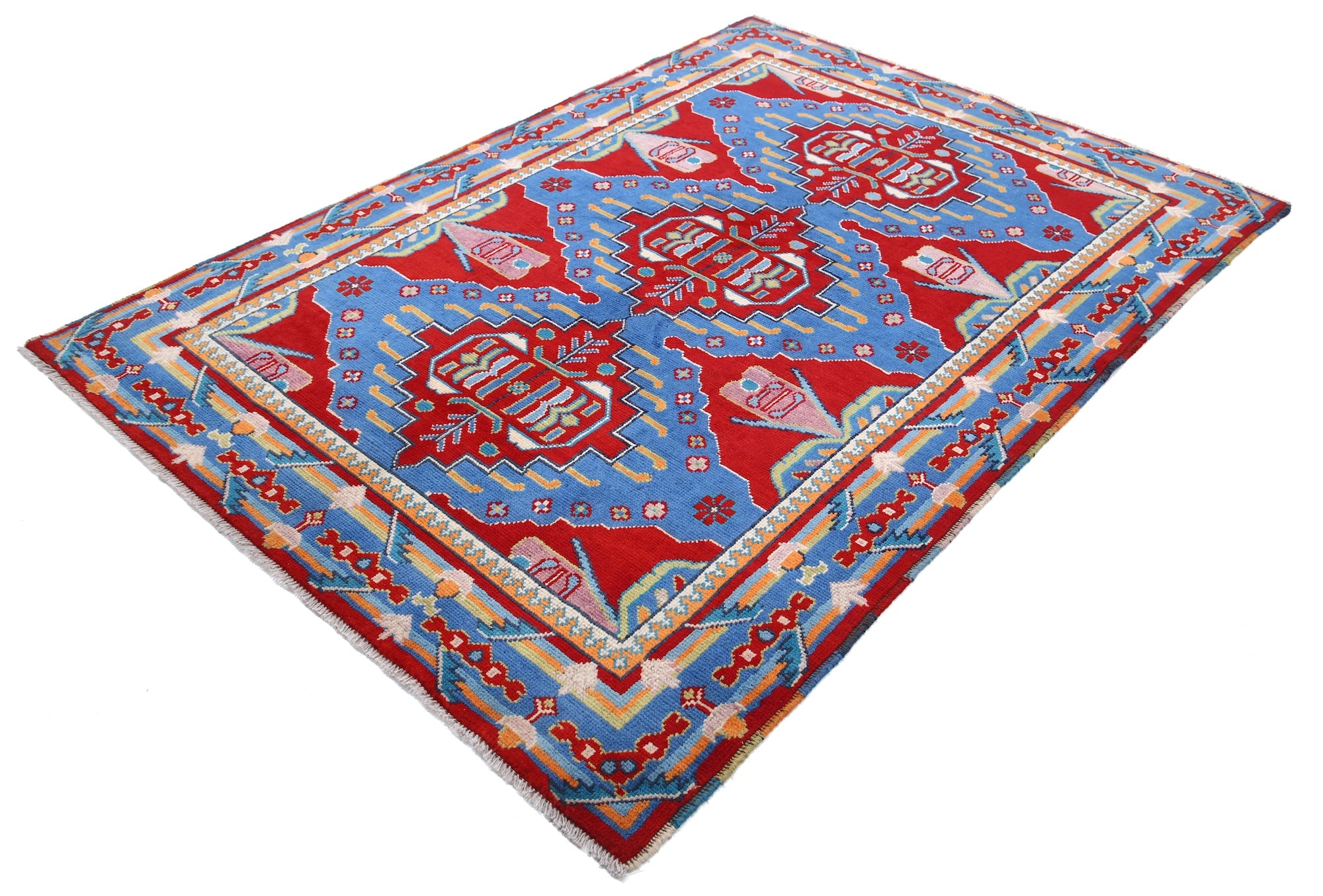 Hand-Knotted Tribal Geometric Wool Rug - 5'6" x 7'9"