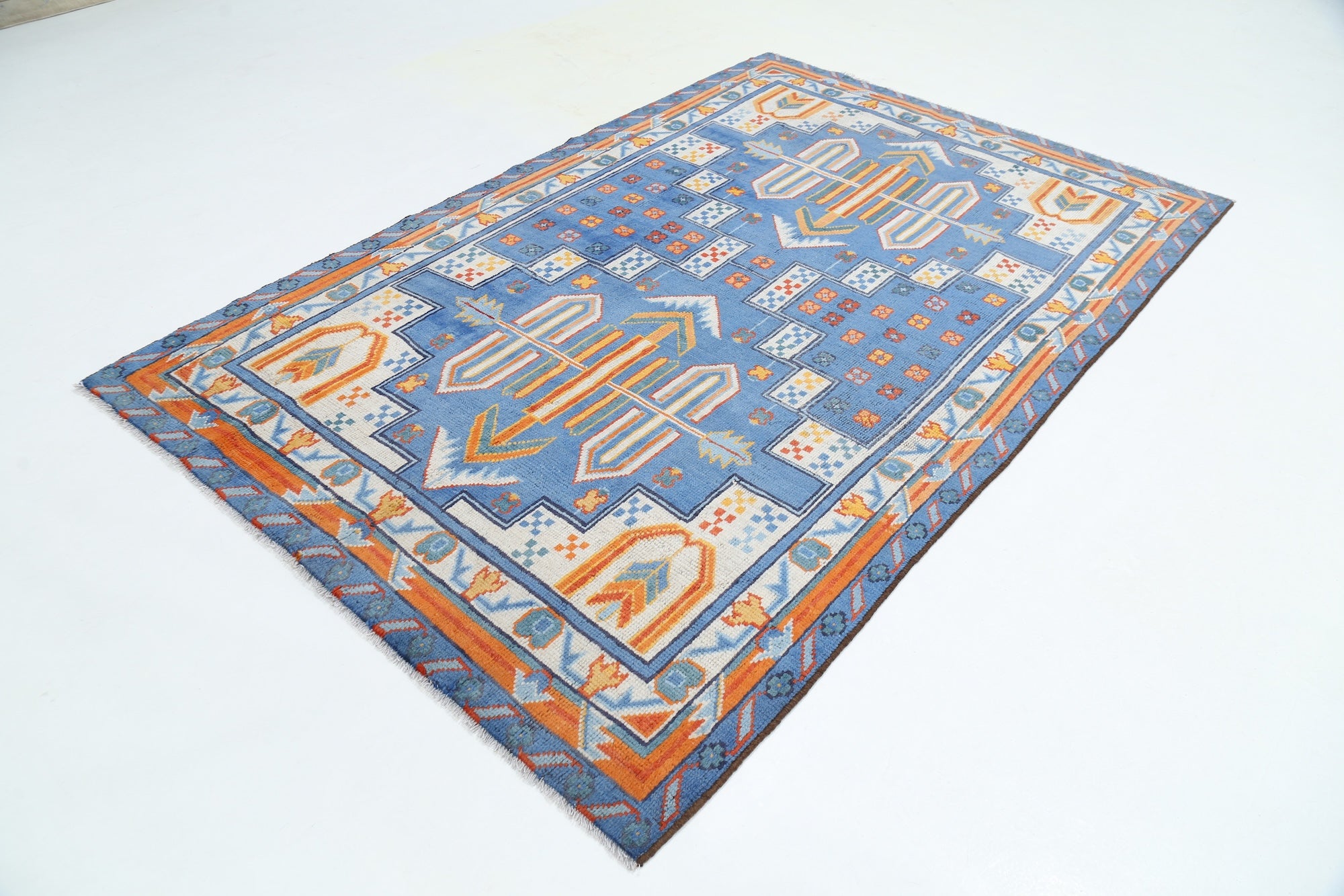 Hand-Knotted Tribal Geometric Wool Rug - 5'6" x 8'2"