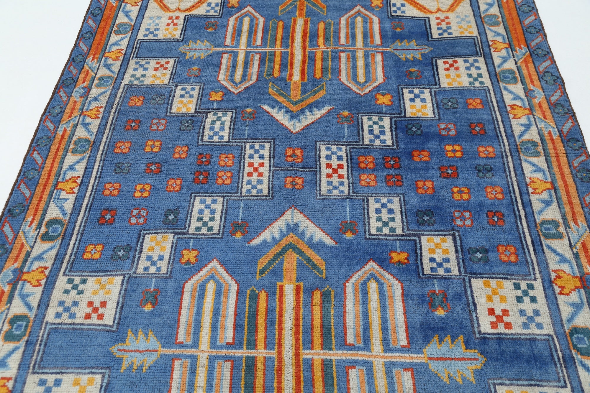 The hand-knotted Afghan wool rug features an intricate tribal geometric design, celebrated for its cultural heritage and timeless elegance. Woven by skilled artisans, it offers exceptional durability, making it ideal for high-traffic areas. Its unique patterns and premium wool blend tradition with modern sophistication, adding warmth and character to any interior.
