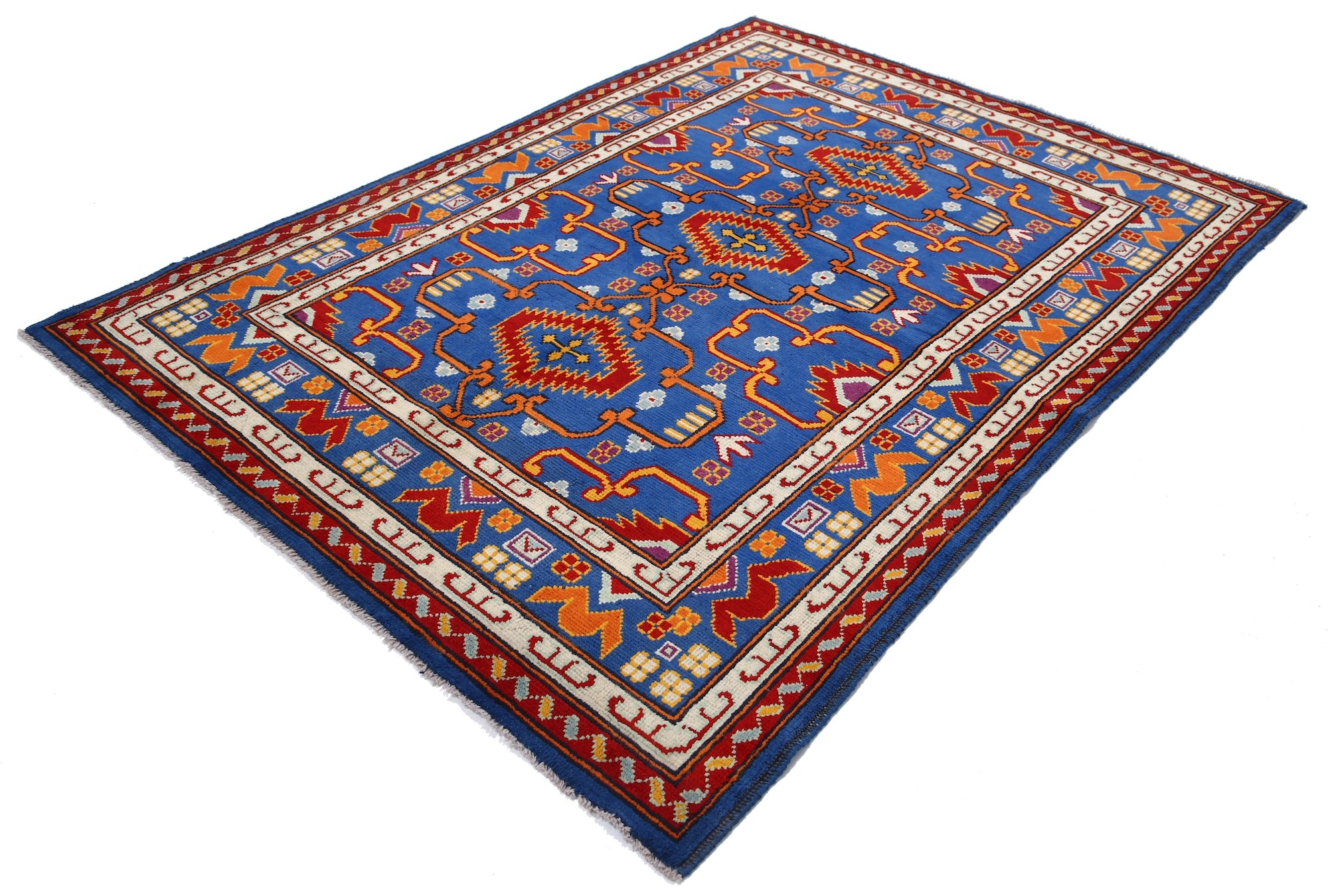 Hand-Knotted Tribal Geometric Wool Rug - 5'9" x 8'0"