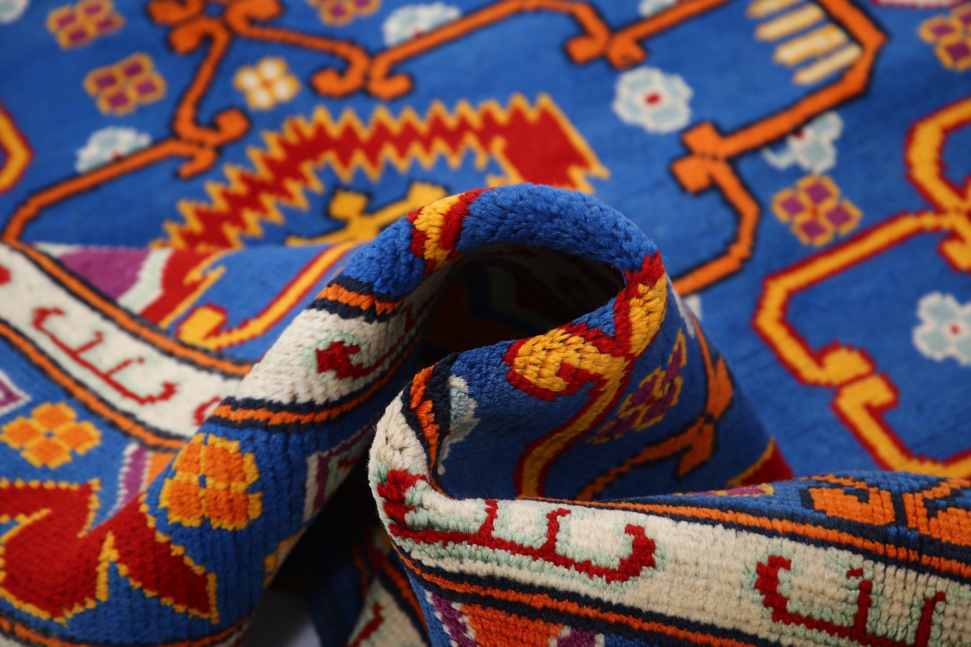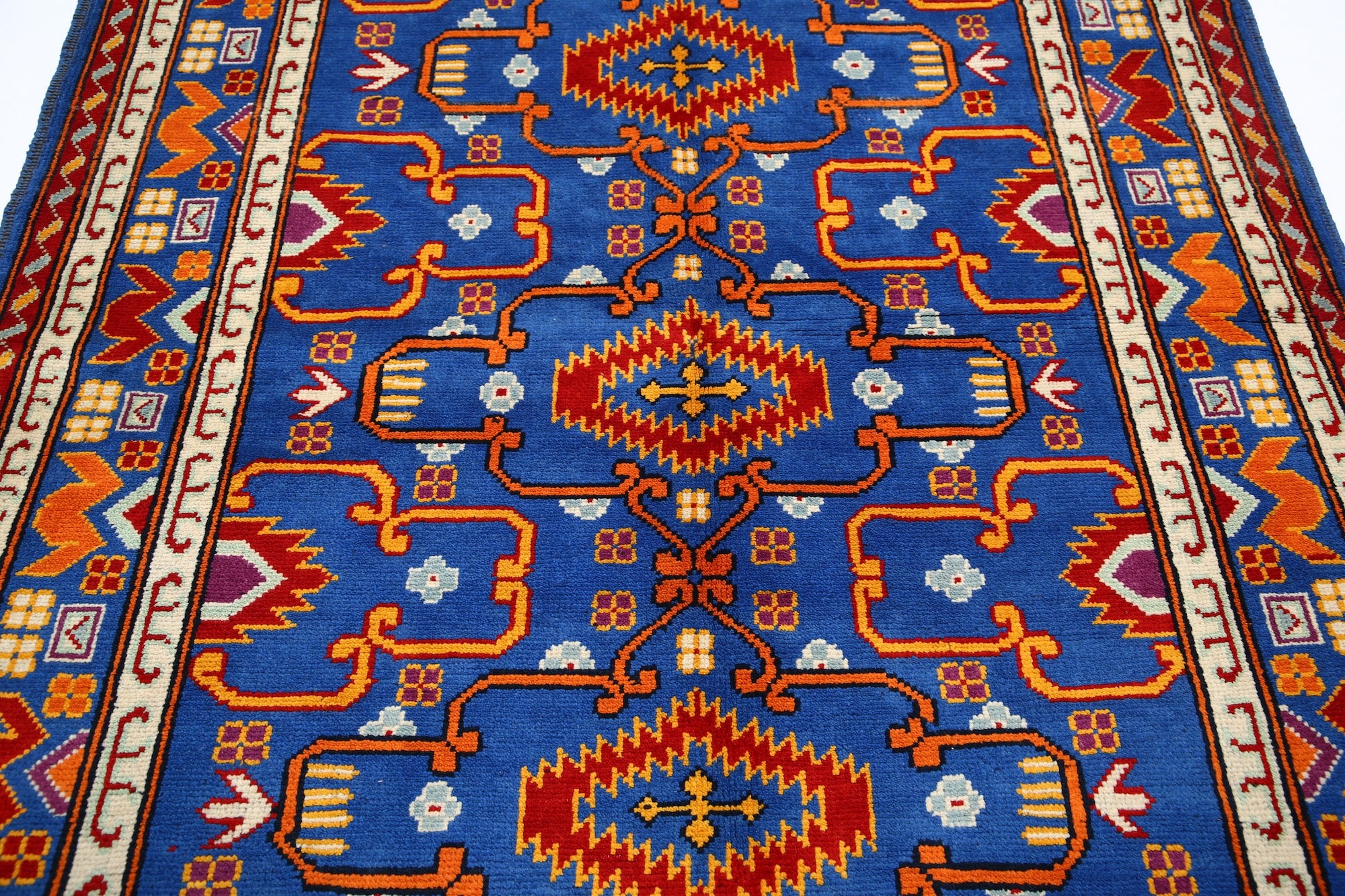 The hand-knotted Afghan wool rug features an intricate tribal geometric design, celebrated for its cultural heritage and timeless elegance. Woven by skilled artisans, it offers exceptional durability, making it ideal for high-traffic areas. Its unique patterns and premium wool blend tradition with modern sophistication, adding warmth and character to any interior.