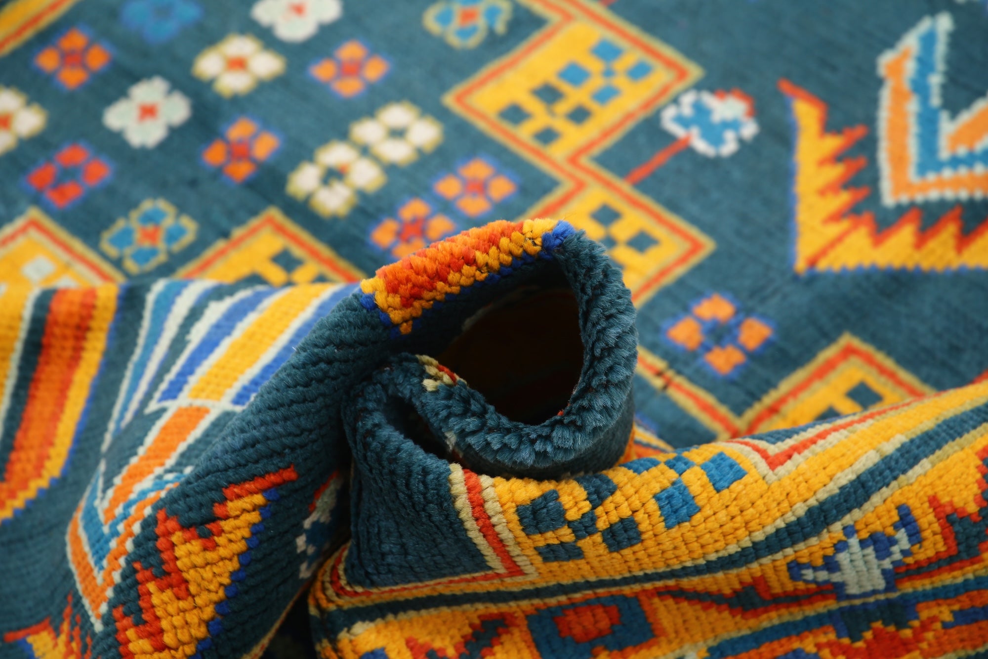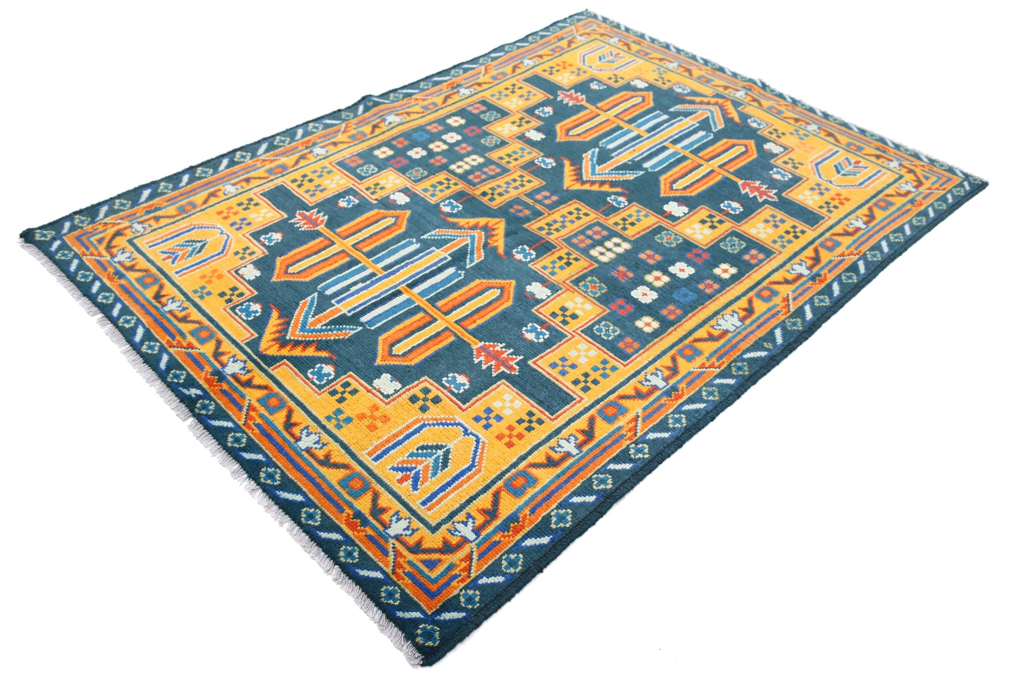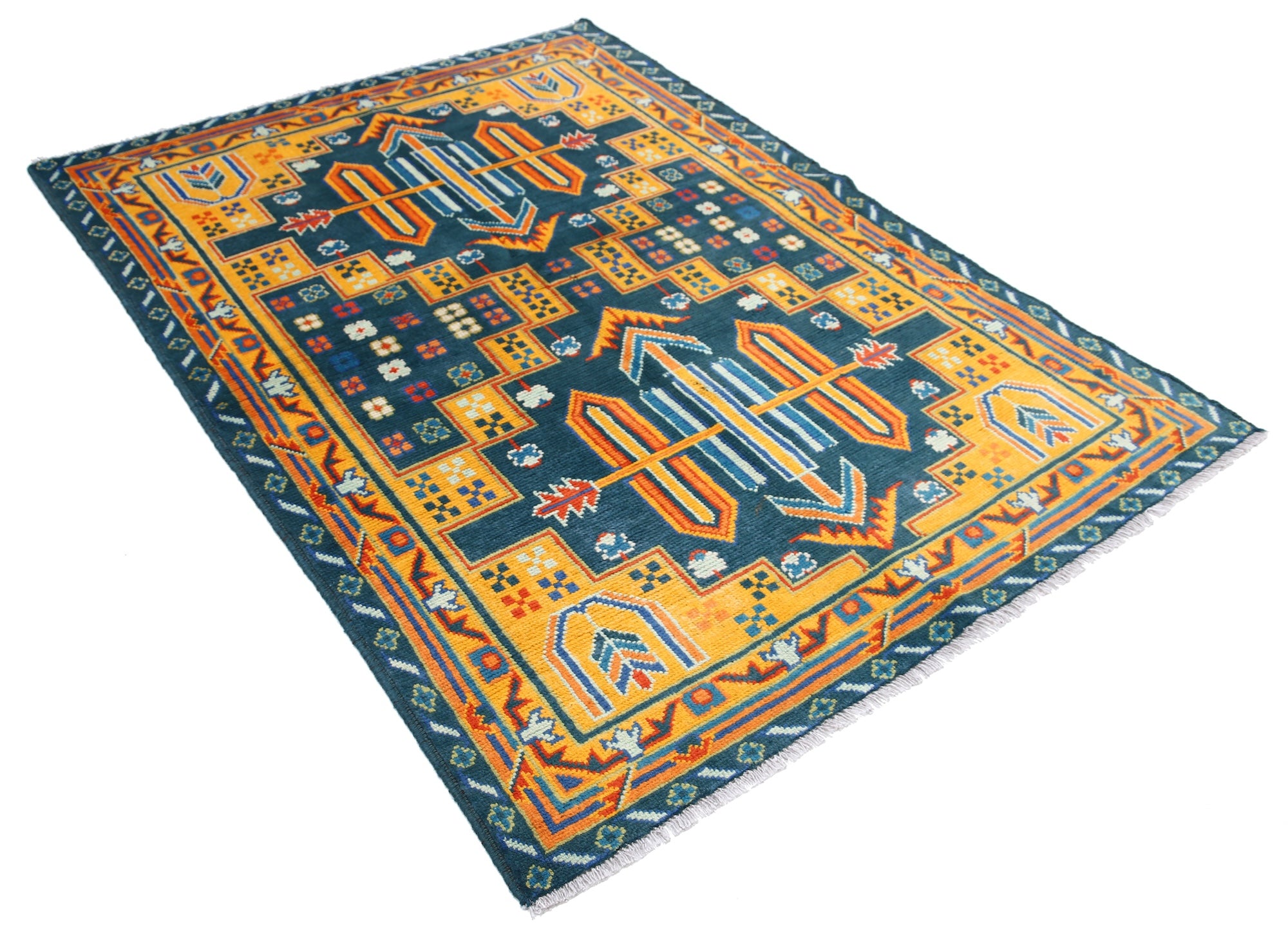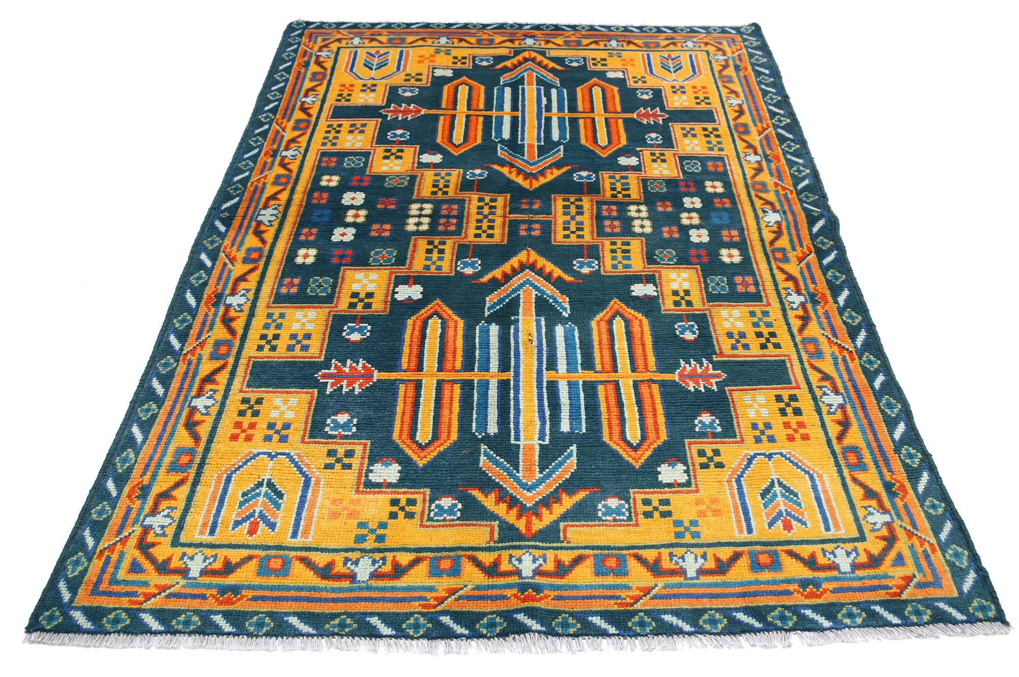 The hand-knotted Afghan wool rug features an intricate tribal geometric design, celebrated for its cultural heritage and timeless elegance. Woven by skilled artisans, it offers exceptional durability, making it ideal for high-traffic areas. Its unique patterns and premium wool blend tradition with modern sophistication, adding warmth and character to any interior.