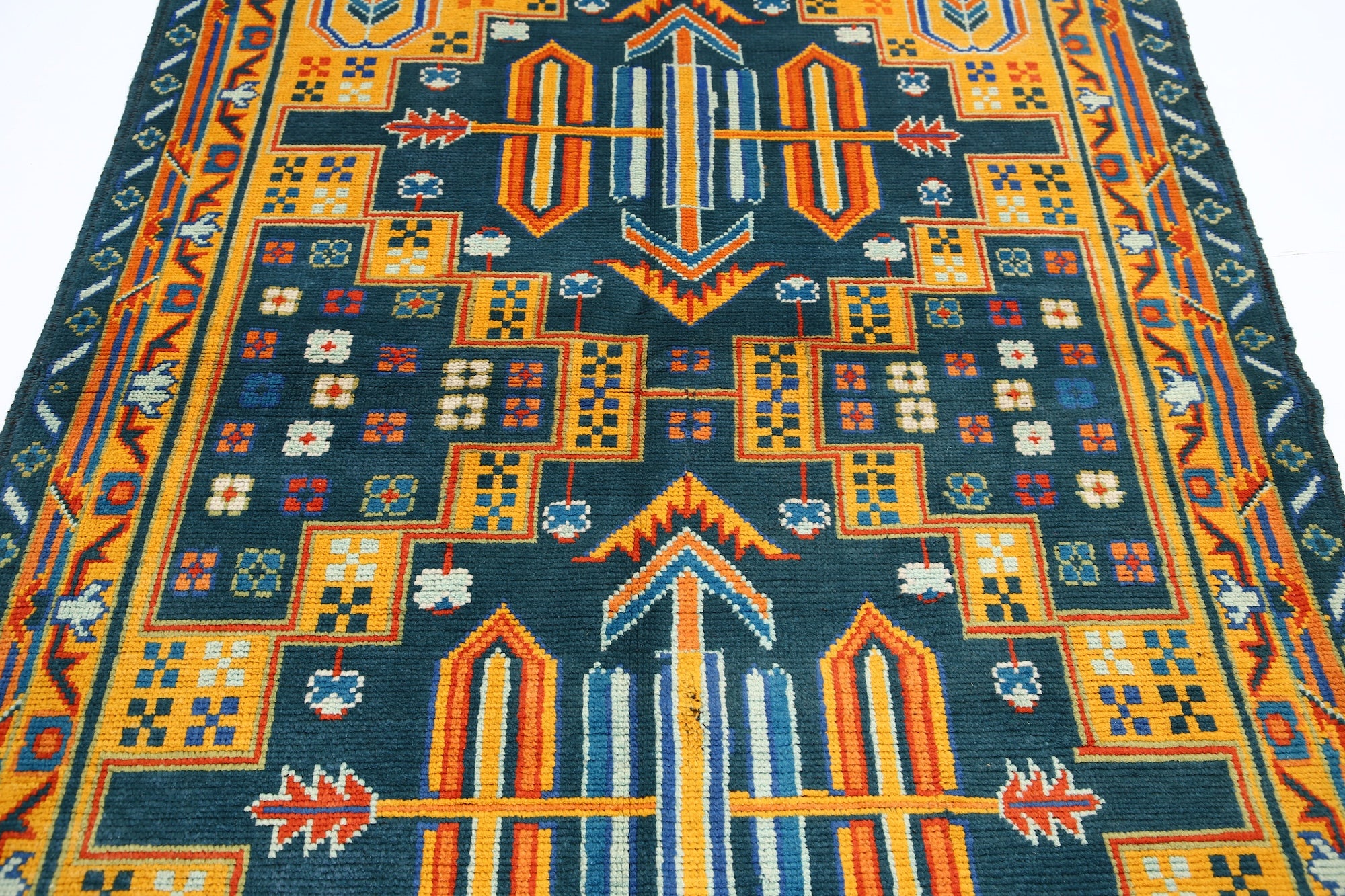 Hand-Knotted Tribal Geometric Wool Rug - 4'10" x 6'10"