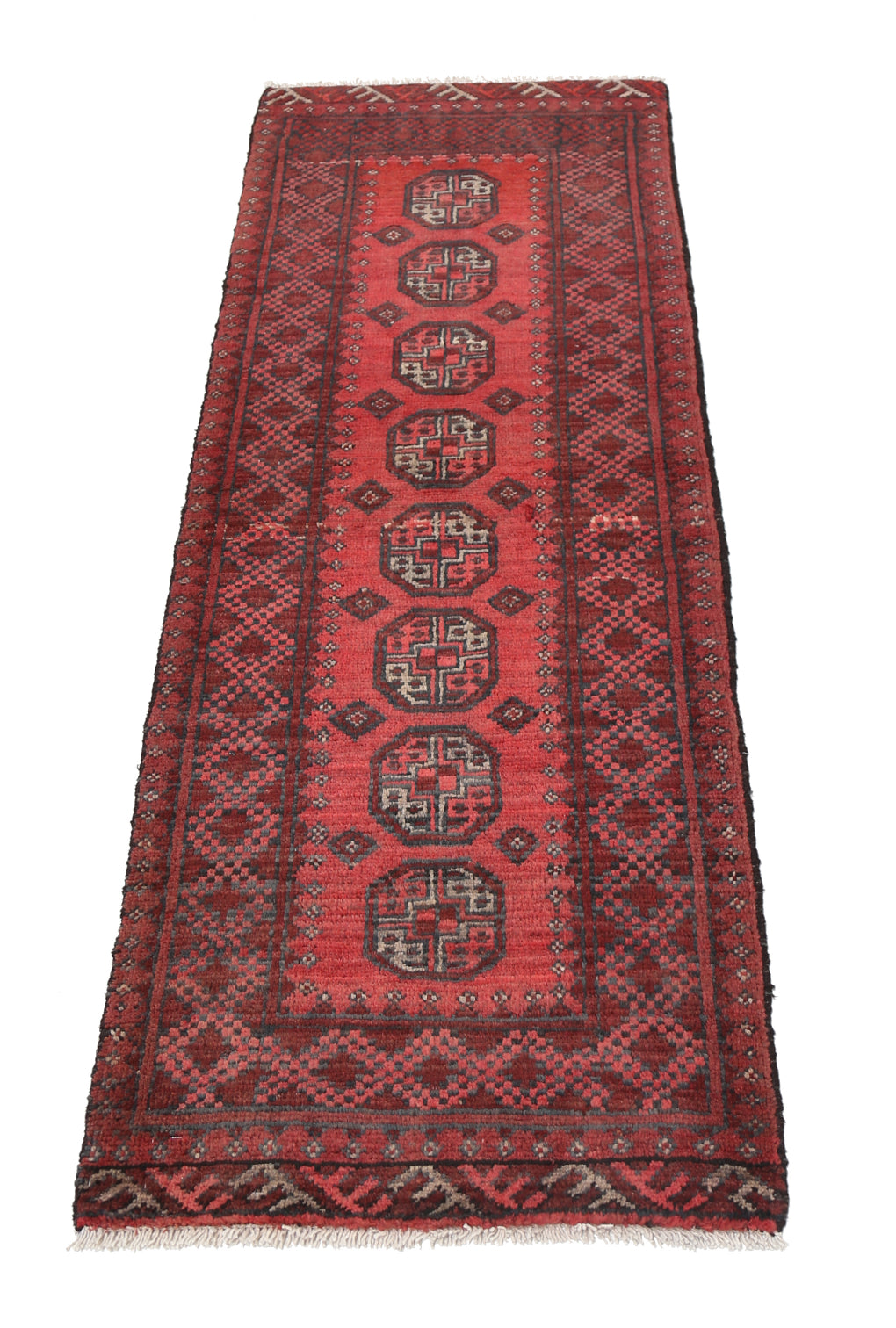 Hand-Knotted Afghan Tribal Geometric Wool Rug - 1'6" x 4'4"