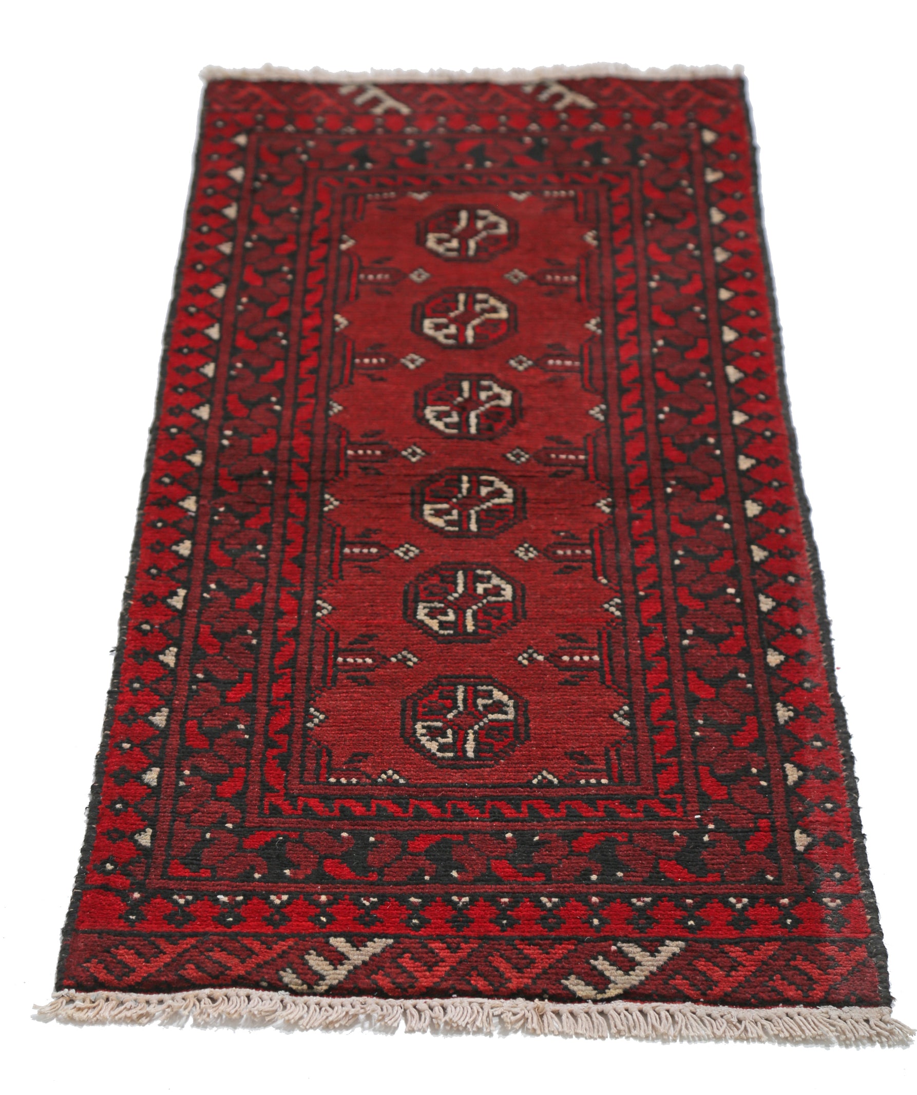 Hand-Knotted Afghan Tribal Geometric Wool Rug - 1'8" x 4'4"
