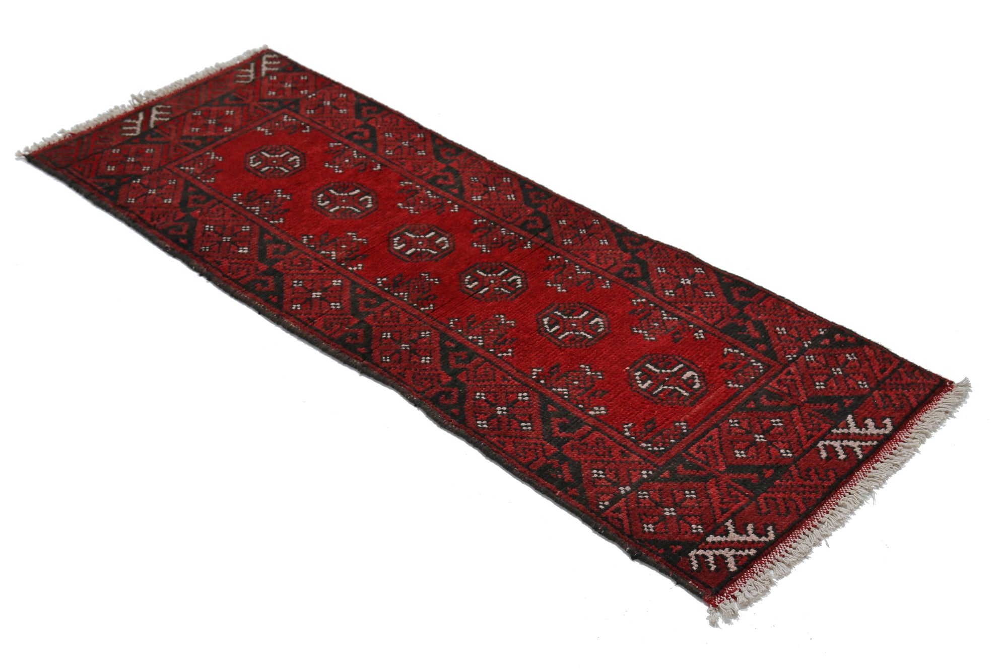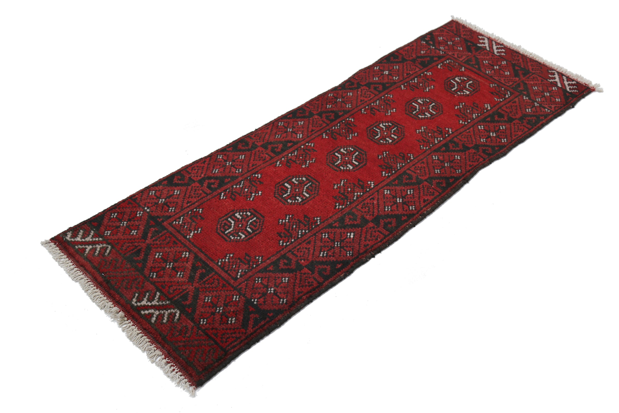 Hand-Knotted Afghan Tribal Geometric Wool Rug - 1'8" x 4'9"