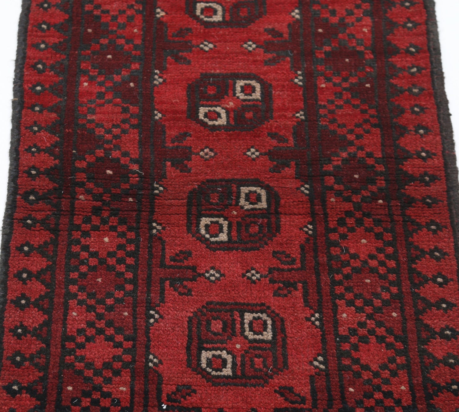 Hand-Knotted Afghan Tribal Geometric Wool Rug - 1'9" x 4'5"