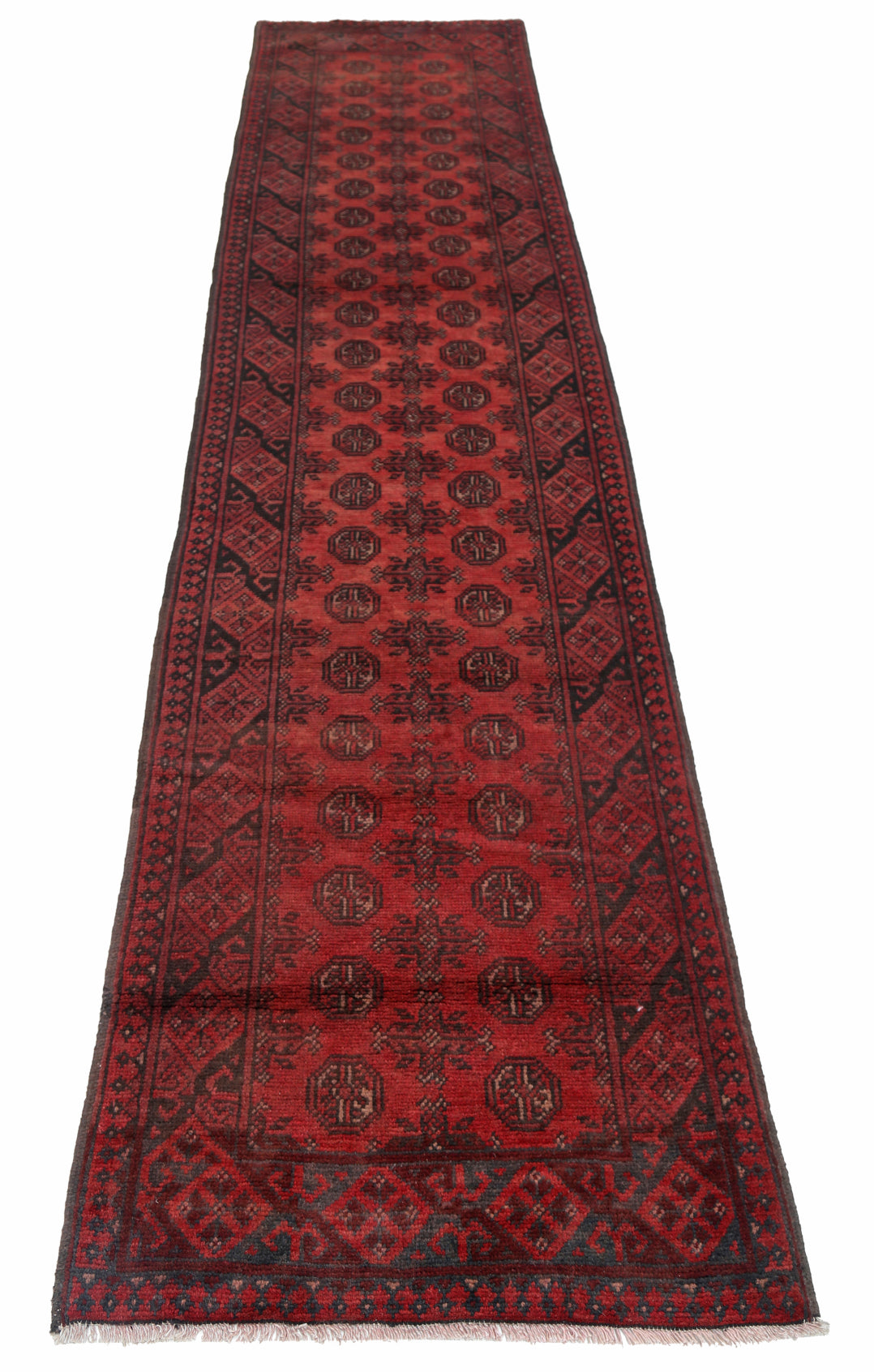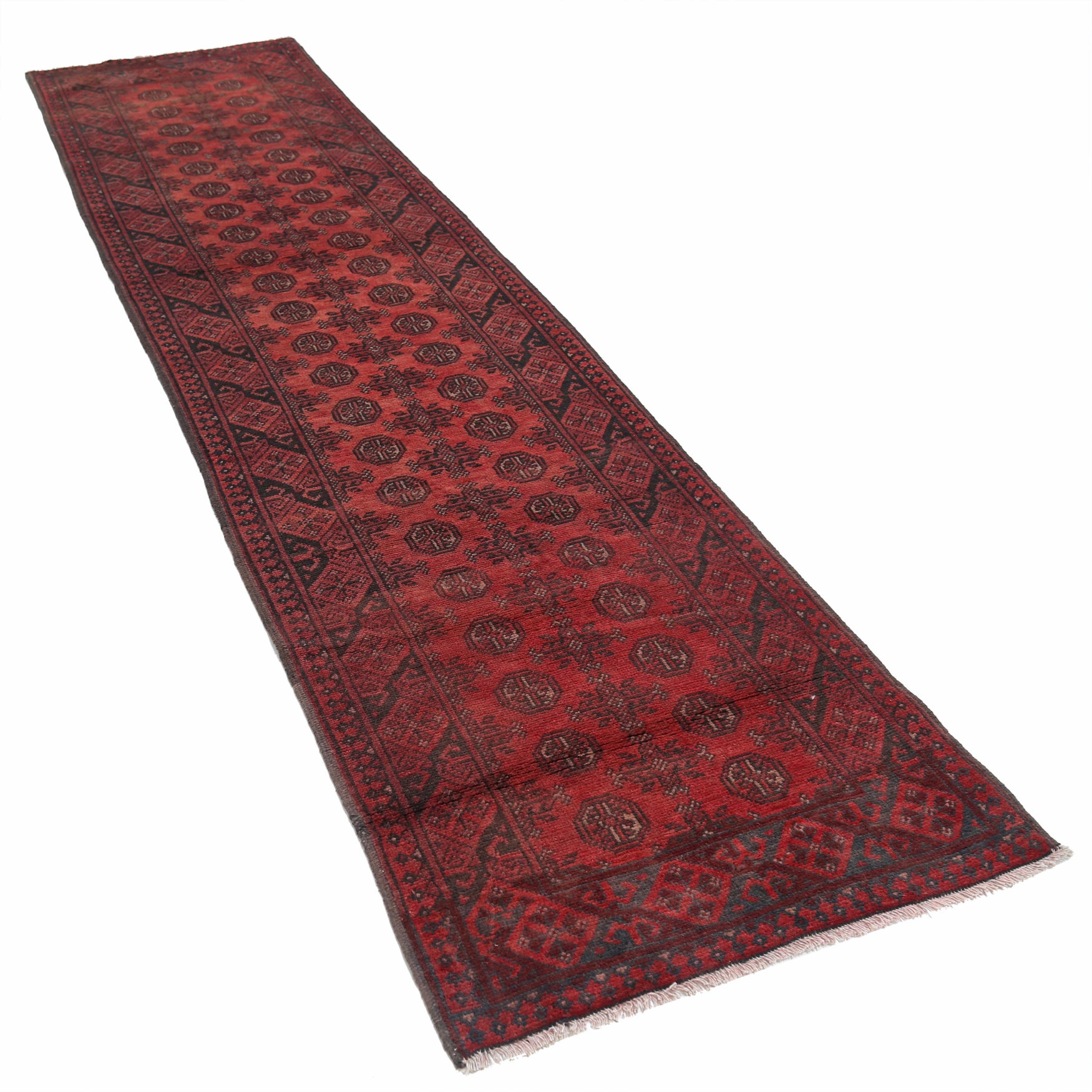 Hand-Knotted Afghan Tribal Geometric Wool Rug - 2'6" x 11'9"