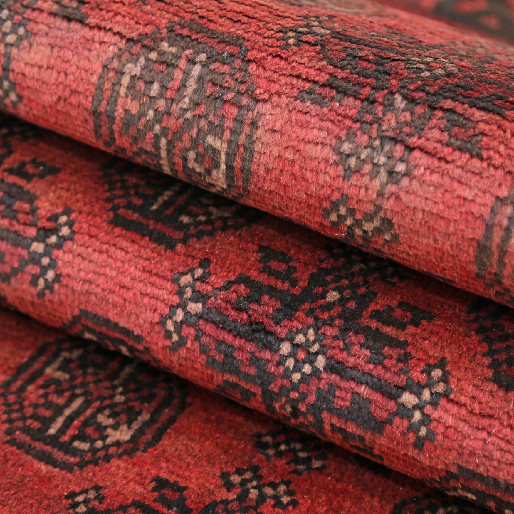 This hand-knotted Afghan wool rug features a striking tribal geometric pattern inspired by traditional designs. Rugs of this type are known for their rich, earthy tones, featuring shades of red, blue, green, gold, and yellow, adding warmth and character to any space. Crafted with a loose weave knotting technique similar to the Oushak style, it blends timeless appeal with authentic craftsmanship.