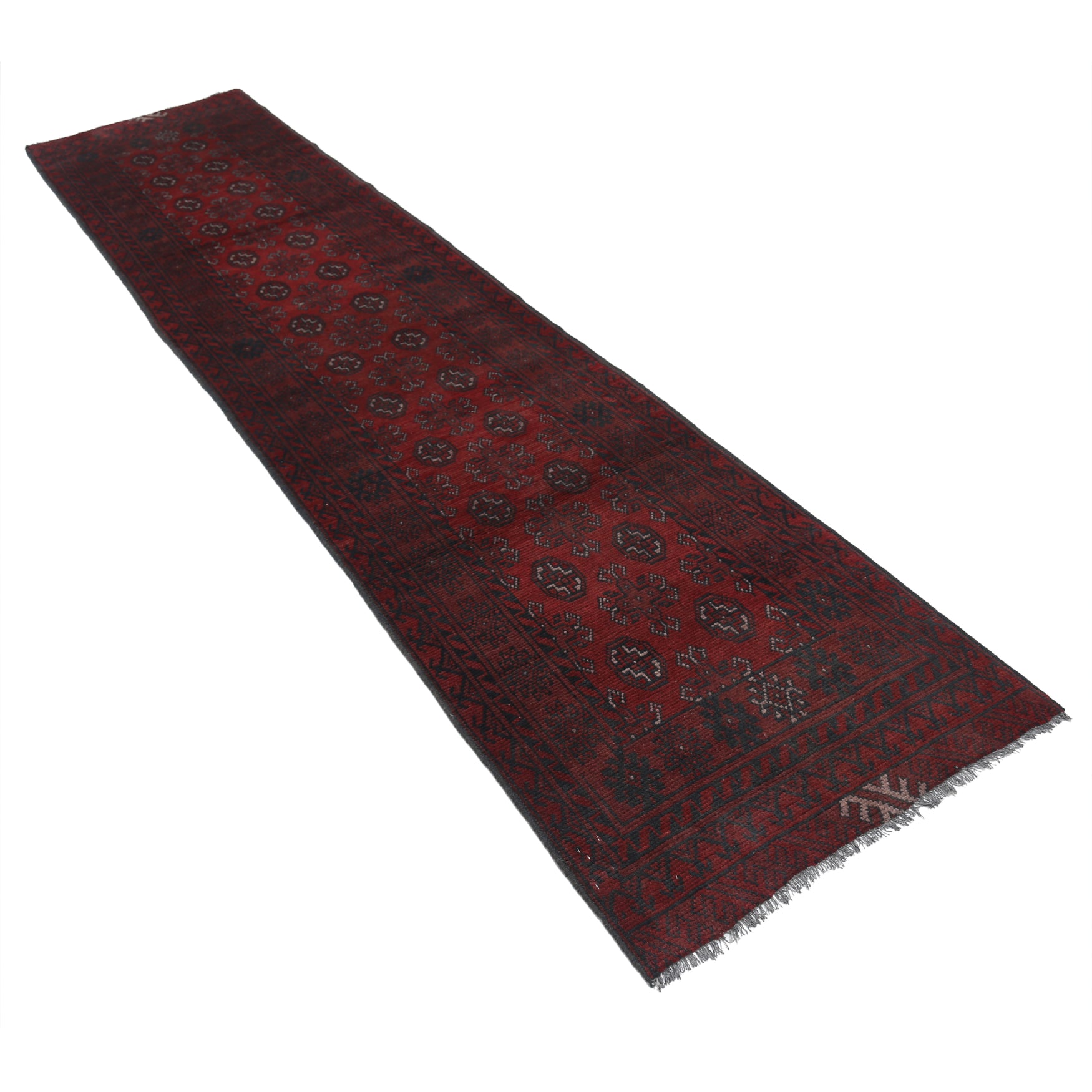 Hand-Knotted Afghan Tribal Geometric Wool Rug - 2'6" x 12'0"