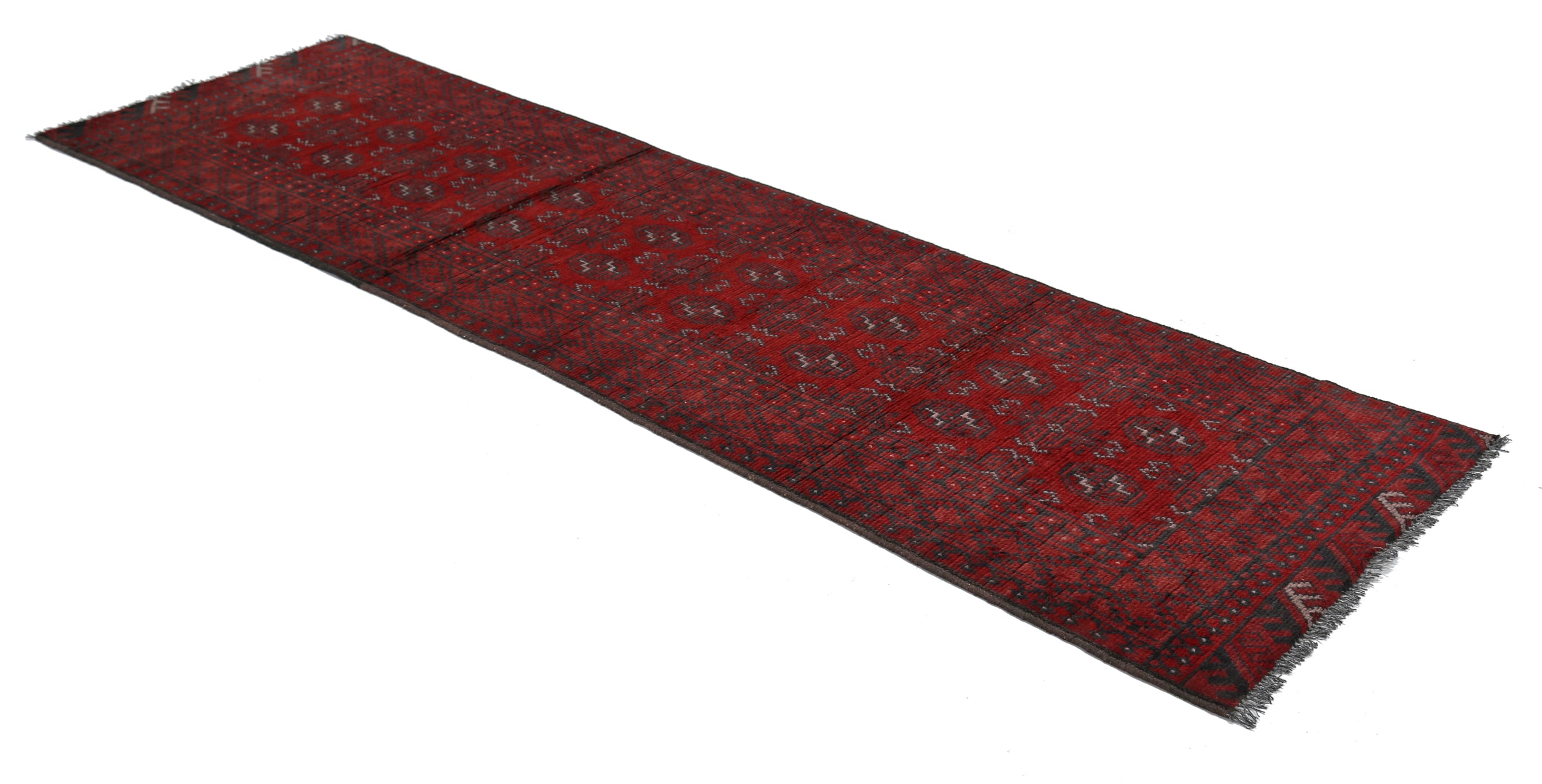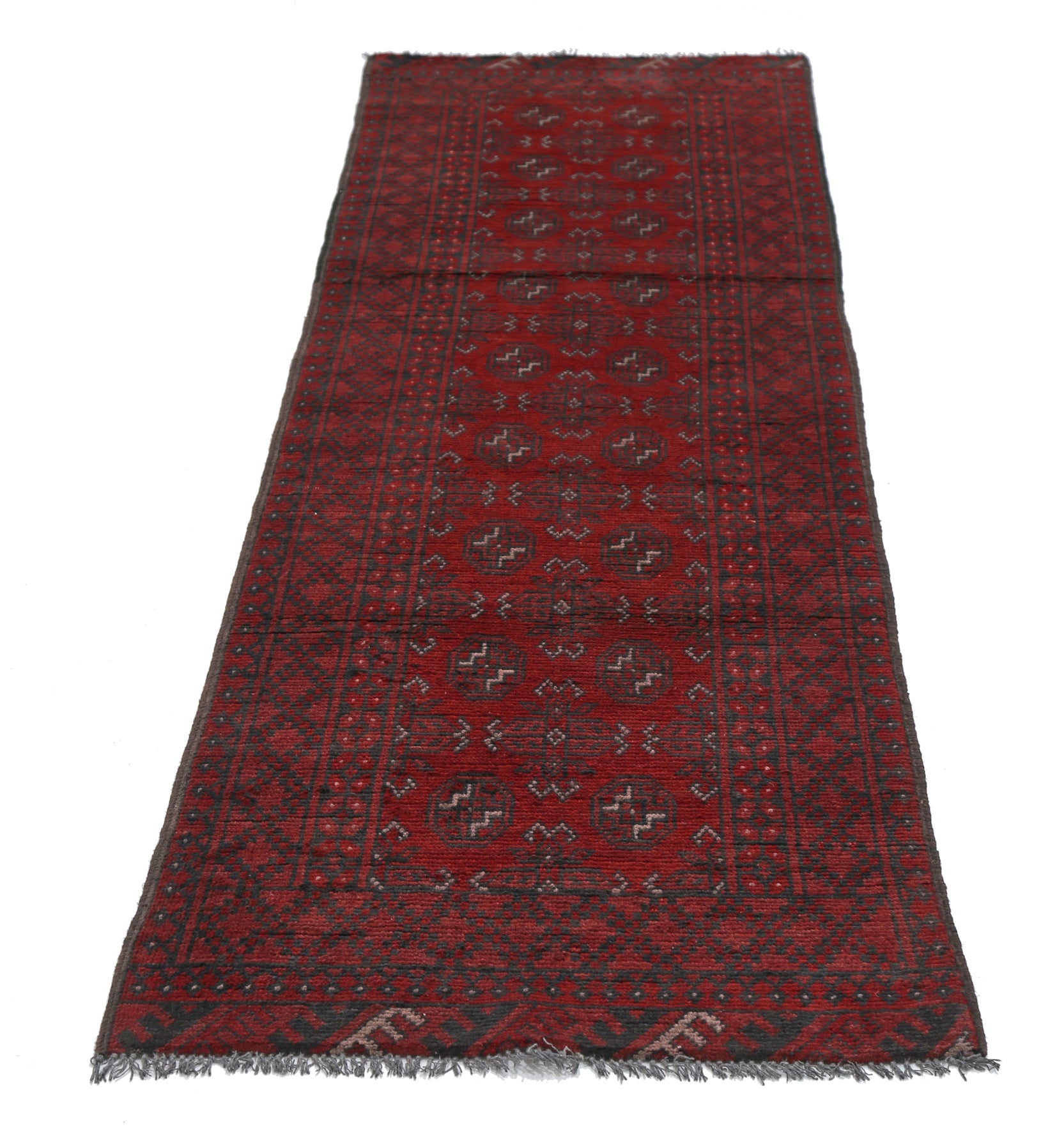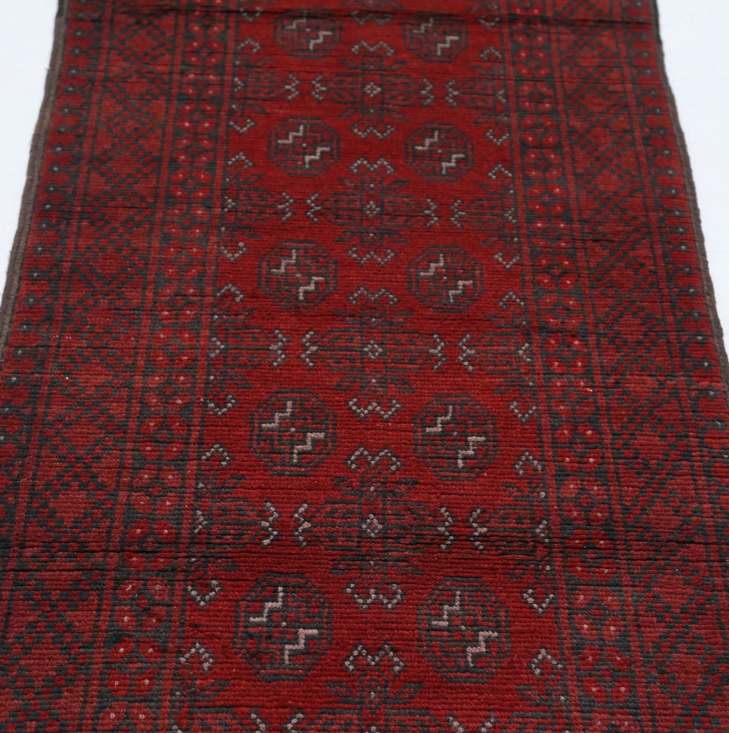Hand-Knotted Afghan Tribal Geometric Wool Rug - 2'6" x 8'9"