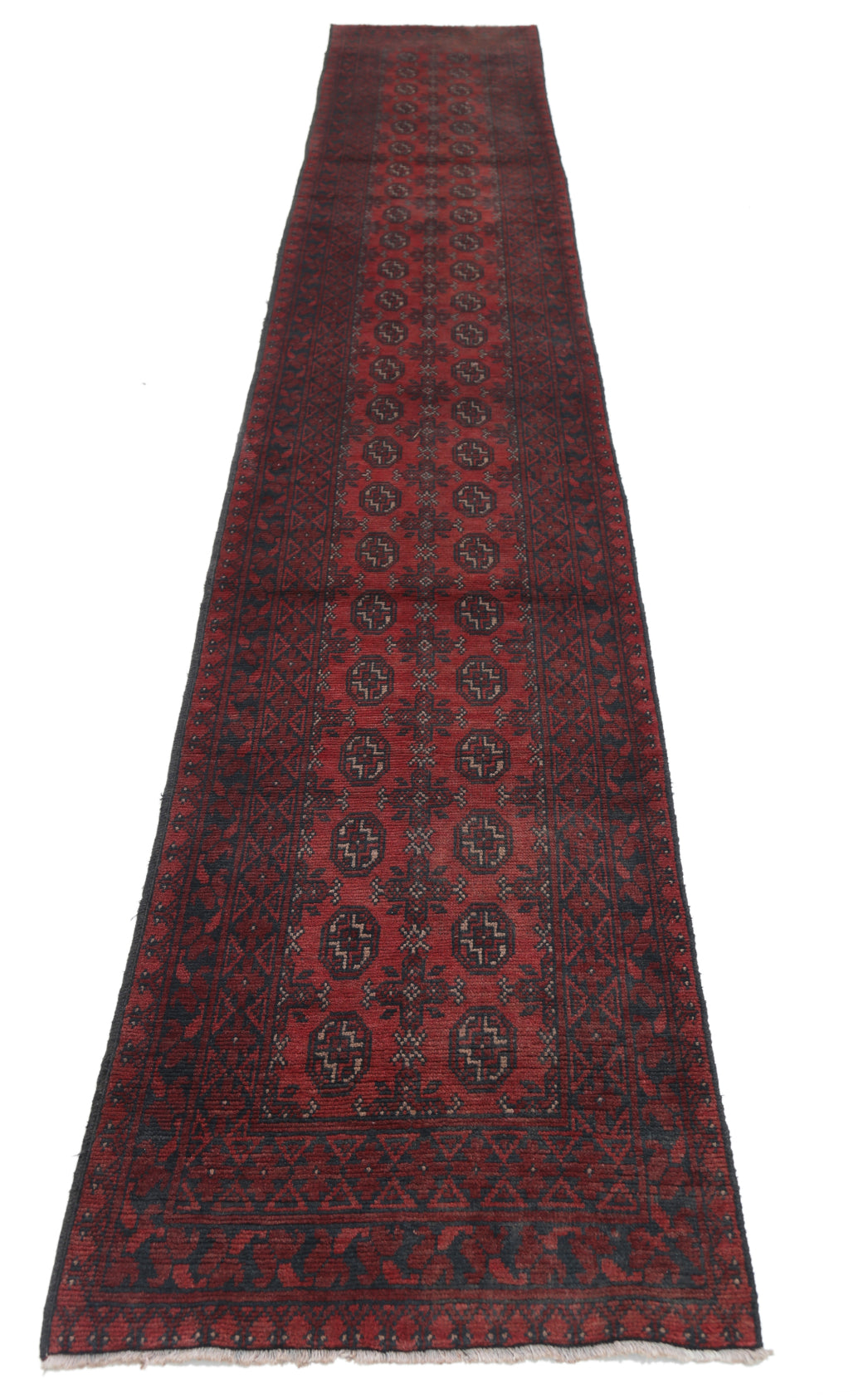 Hand-Knotted Afghan Tribal Geometric Wool Rug - 2'7" x 15'5"