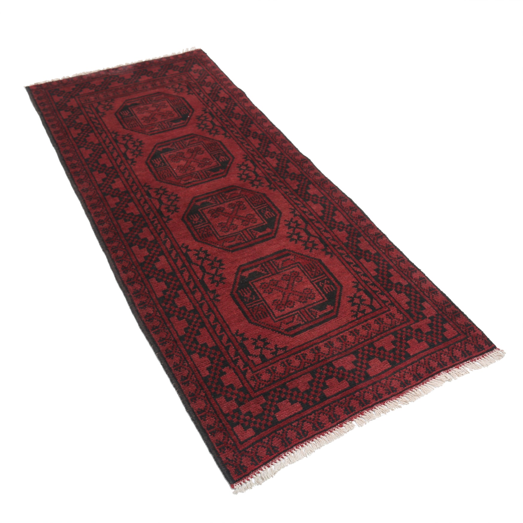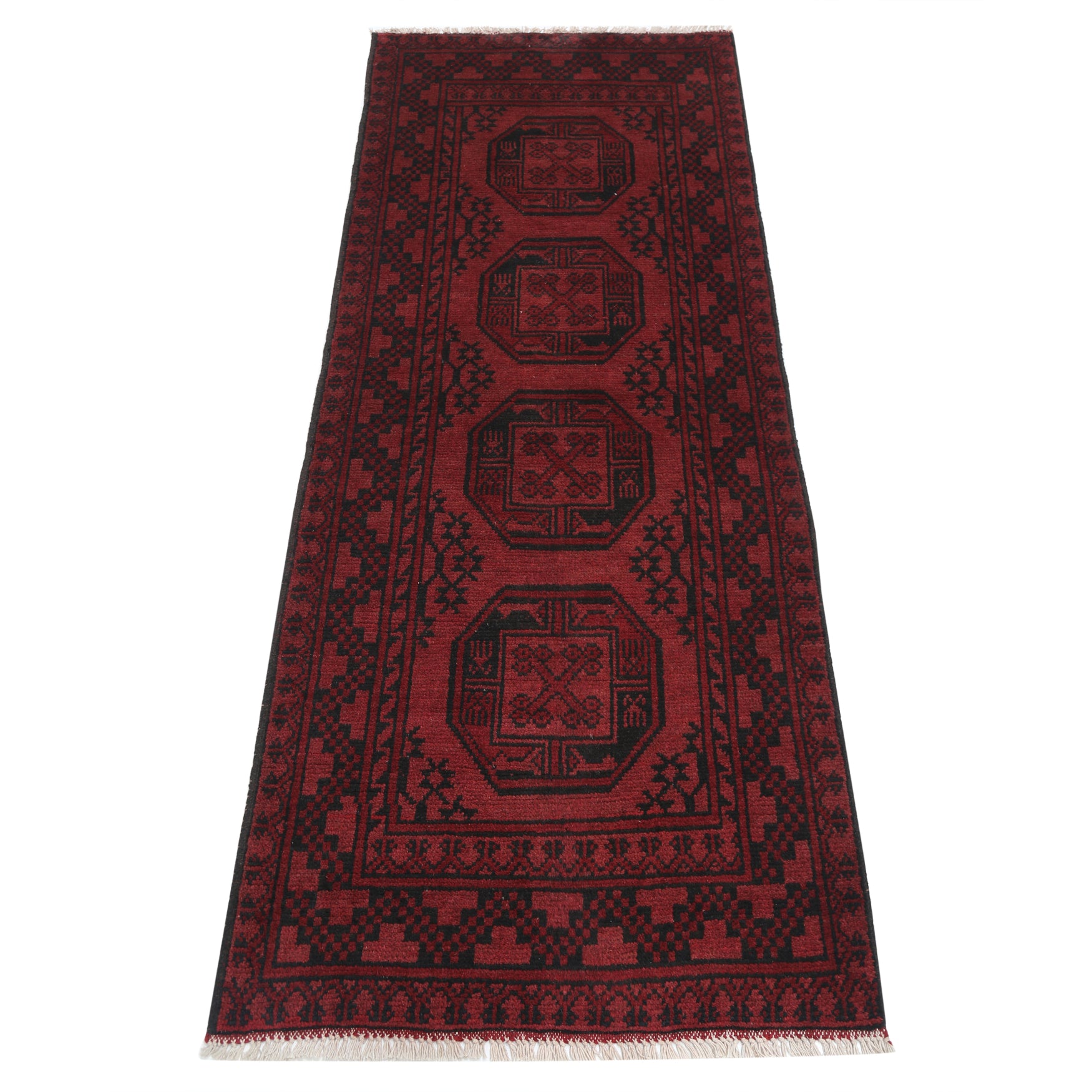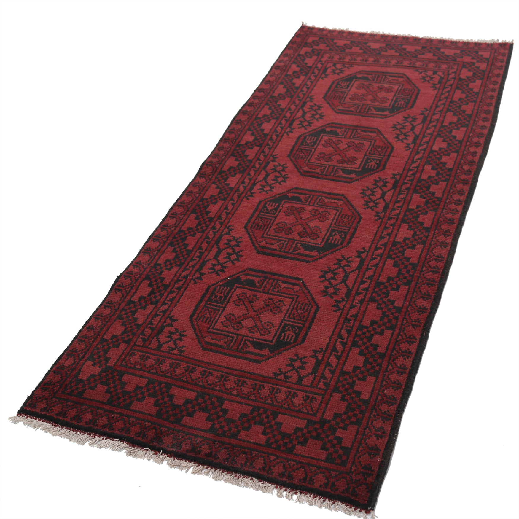 Hand-Knotted Afghan Tribal Geometric Wool Rug - 2'7" x 6'5"