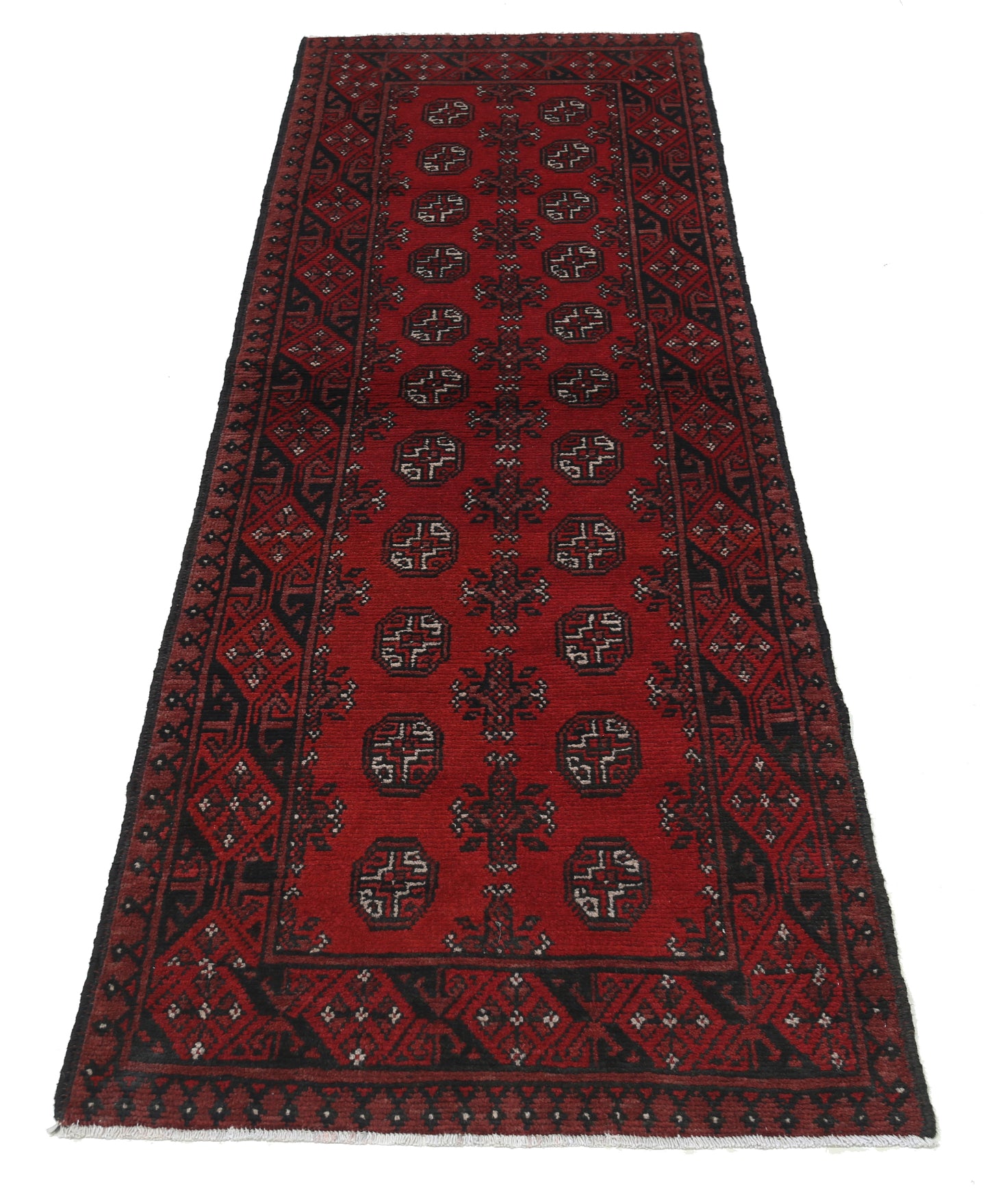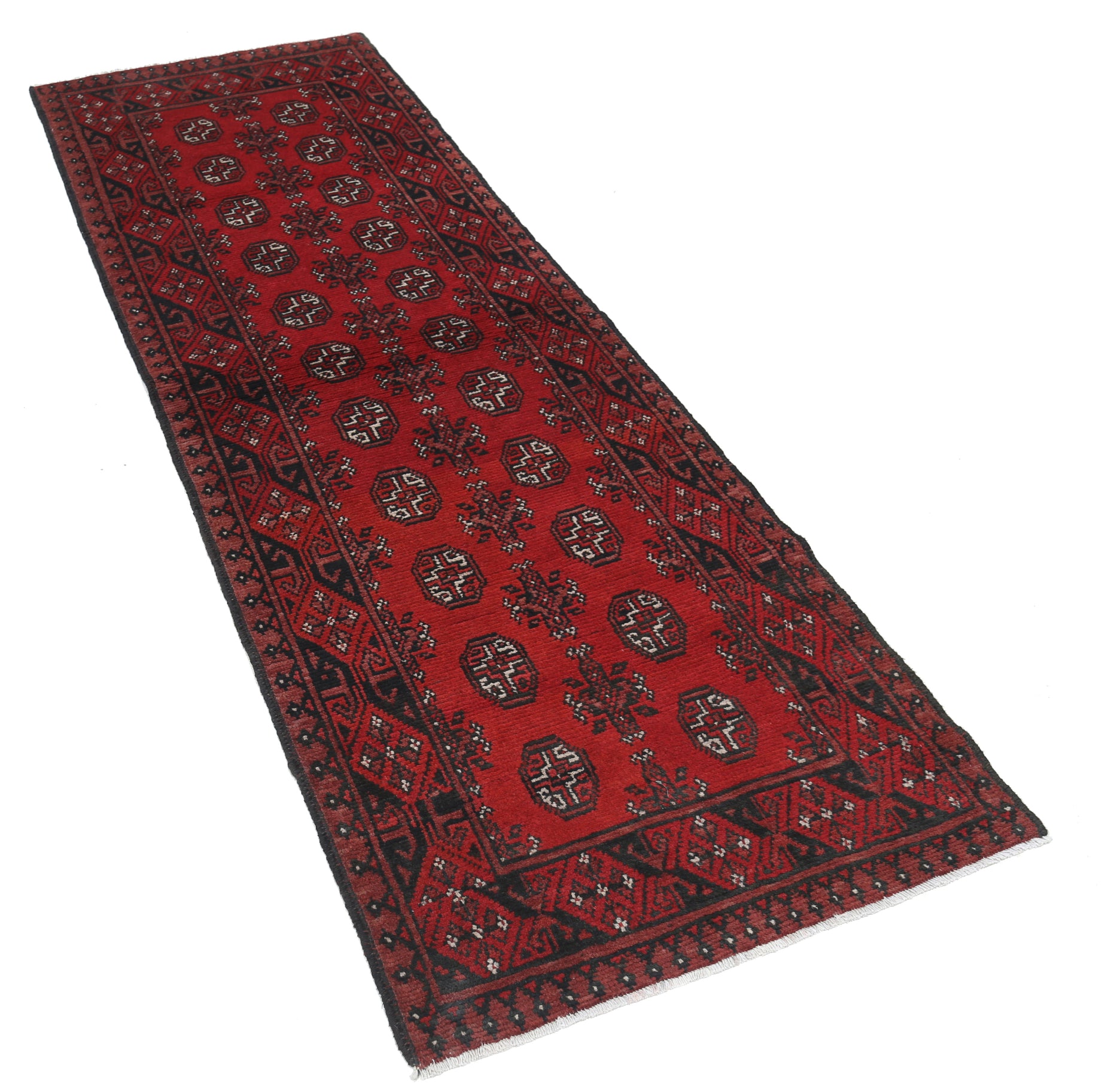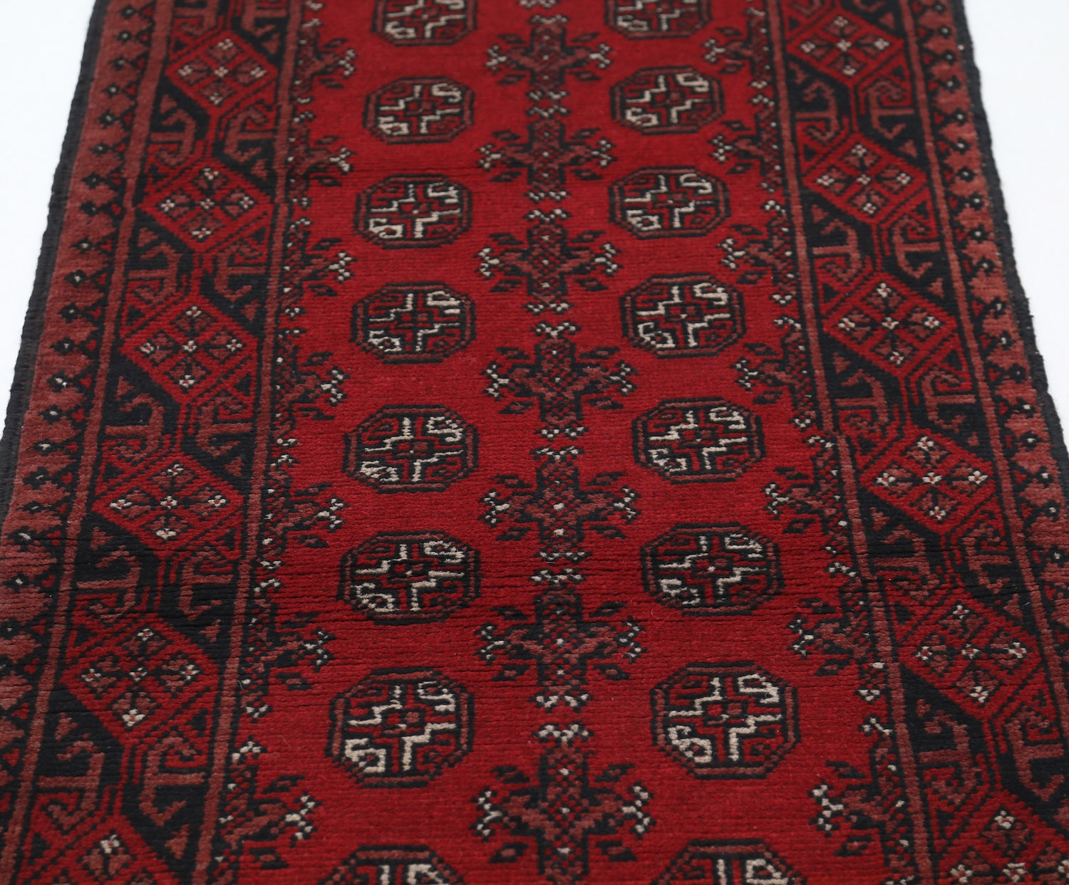 Hand-Knotted Afghan Tribal Geometric Wool Rug - 2'7" x 7'11"