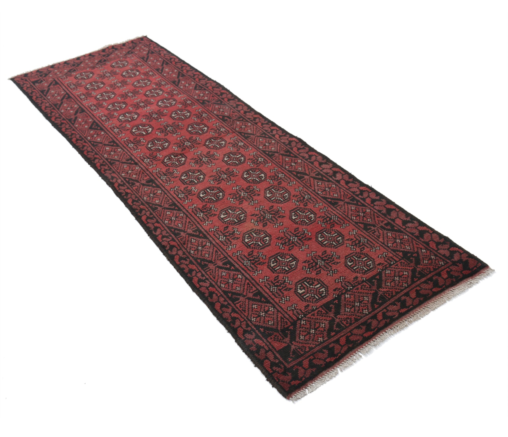 Hand-Knotted Afghan Tribal Geometric Wool Rug - 2'7" x 8'0"
