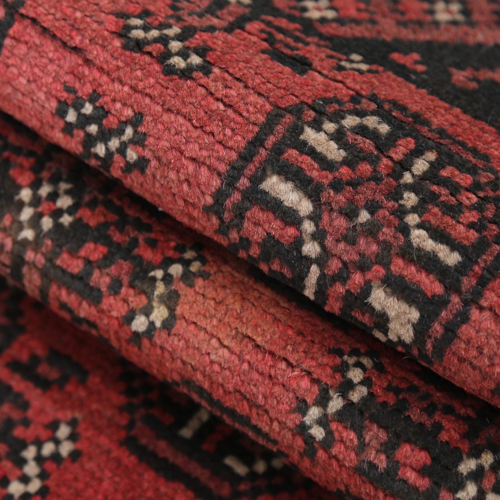 This hand-knotted Afghan wool rug features a striking tribal geometric pattern inspired by traditional designs. Rugs of this type are known for their rich, earthy tones, featuring shades of red, blue, green, gold, and yellow, adding warmth and character to any space. Crafted with a loose weave knotting technique similar to the Oushak style, it blends timeless appeal with authentic craftsmanship.
