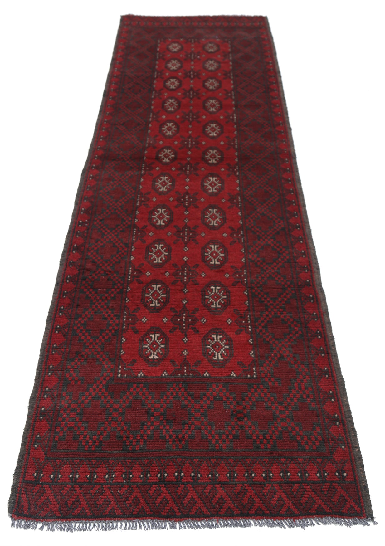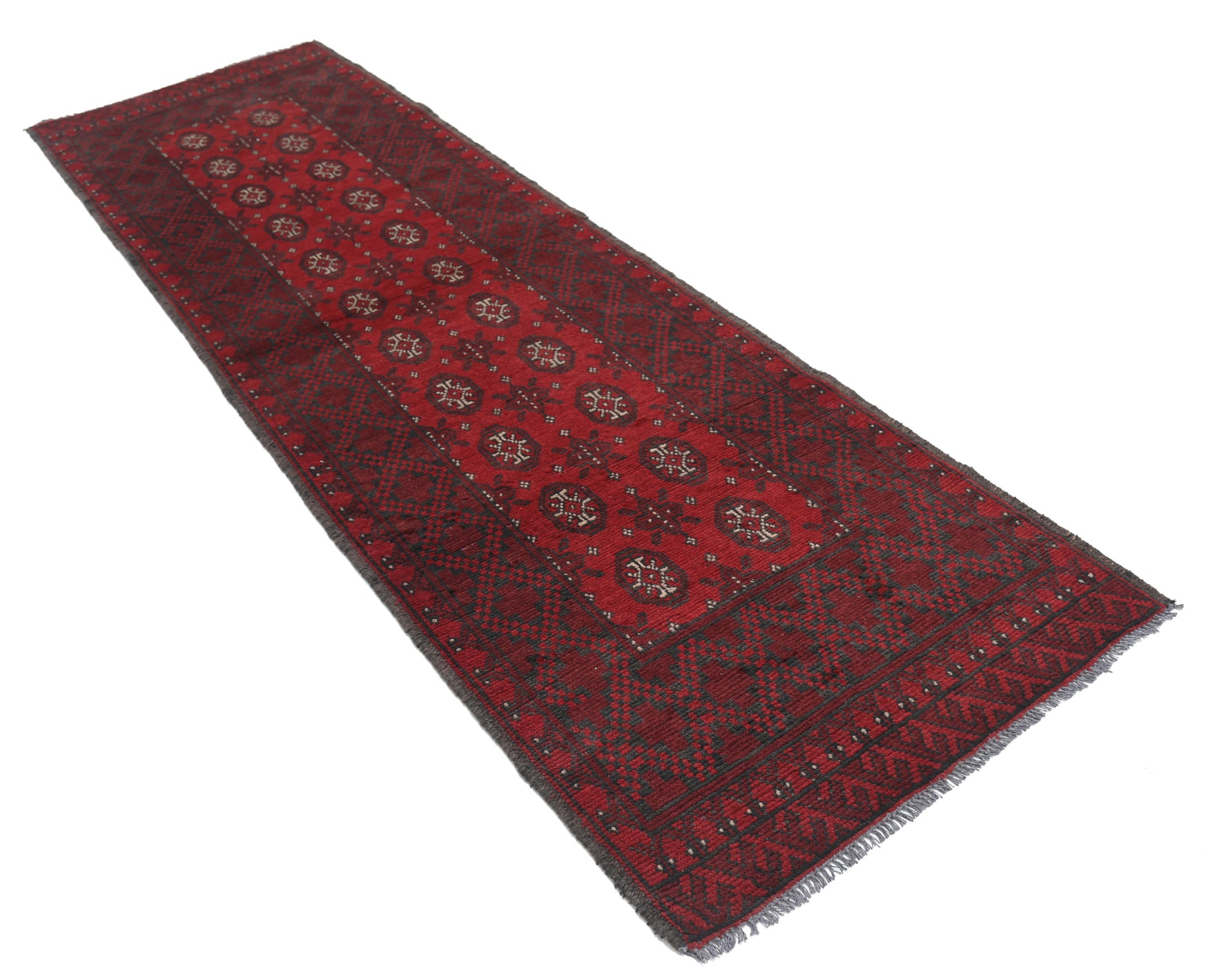 Hand-Knotted Afghan Tribal Geometric Wool Rug - 2'7" x 9'3"