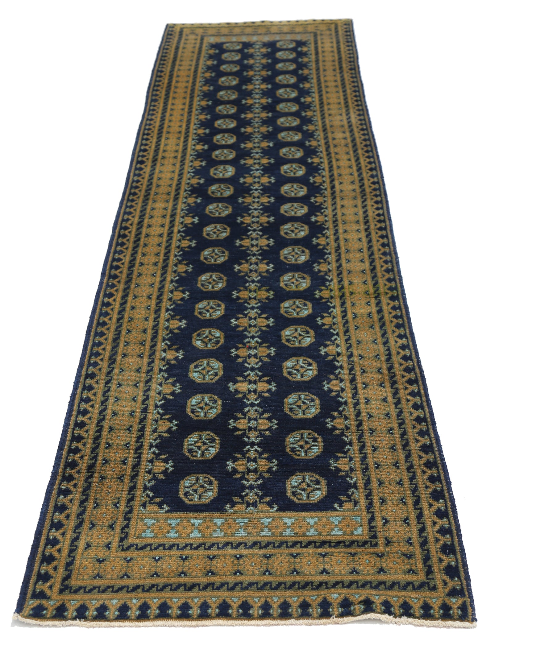 Hand-Knotted Afghan Tribal Geometric Wool Rug - 2'8" x 12'3"