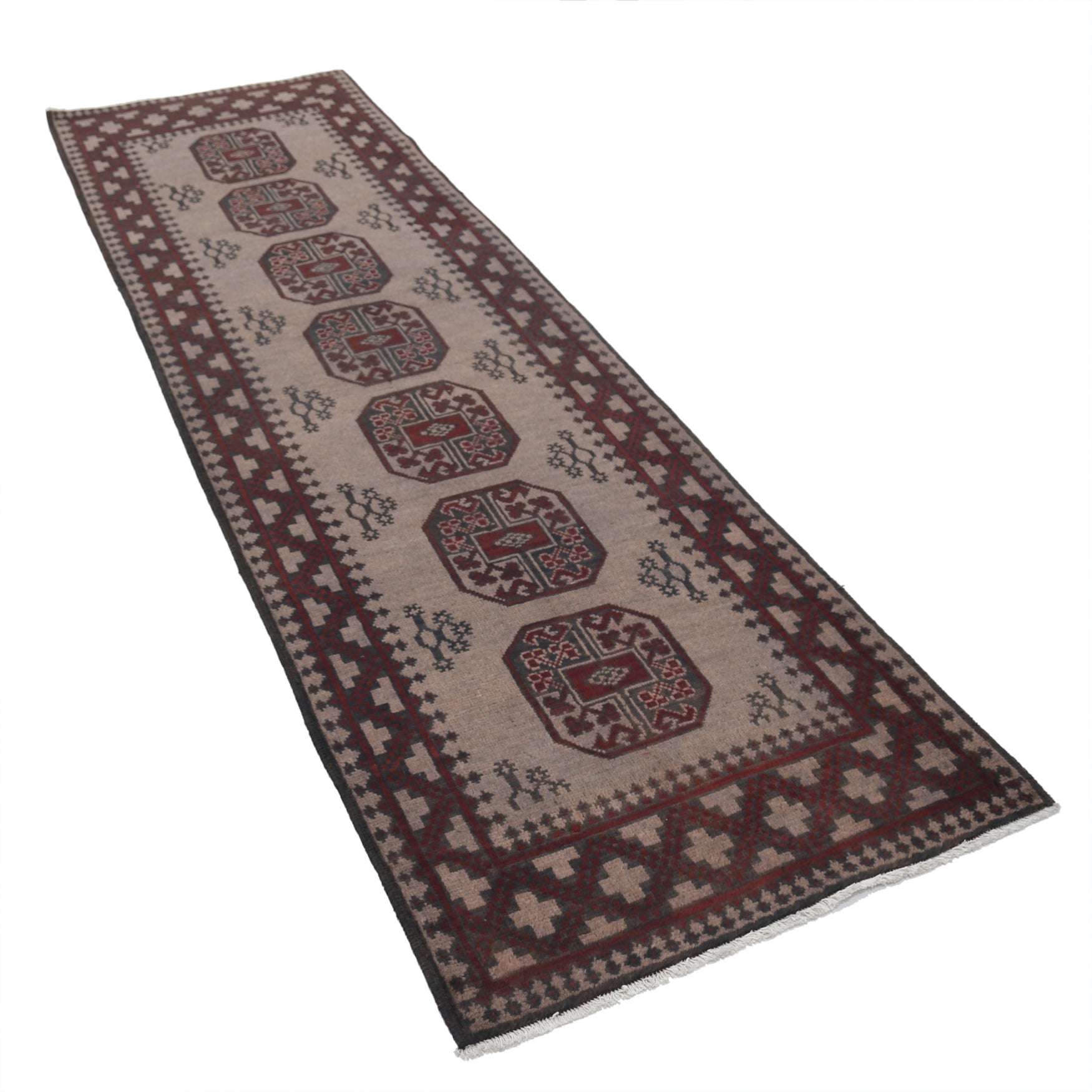Hand-Knotted Afghan Tribal Geometric Wool Rug - 2'8" x 9'2"