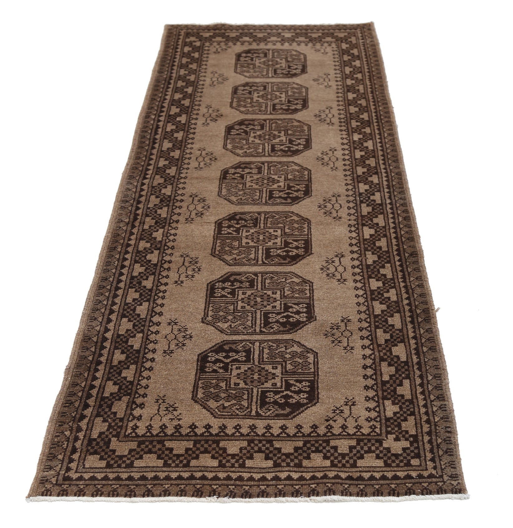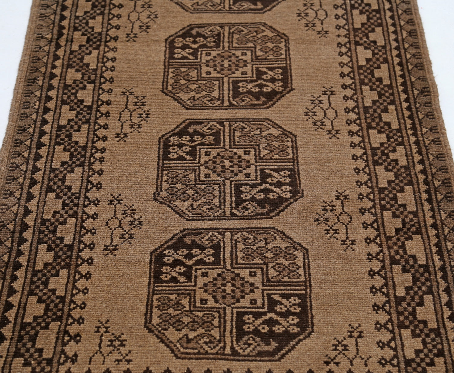 Hand-Knotted Afghan Tribal Geometric Wool Rug - 2'9" x 9'3"