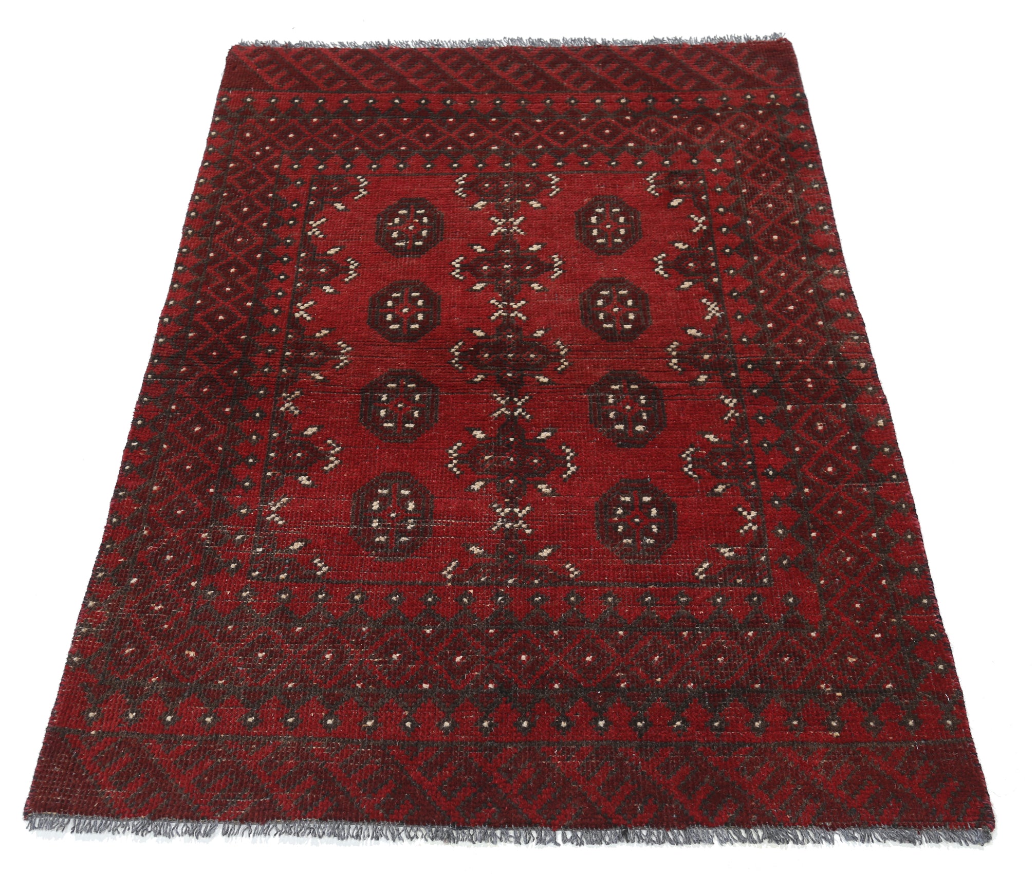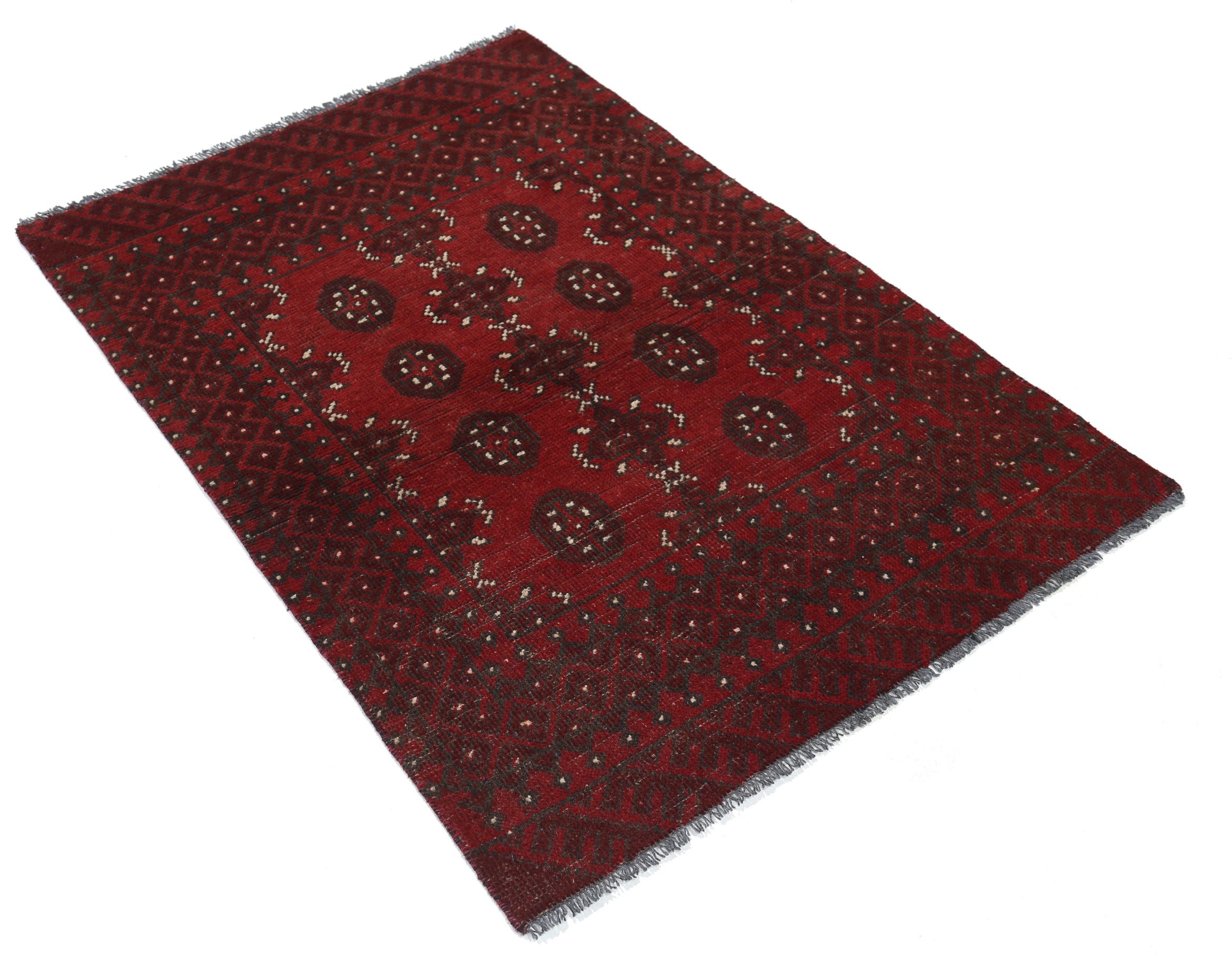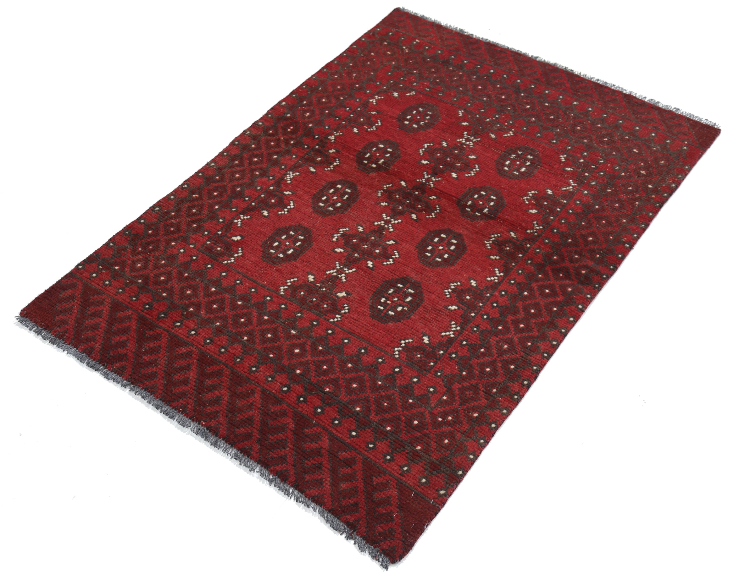 Hand-Knotted Afghan Tribal Geometric Wool Rug - 3'2" x 4'6"