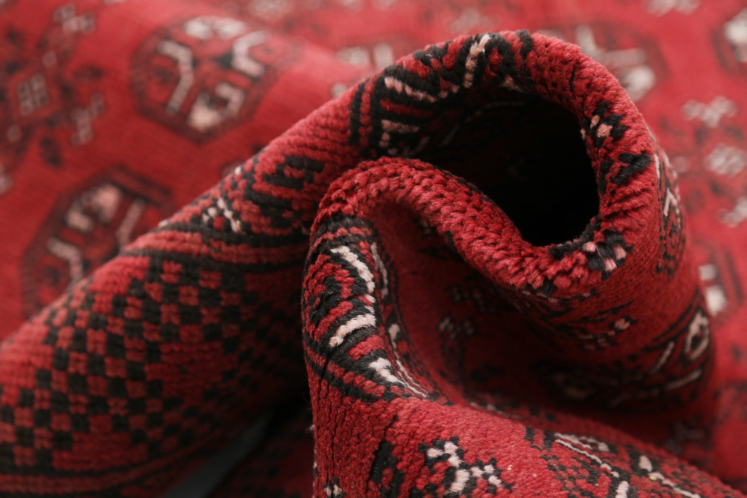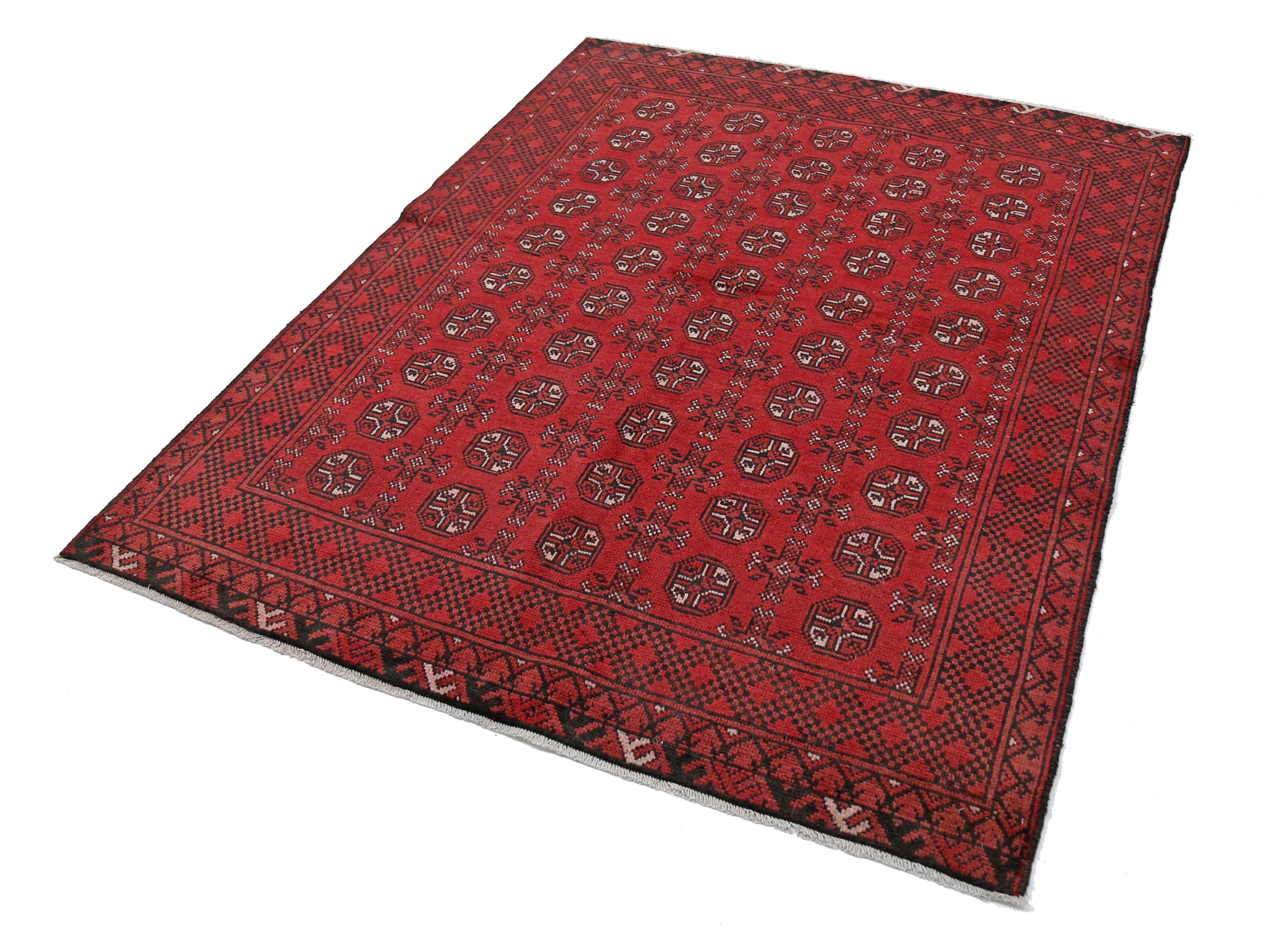 This hand-knotted Afghan wool rug features a striking tribal geometric pattern inspired by traditional designs. Rugs of this type are known for their rich, earthy tones, featuring shades of red, blue, green, gold, and yellow, adding warmth and character to any space. Crafted with a loose weave knotting technique similar to the Oushak style, it blends timeless appeal with authentic craftsmanship.
