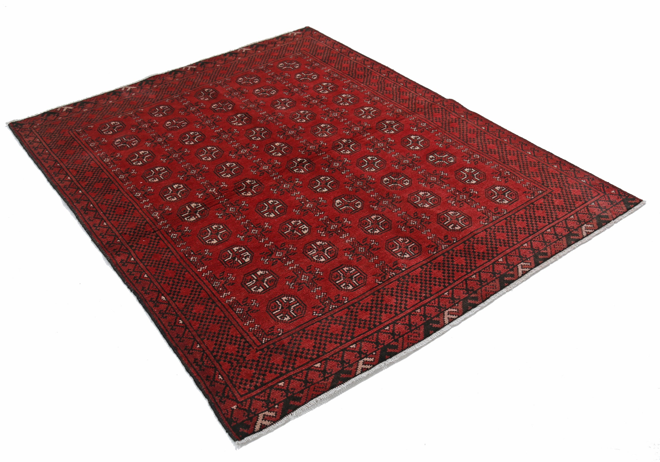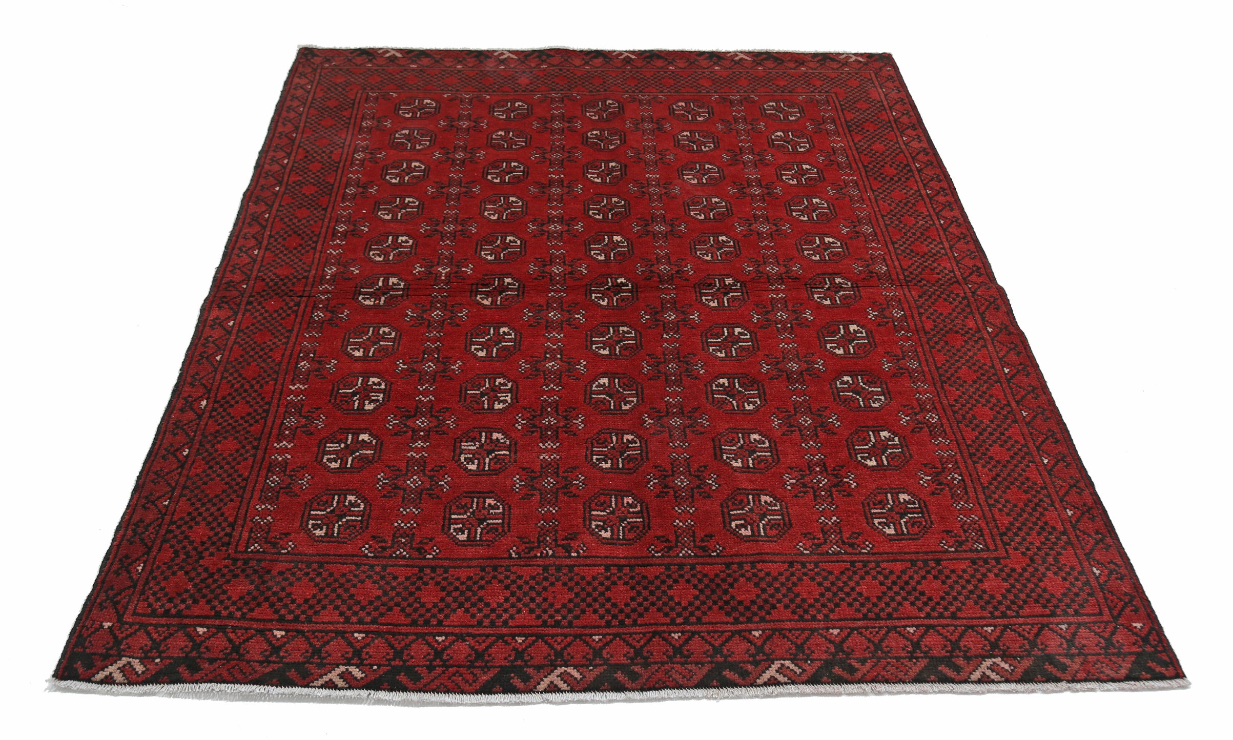 Hand-Knotted Afghan Tribal Geometric Wool Rug - 4'10" x 6'3"