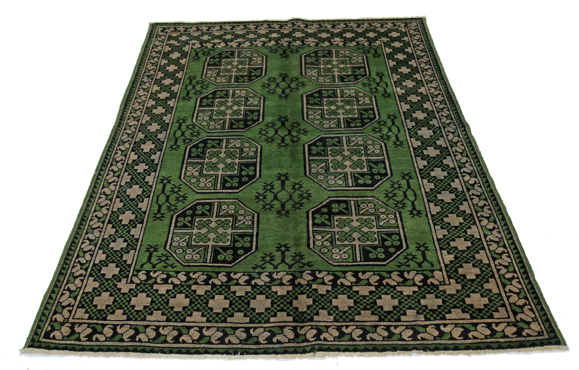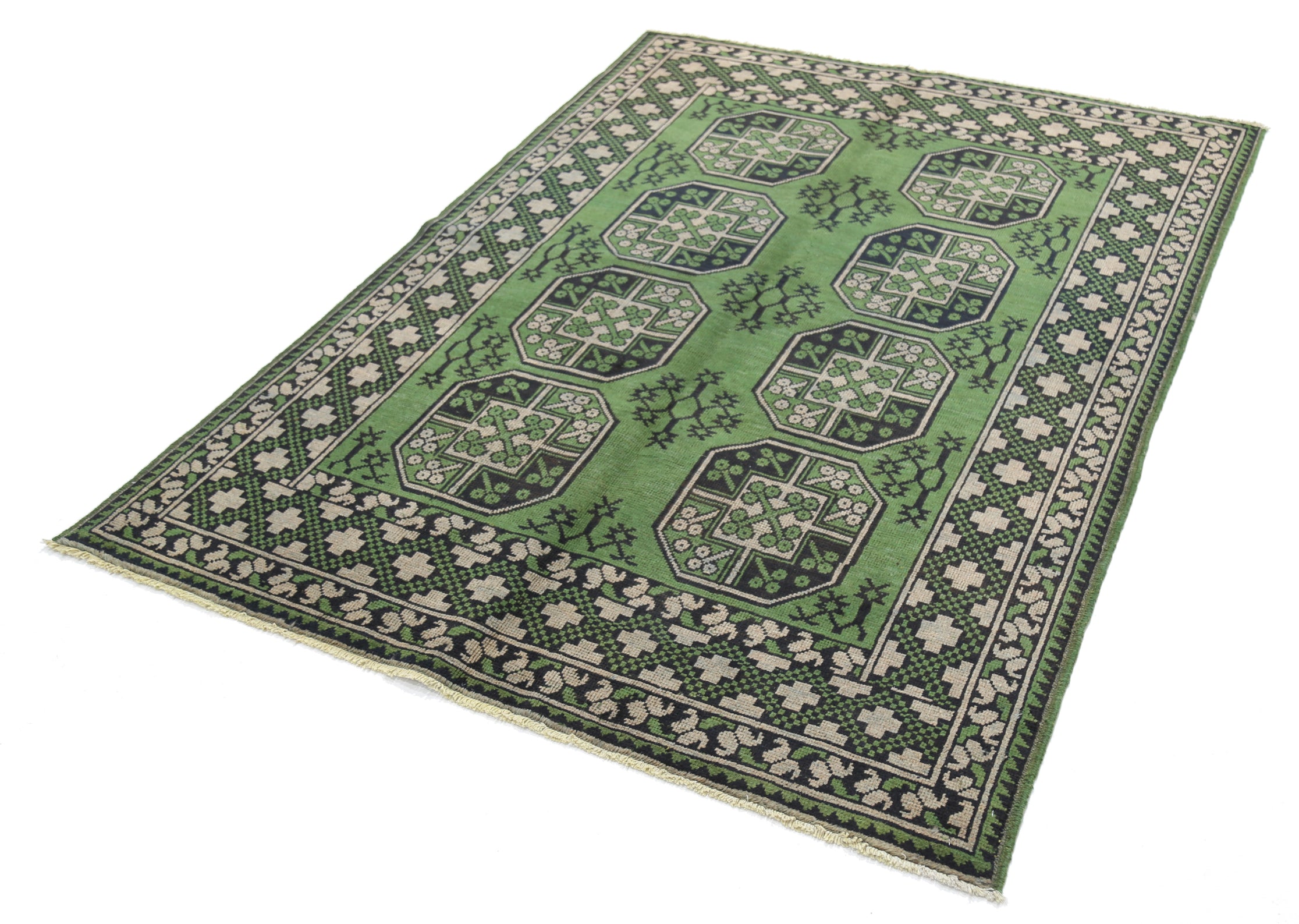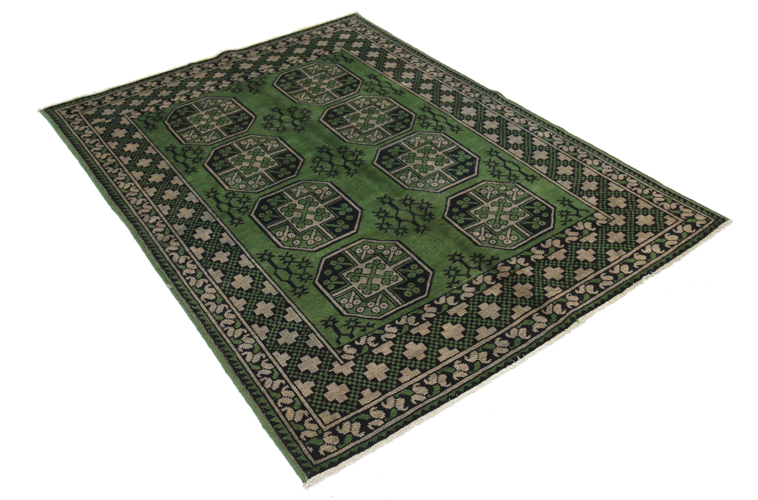 Hand-Knotted Afghan Tribal Geometric Wool Rug - 4'10" x 6'5"