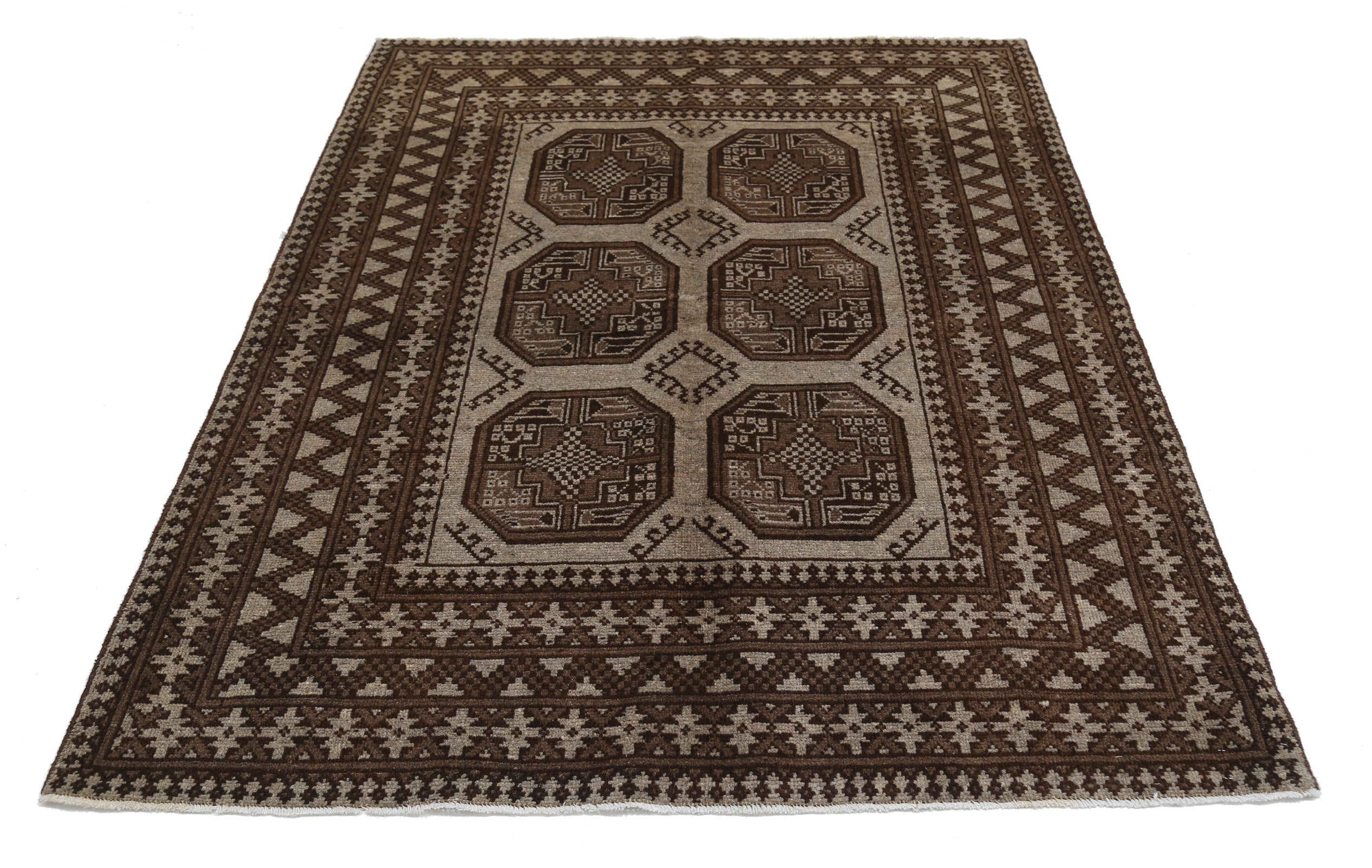 Hand-Knotted Afghan Tribal Geometric Wool Rug - 5'0" x 6'3"