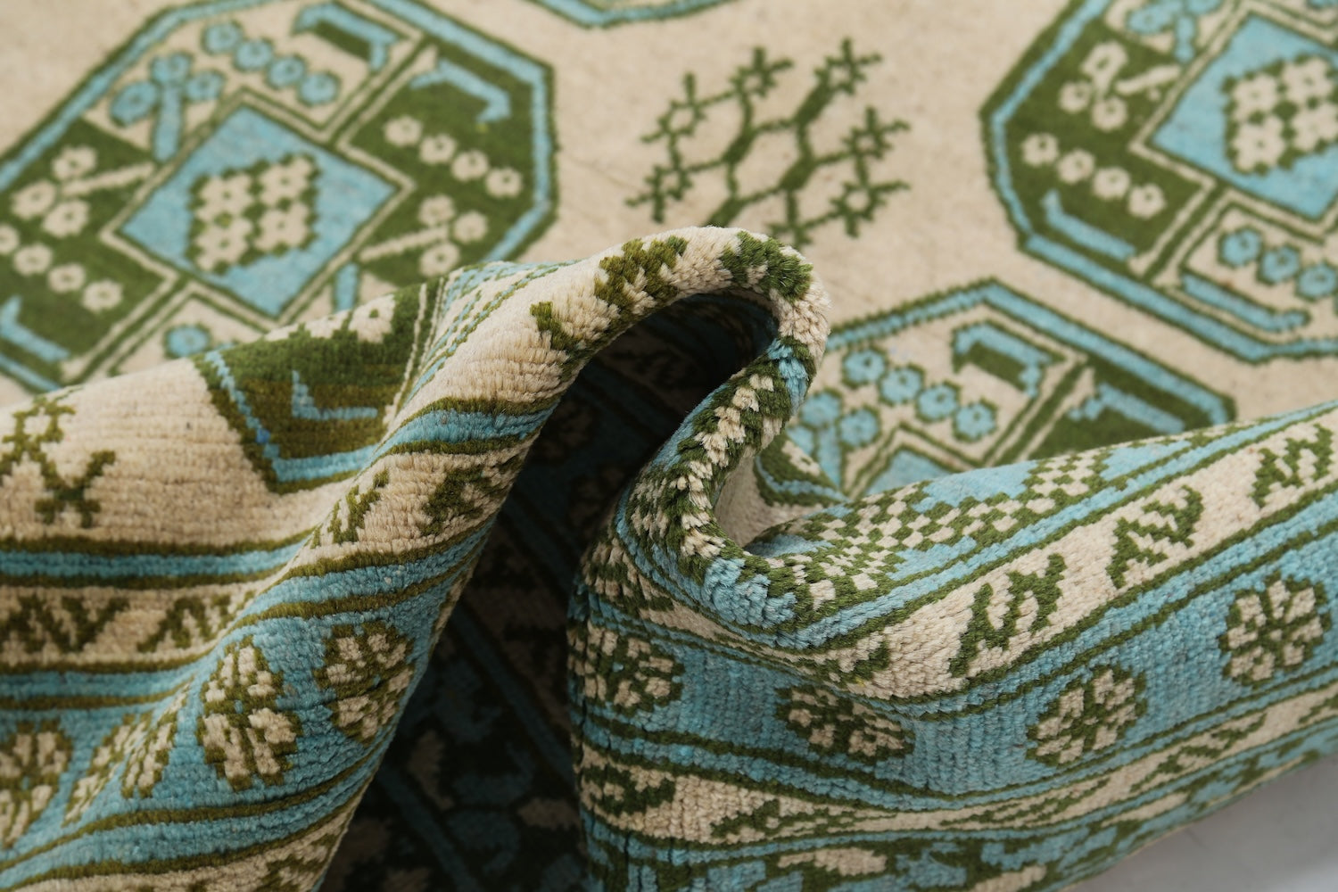 This hand-knotted Afghan wool rug features a striking tribal geometric pattern inspired by traditional designs. Rugs of this type are known for their rich, earthy tones, featuring shades of red, blue, green, gold, and yellow, adding warmth and character to any space. Crafted with a loose weave knotting technique similar to the Oushak style, it blends timeless appeal with authentic craftsmanship.