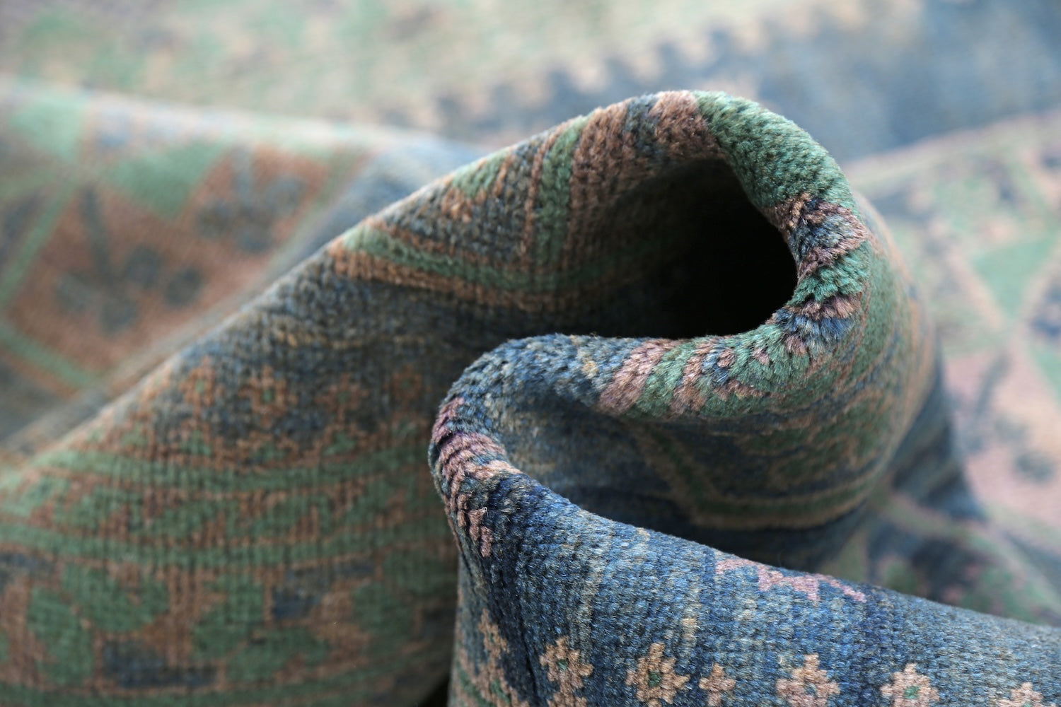 This hand-knotted Afghan wool rug features a striking tribal geometric pattern inspired by traditional designs. Rugs of this type are known for their rich, earthy tones, featuring shades of red, blue, green, gold, and yellow, adding warmth and character to any space. Crafted with a loose weave knotting technique similar to the Oushak style, it blends timeless appeal with authentic craftsmanship.