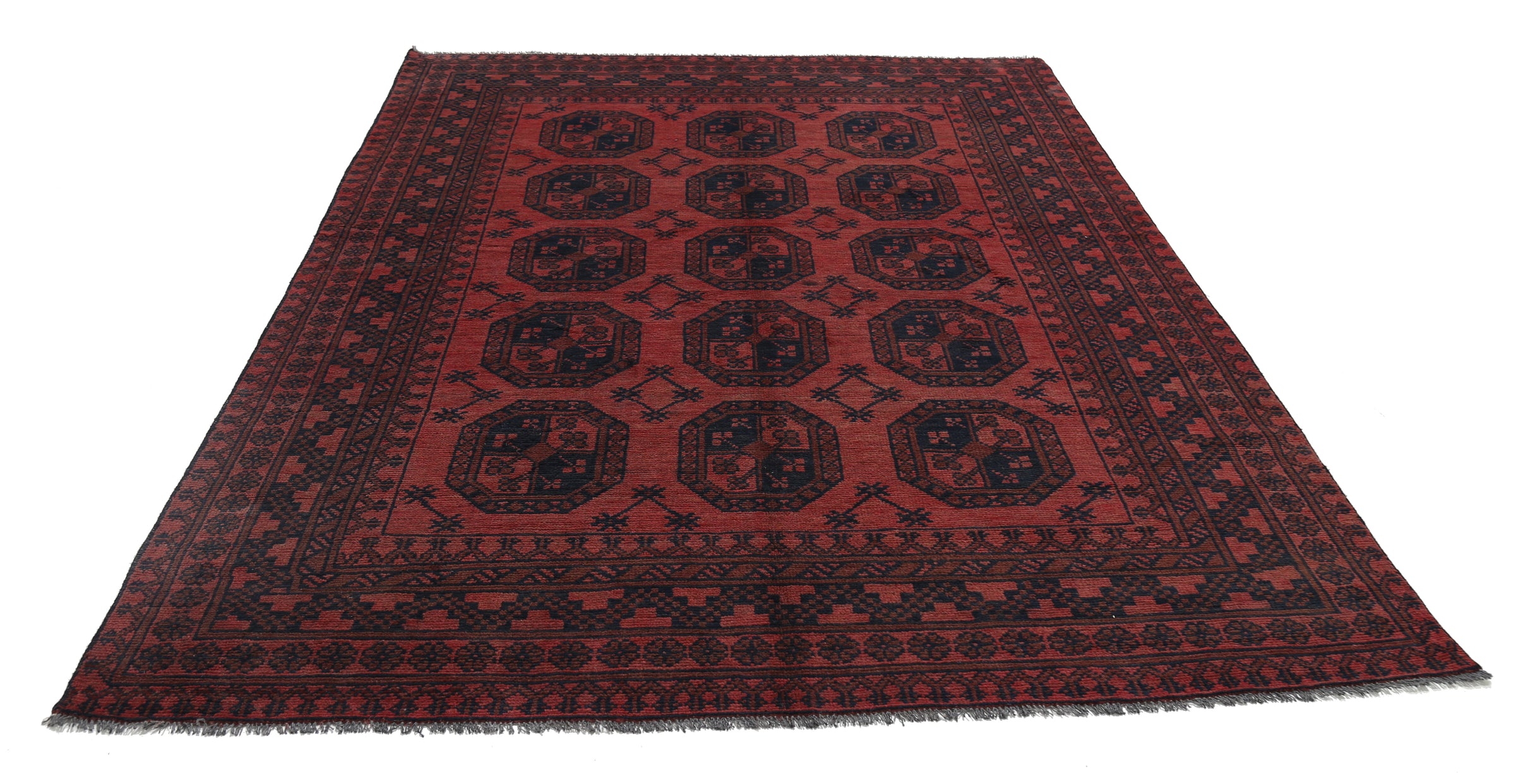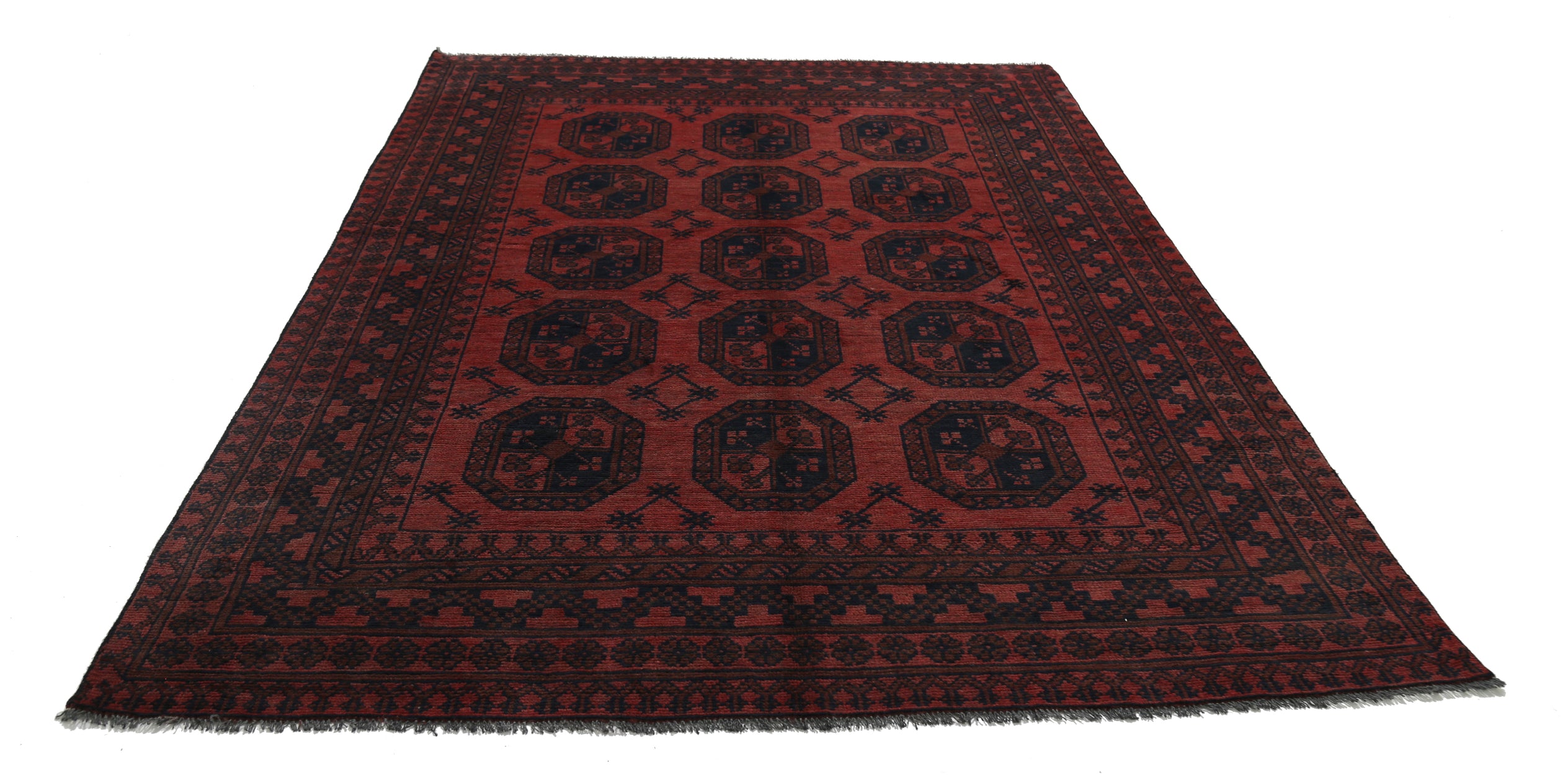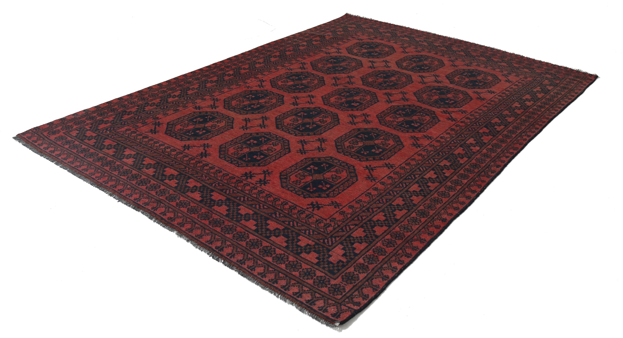 Hand-Knotted Afghan Tribal Geometric Wool Rug - 6'4" x 9'0"