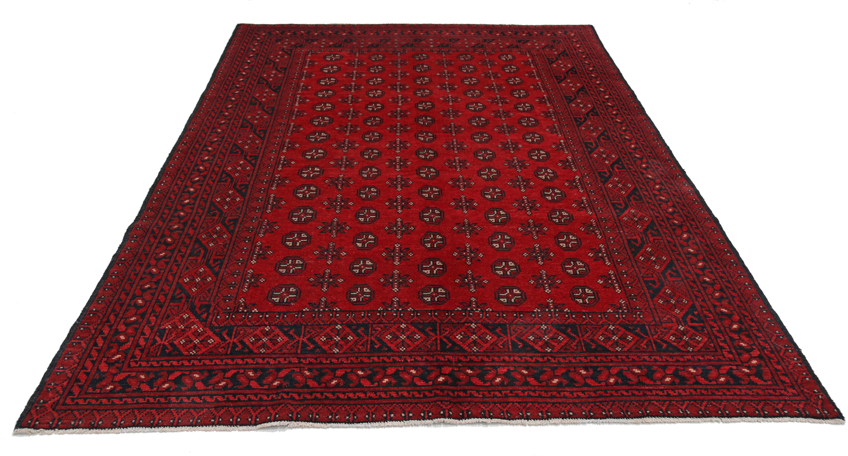 Hand-Knotted Afghan Tribal Geometric Wool Rug - 6'5" x 9'0"