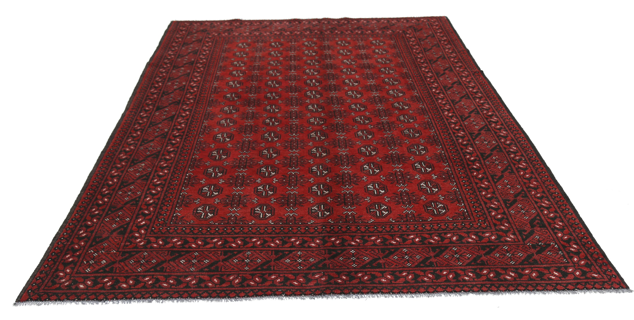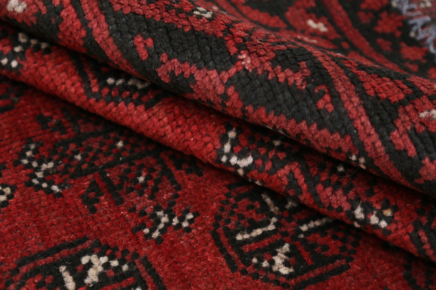 This hand-knotted Afghan wool rug features a striking tribal geometric pattern inspired by traditional designs. Rugs of this type are known for their rich, earthy tones, featuring shades of red, blue, green, gold, and yellow, adding warmth and character to any space. Crafted with a loose weave knotting technique similar to the Oushak style, it blends timeless appeal with authentic craftsmanship.