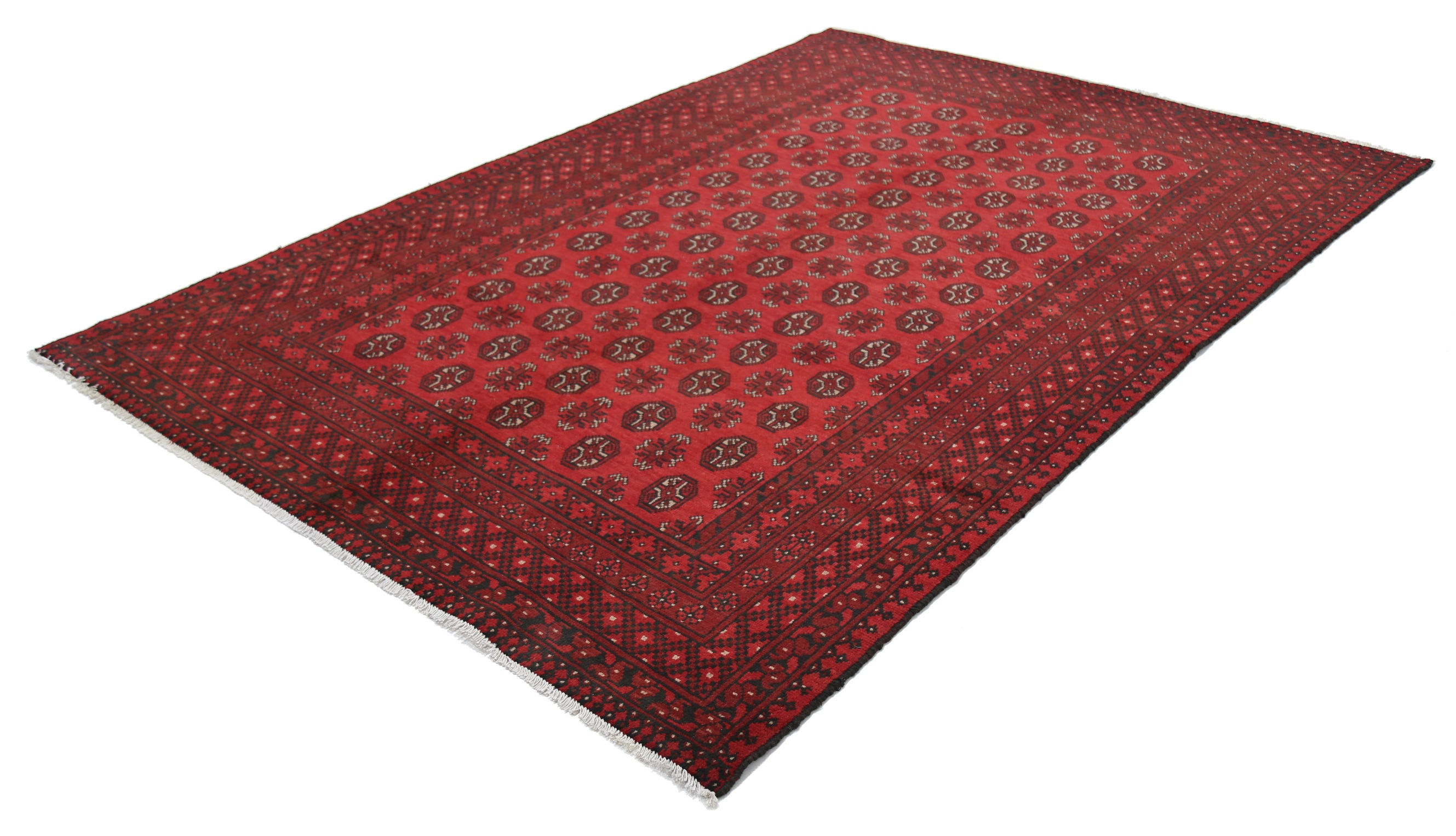 This hand-knotted Afghan wool rug features a striking tribal geometric pattern inspired by traditional designs. Rugs of this type are known for their rich, earthy tones, featuring shades of red, blue, green, gold, and yellow, adding warmth and character to any space. Crafted with a loose weave knotting technique similar to the Oushak style, it blends timeless appeal with authentic craftsmanship.