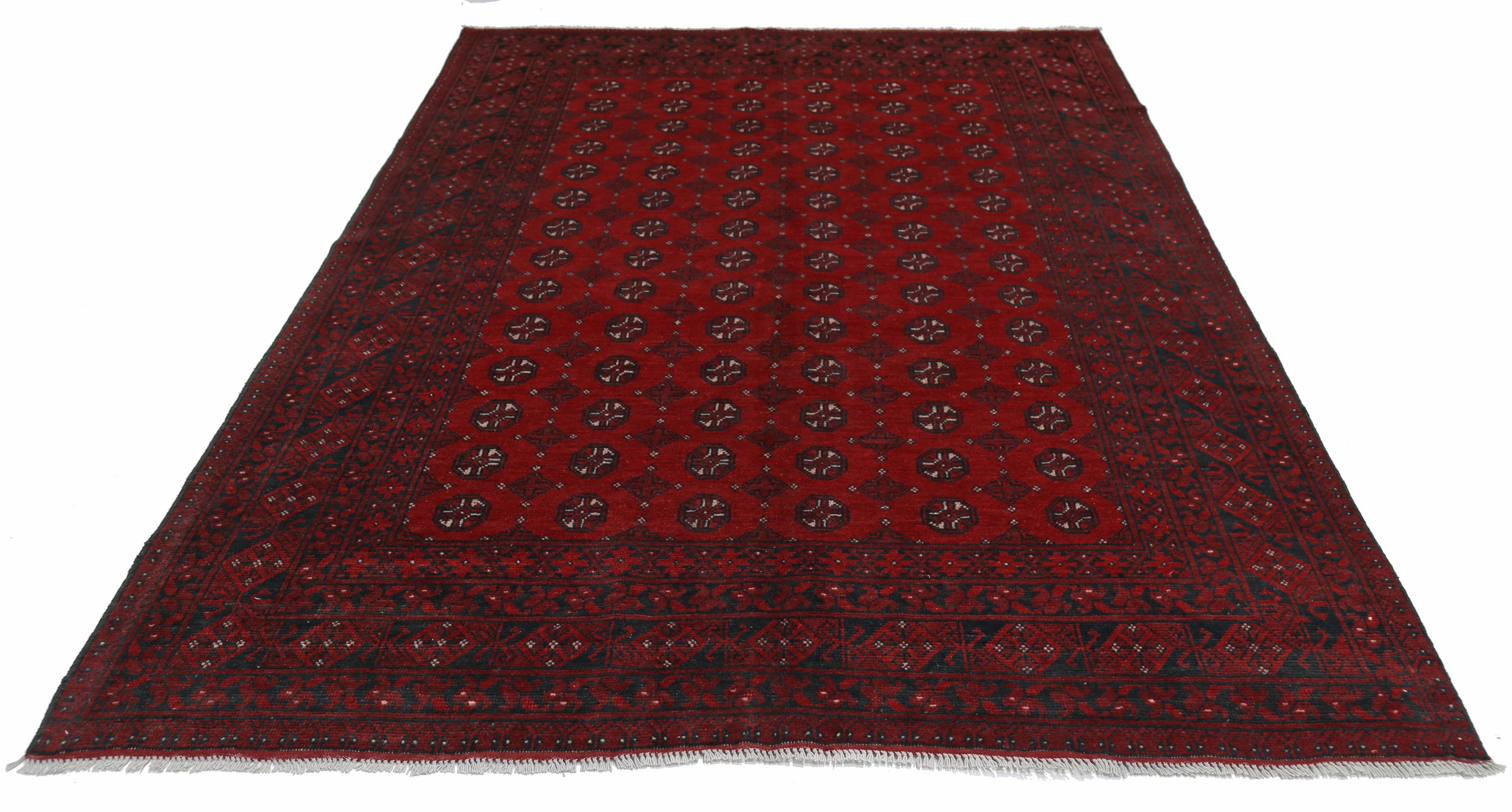 Hand-Knotted Afghan Tribal Geometric Wool Rug - 6'7" x 9'0"