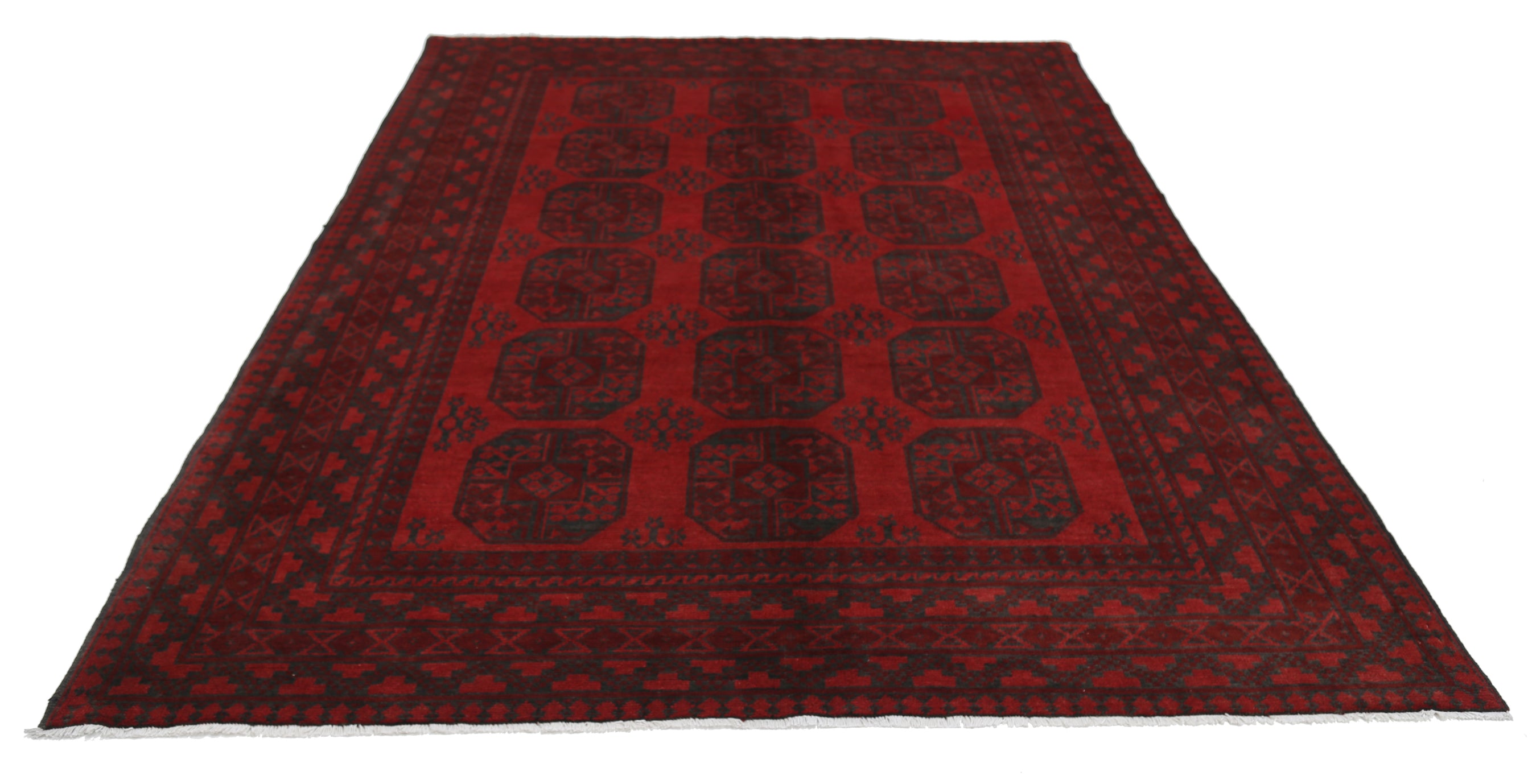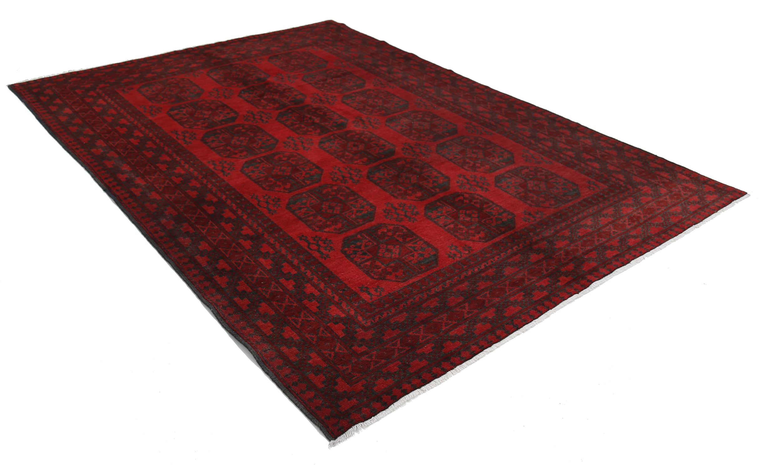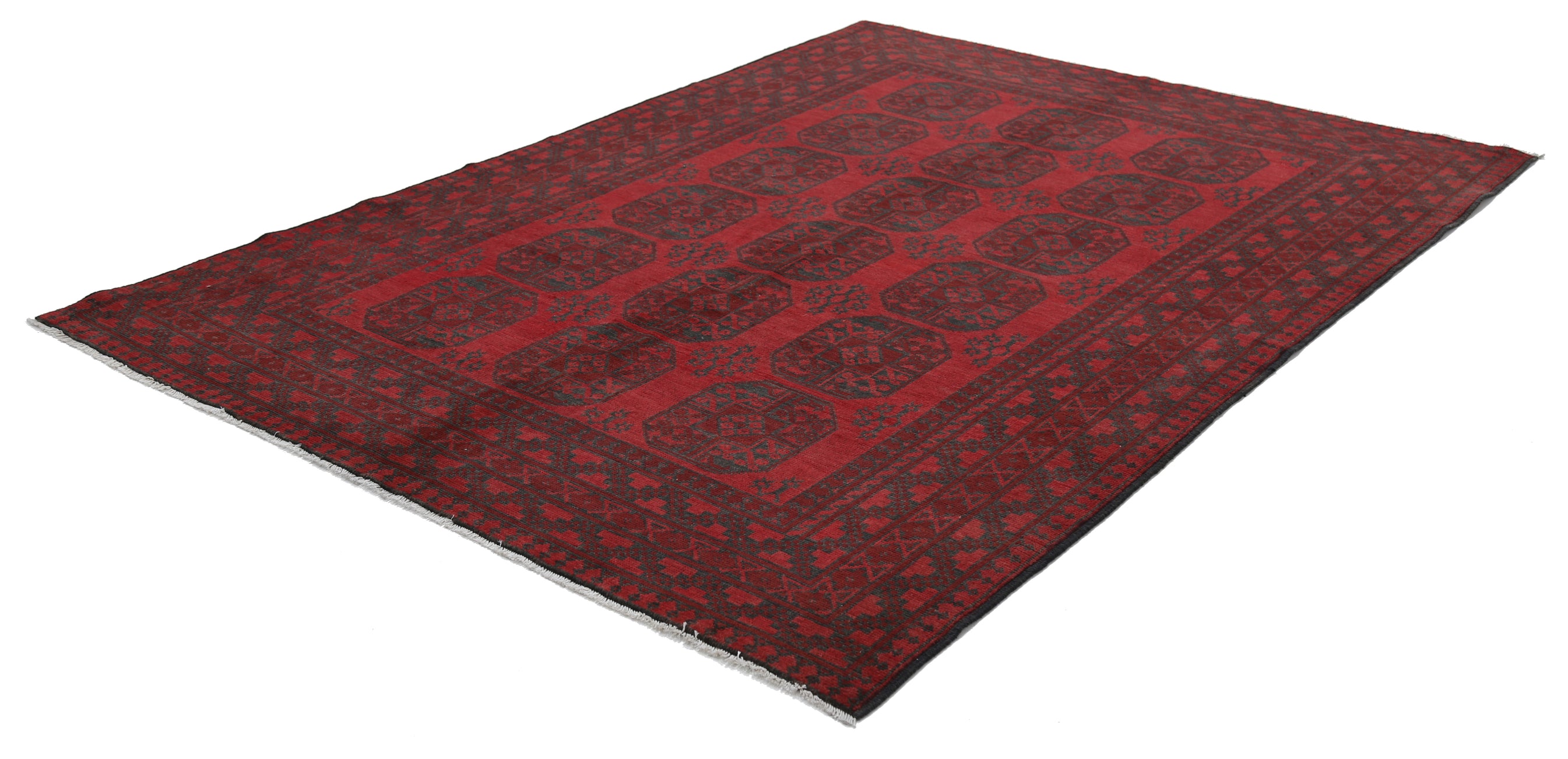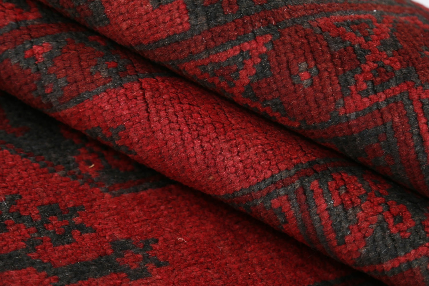 Hand-Knotted Afghan Tribal Geometric Wool Rug - 6'7" x 9'2"