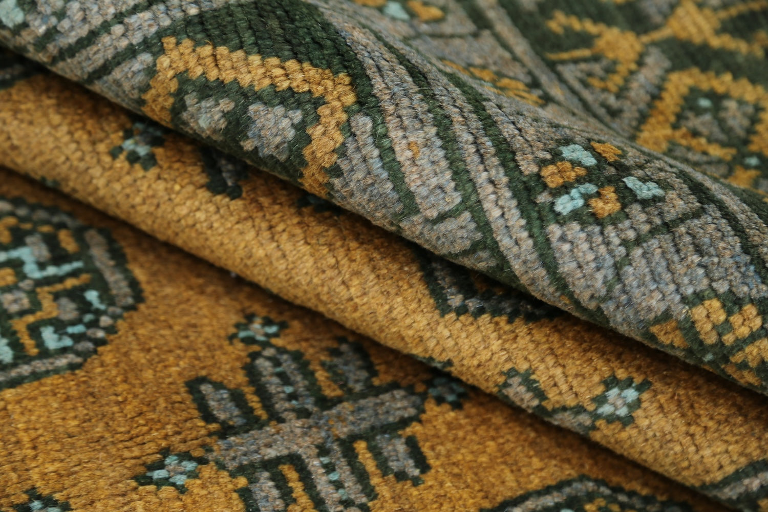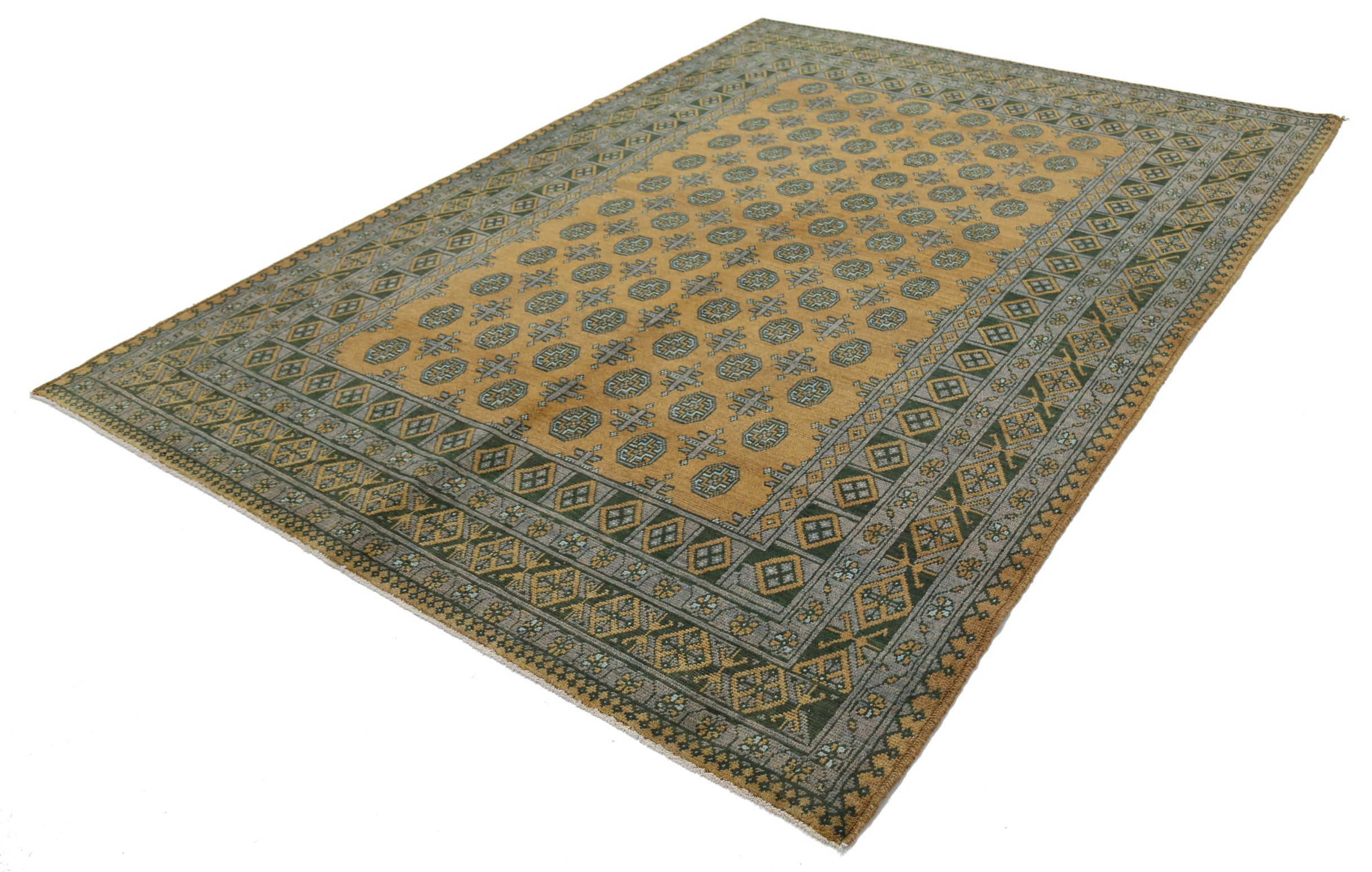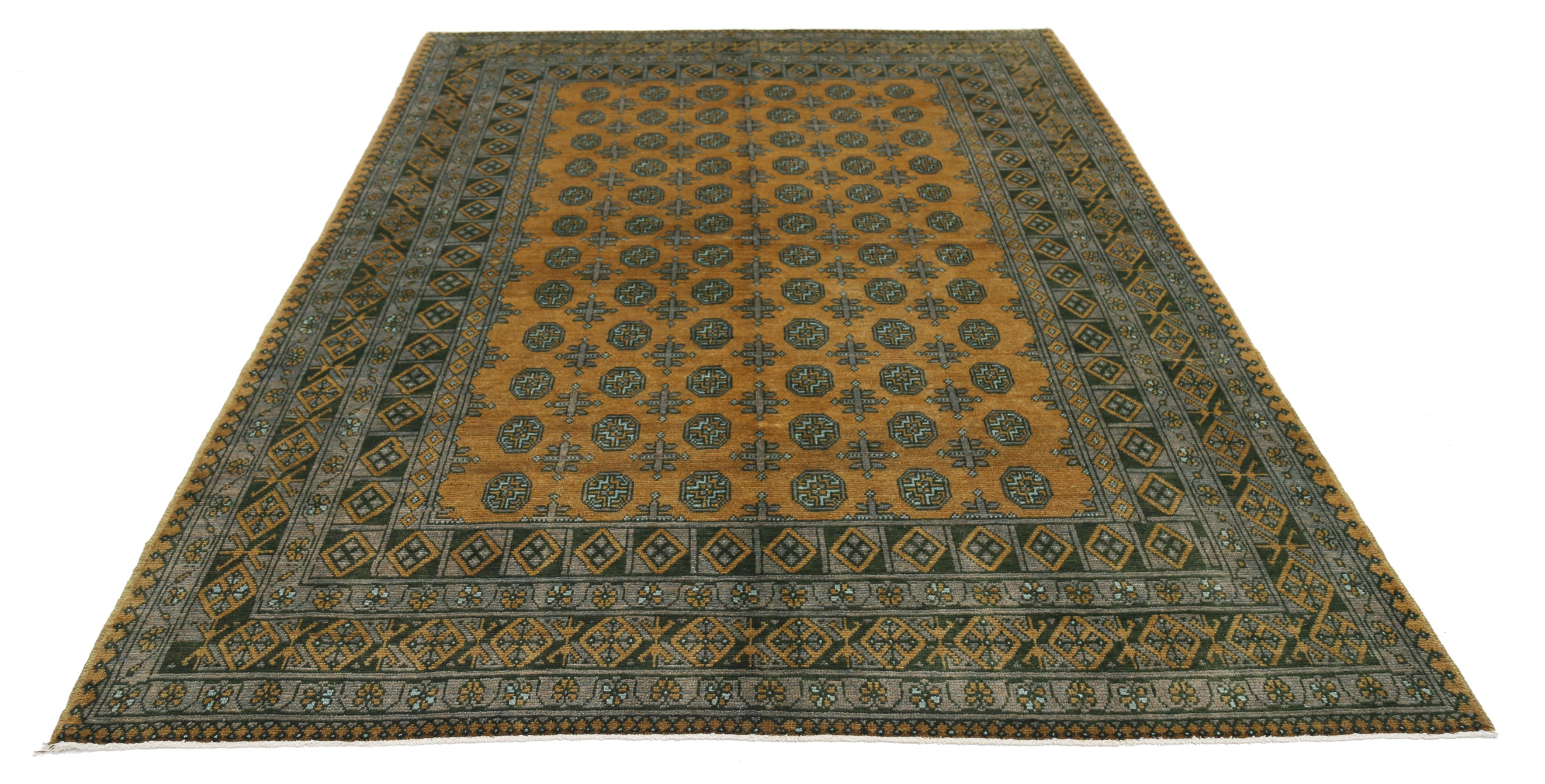 This hand-knotted Afghan wool rug features a striking tribal geometric pattern inspired by traditional designs. Rugs of this type are known for their rich, earthy tones, featuring shades of red, blue, green, gold, and yellow, adding warmth and character to any space. Crafted with a loose weave knotting technique similar to the Oushak style, it blends timeless appeal with authentic craftsmanship.