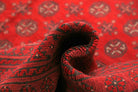 This hand-knotted Afghan wool rug features a striking tribal geometric pattern inspired by traditional designs. Rugs of this type are known for their rich, earthy tones, featuring shades of red, blue, green, gold, and yellow, adding warmth and character to any space. Crafted with a loose weave knotting technique similar to the Oushak style, it blends timeless appeal with authentic craftsmanship.