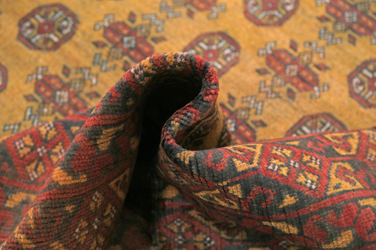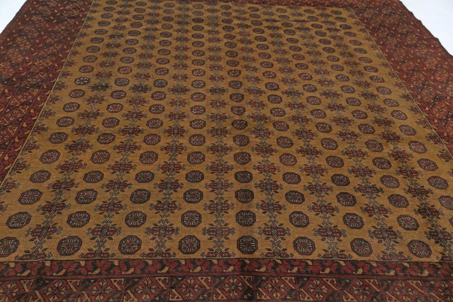 This hand-knotted Afghan wool rug features a striking tribal geometric pattern inspired by traditional designs. Rugs of this type are known for their rich, earthy tones, featuring shades of red, blue, green, gold, and yellow, adding warmth and character to any space. Crafted with a loose weave knotting technique similar to the Oushak style, it blends timeless appeal with authentic craftsmanship.