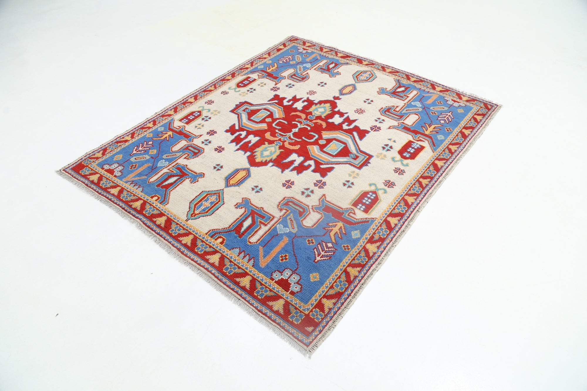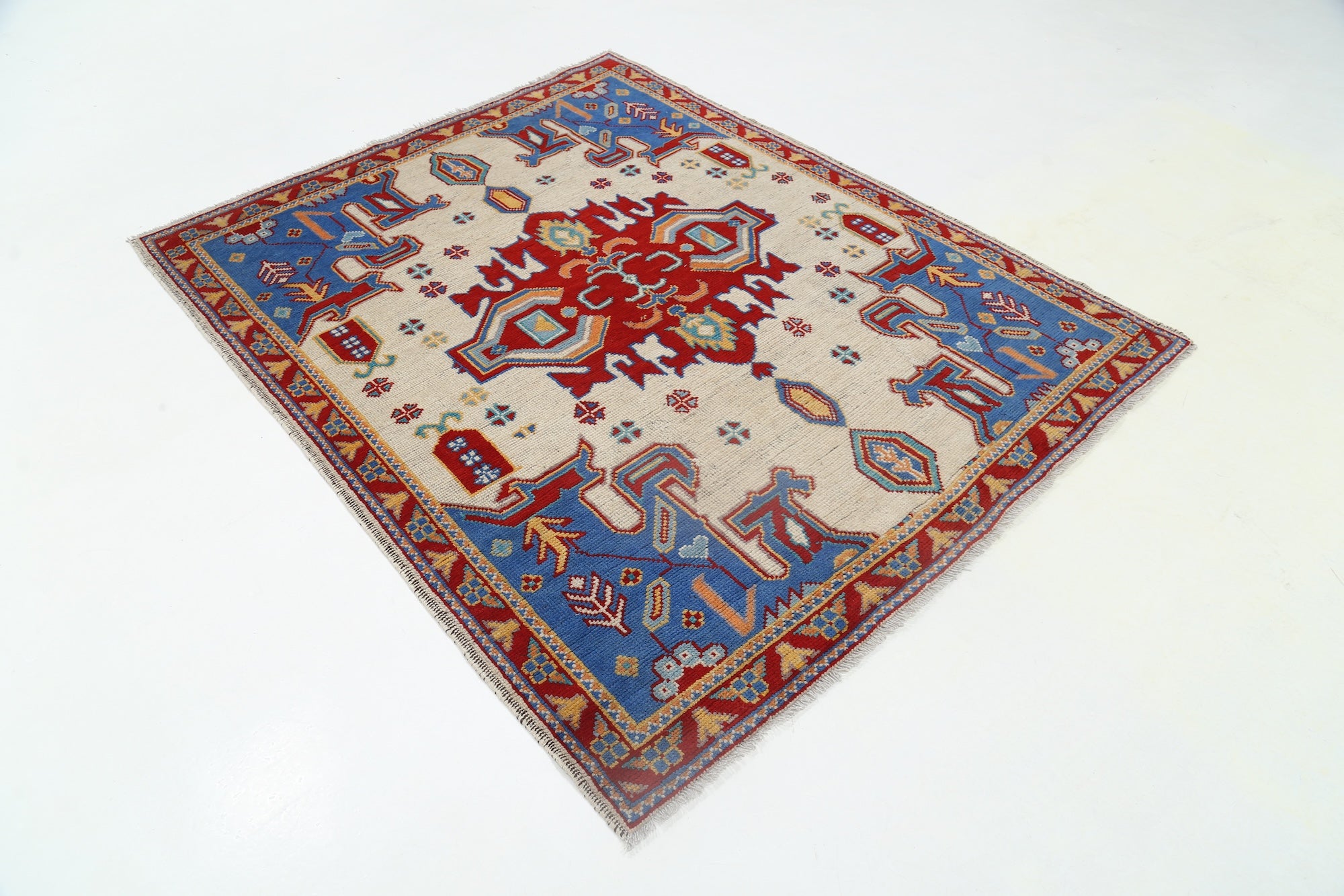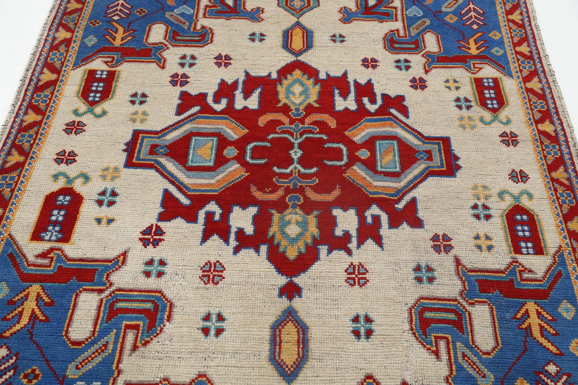 Hand-Knotted Tribal Geometric Wool Rug - 4'11" x 6'2"