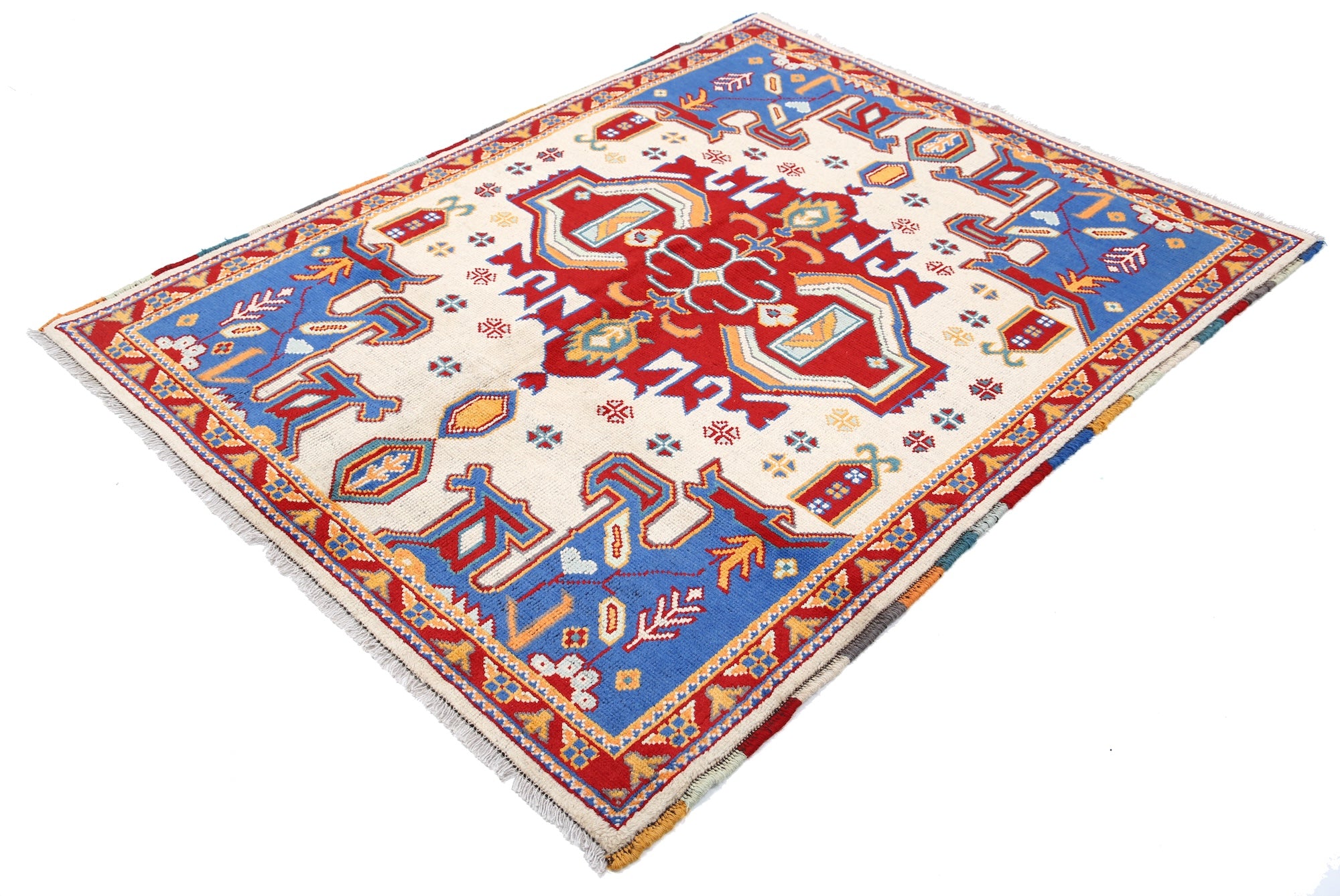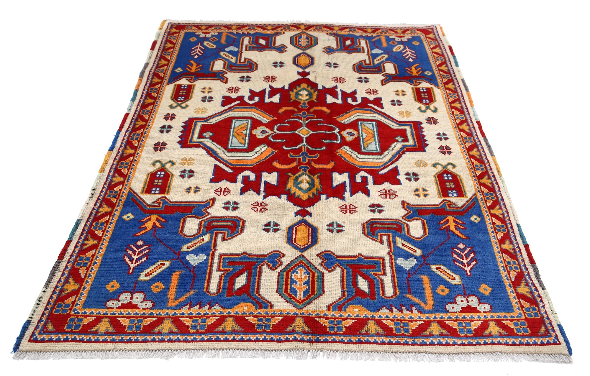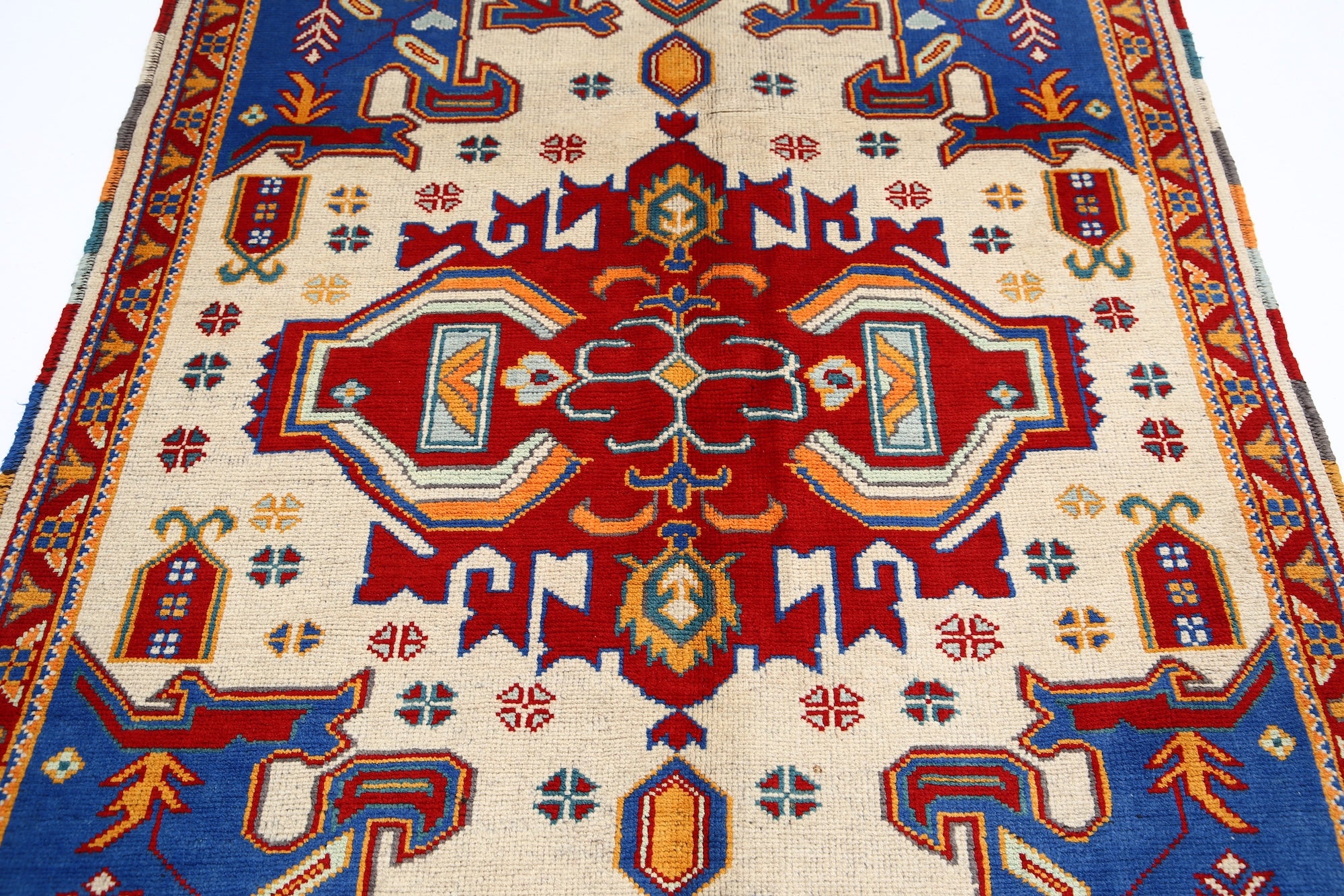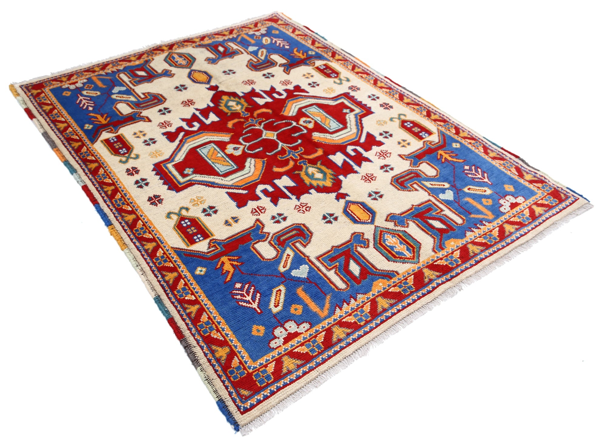 Hand-Knotted Tribal Geometric Wool Rug - 4'9" x 6'4"