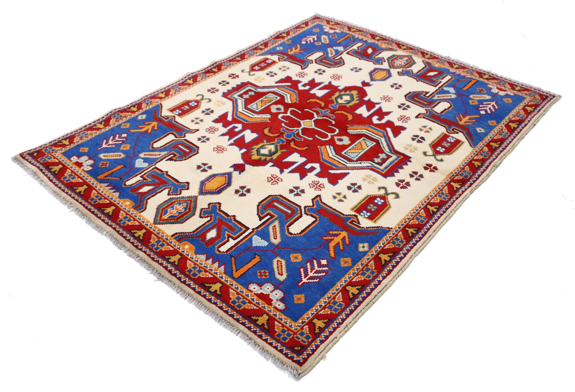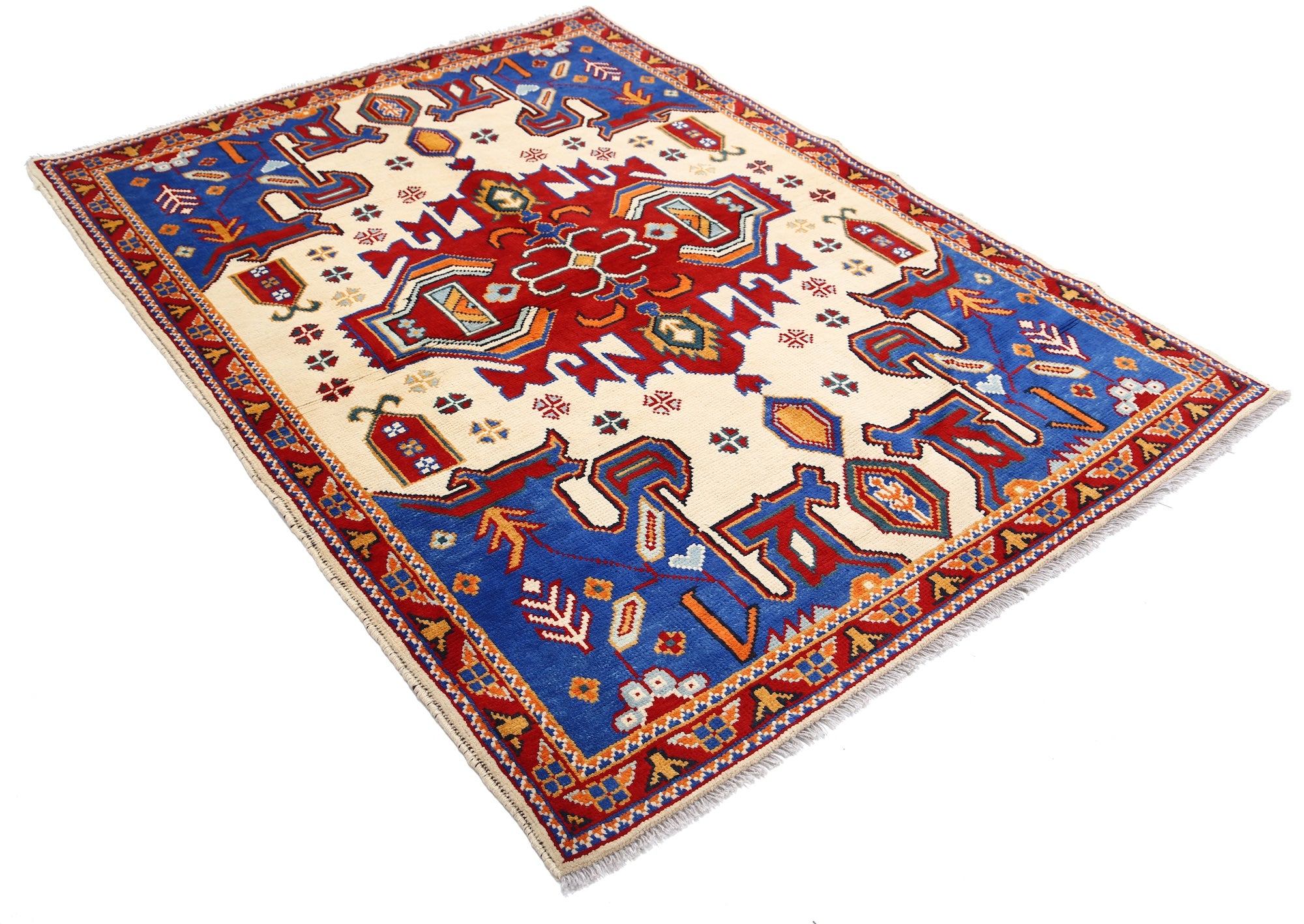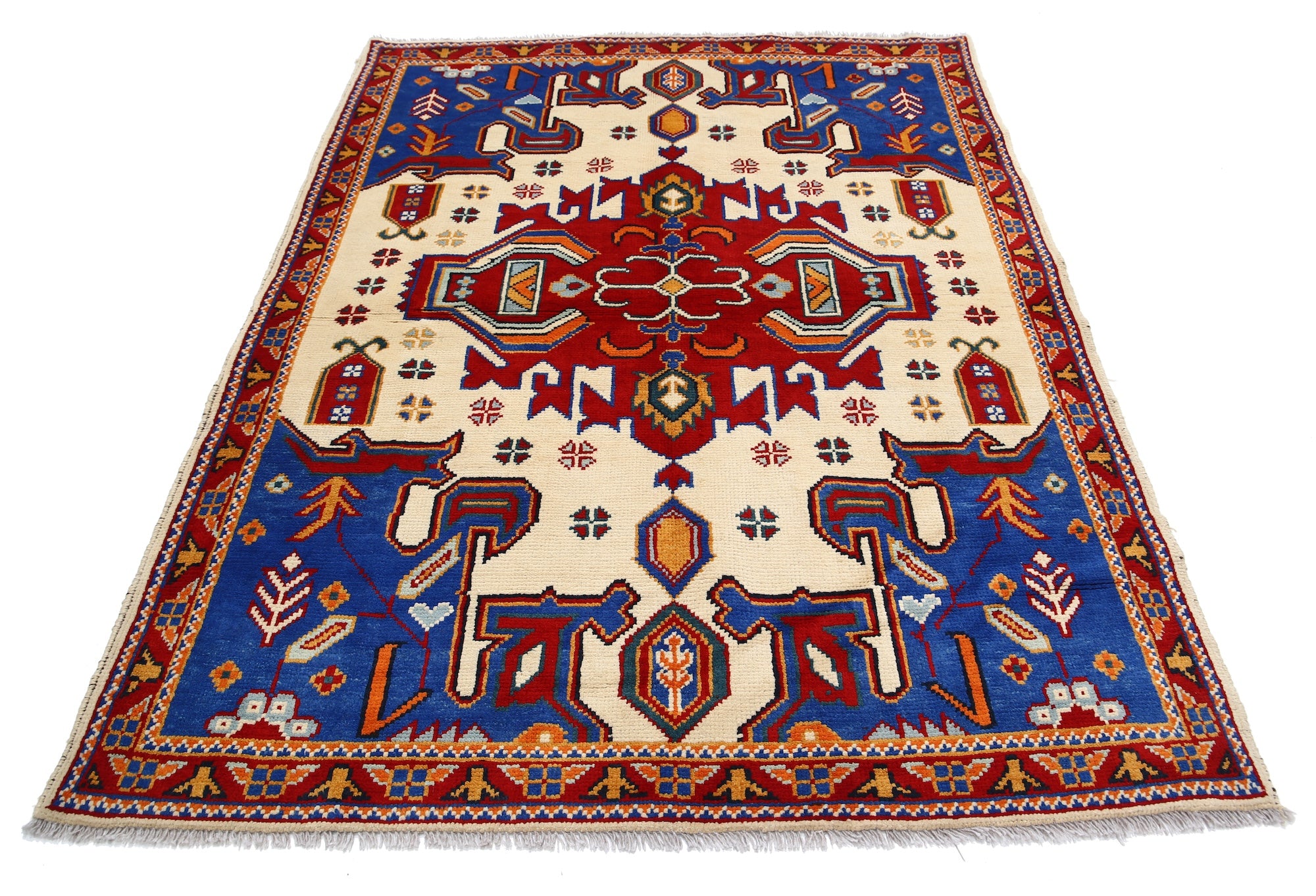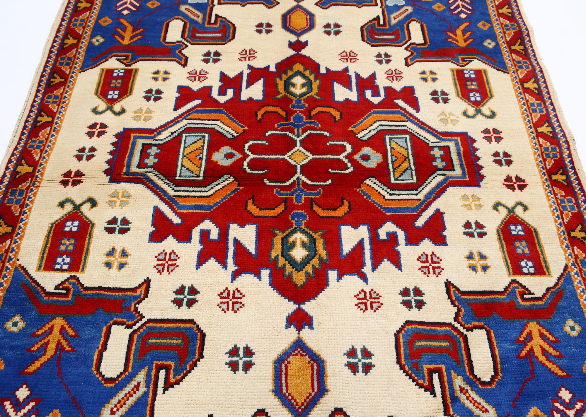 Hand-Knotted Tribal Geometric Wool Rug - 5'0" x 6'10"