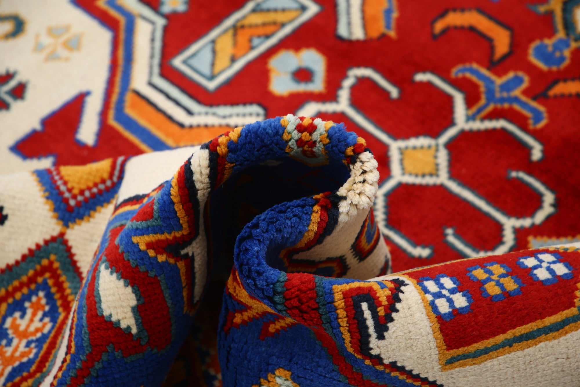 The hand-knotted Afghan wool rug features an intricate tribal geometric design, celebrated for its cultural heritage and timeless elegance. Woven by skilled artisans, it offers exceptional durability, making it ideal for high-traffic areas. Its unique patterns and premium wool blend tradition with modern sophistication, adding warmth and character to any interior.
