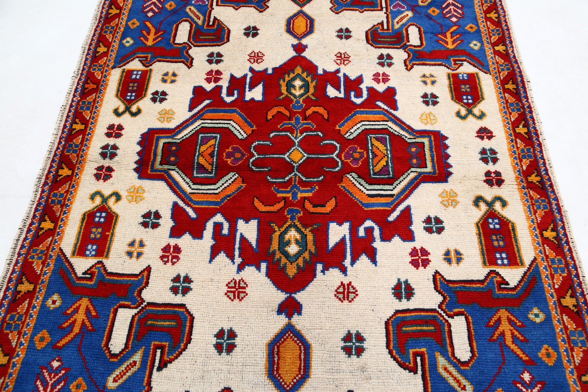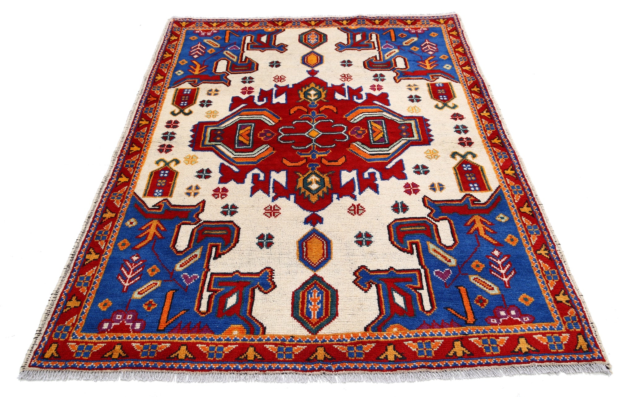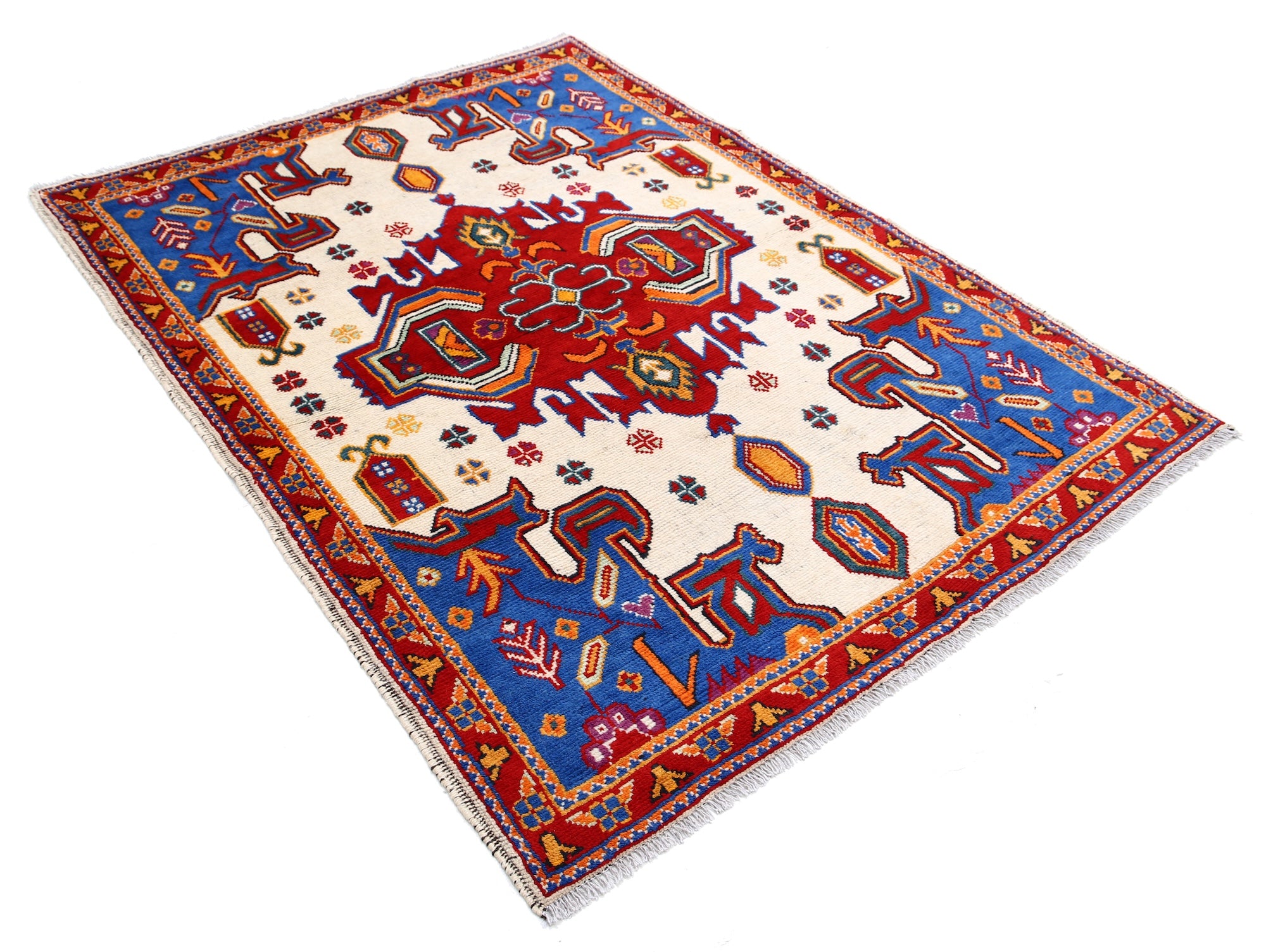 The hand-knotted Afghan wool rug features an intricate tribal geometric design, celebrated for its cultural heritage and timeless elegance. Woven by skilled artisans, it offers exceptional durability, making it ideal for high-traffic areas. Its unique patterns and premium wool blend tradition with modern sophistication, adding warmth and character to any interior.