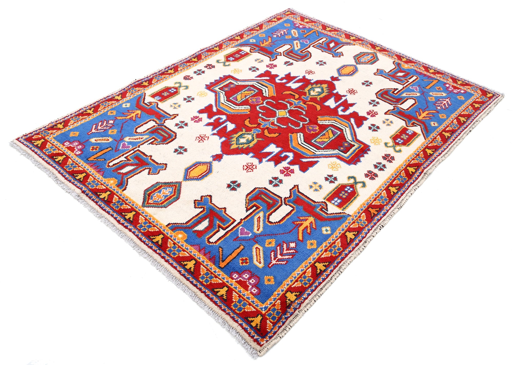 Hand-Knotted Tribal Geometric Wool Rug - 5'0" x 6'6"