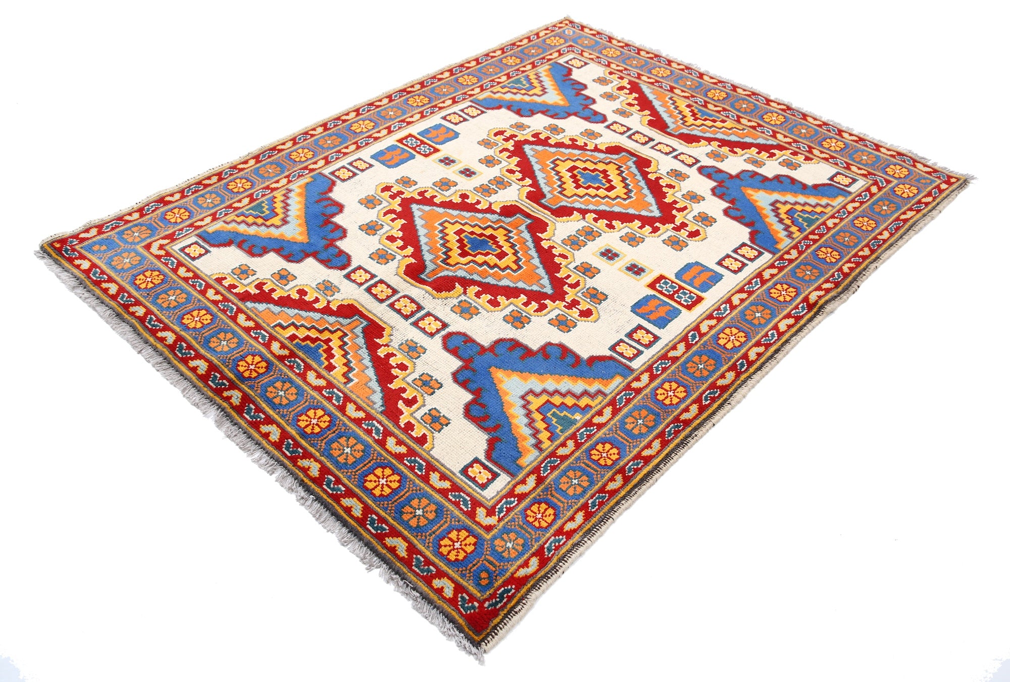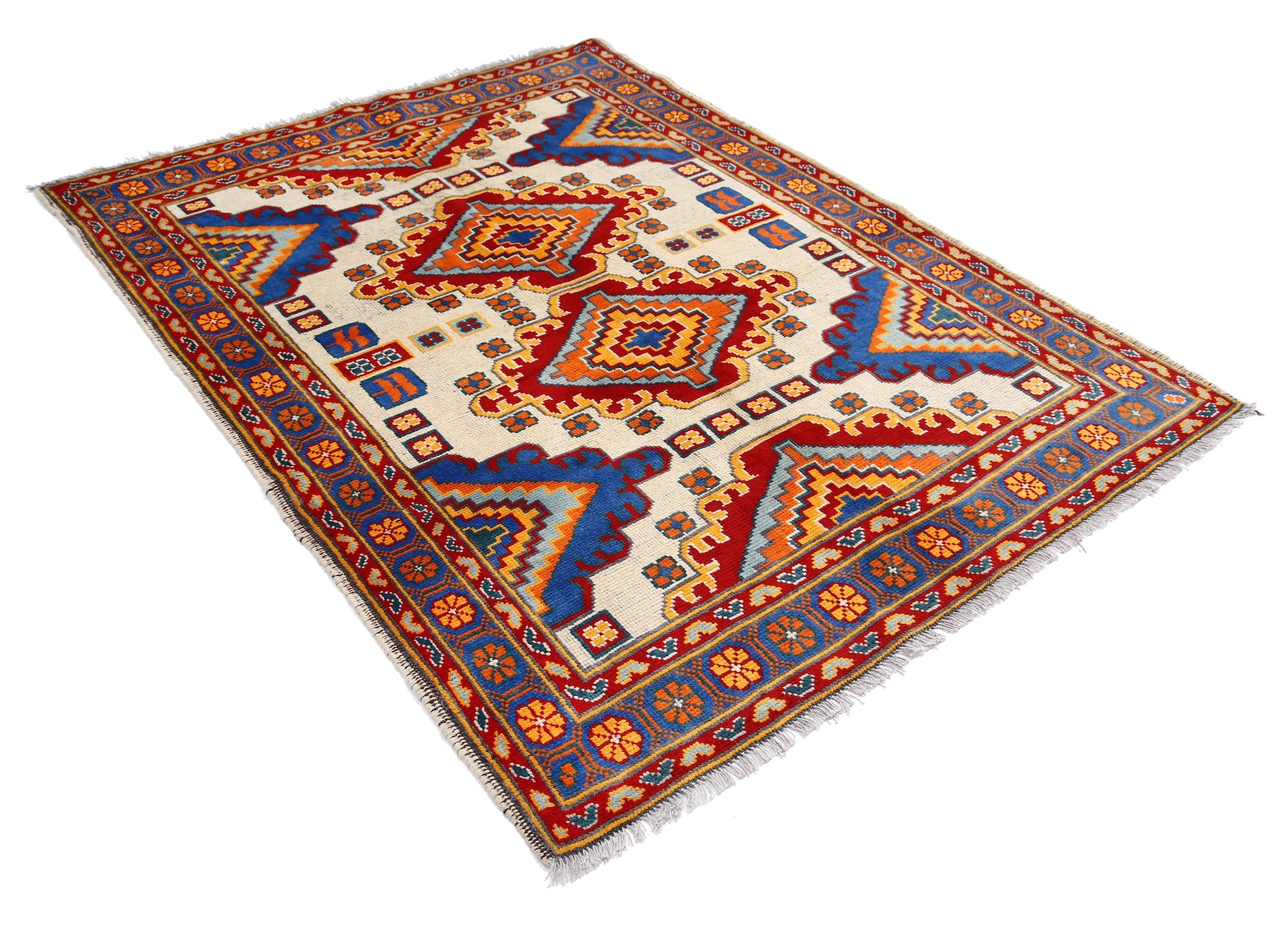 Hand-Knotted Tribal Geometric Wool Rug - 5'1" x 6'9"