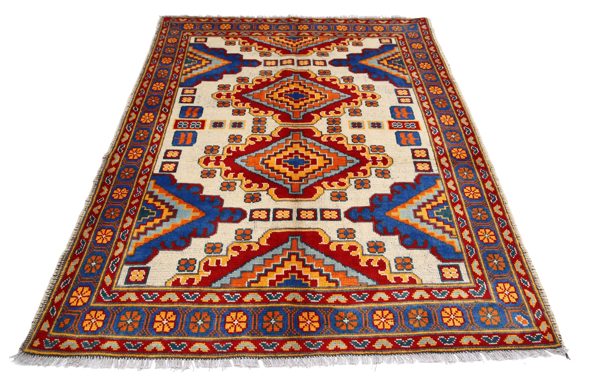 The hand-knotted Afghan wool rug features an intricate tribal geometric design, celebrated for its cultural heritage and timeless elegance. Woven by skilled artisans, it offers exceptional durability, making it ideal for high-traffic areas. Its unique patterns and premium wool blend tradition with modern sophistication, adding warmth and character to any interior.