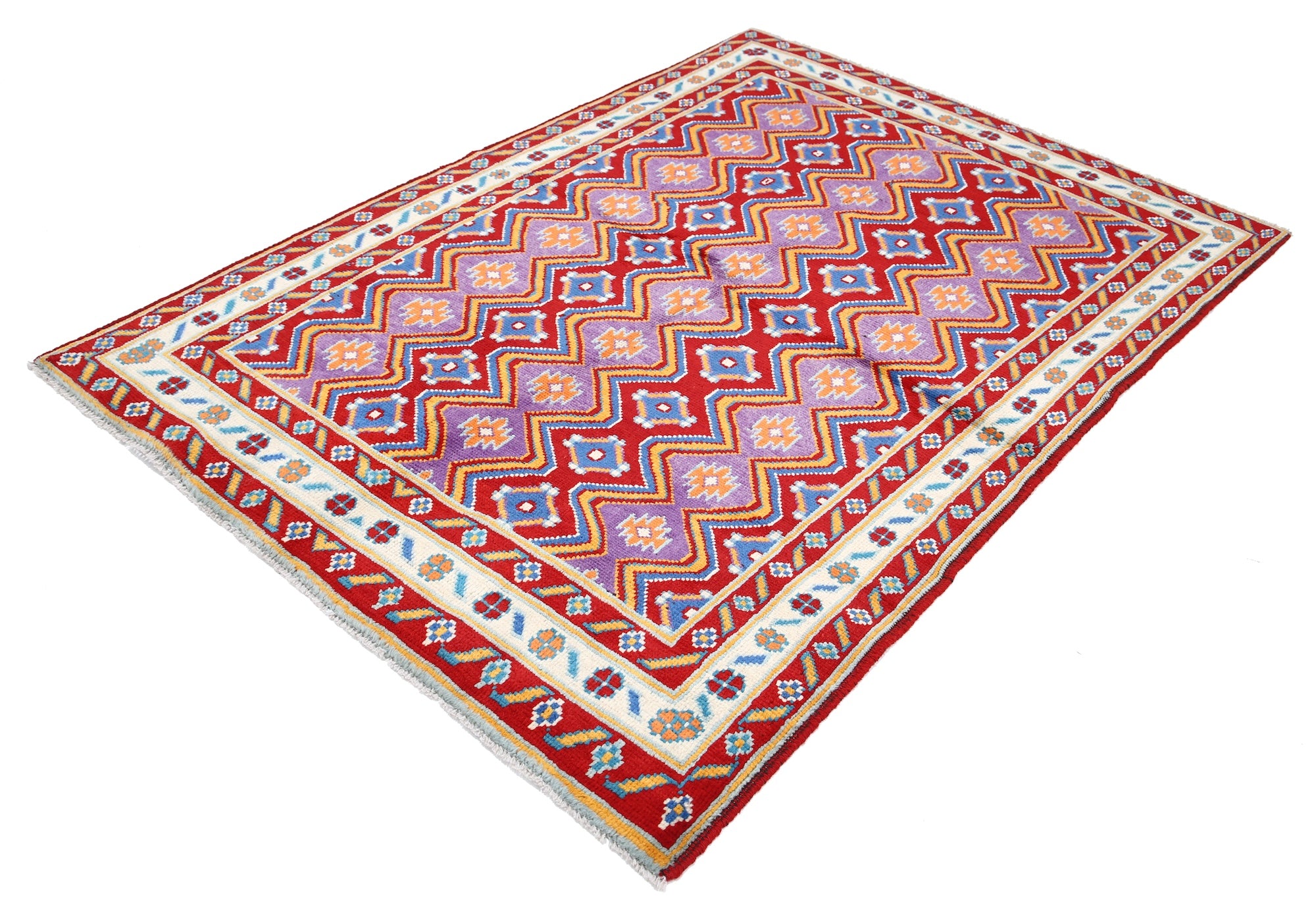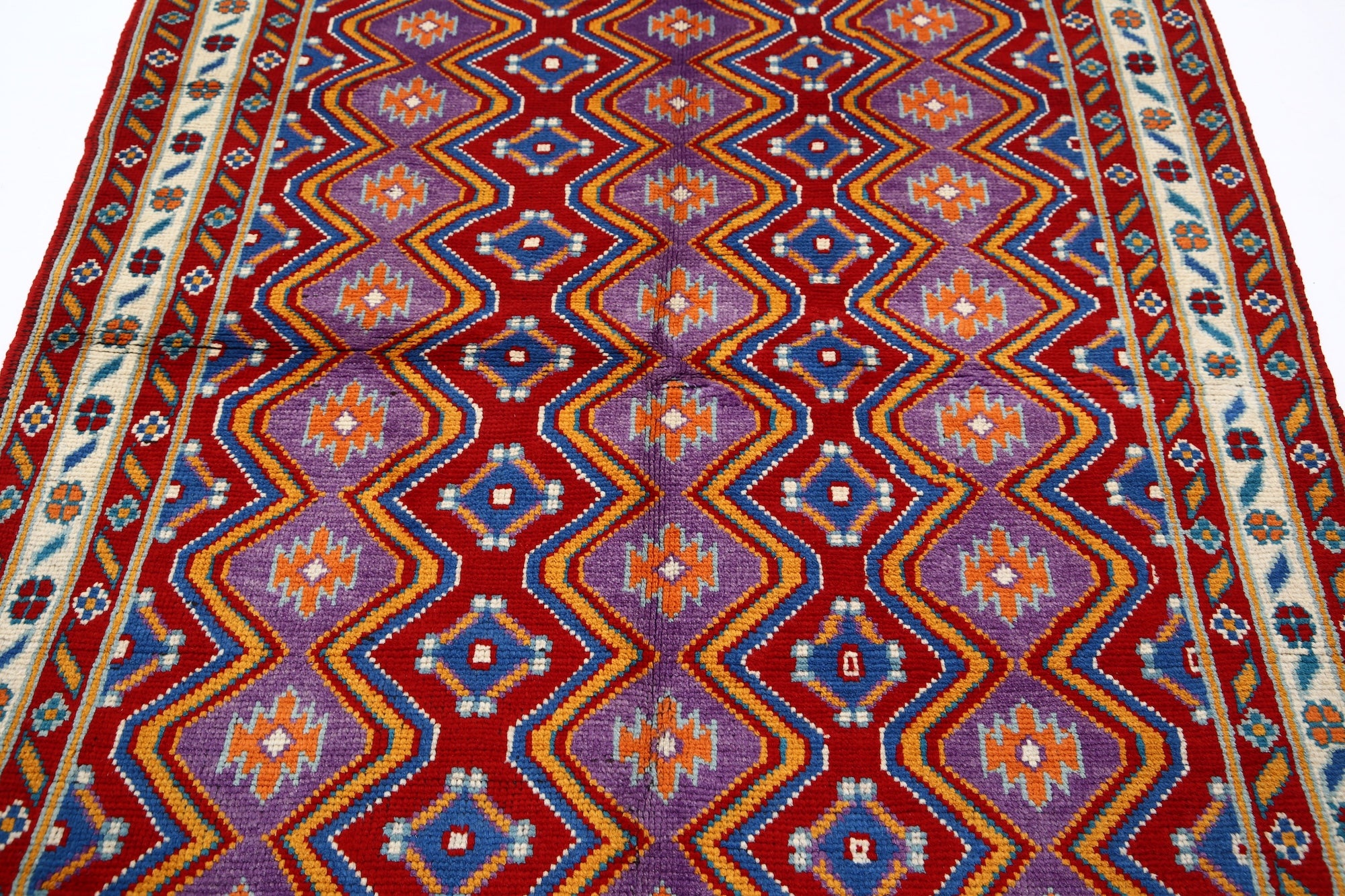Hand-Knotted Tribal Geometric Wool Rug - 4'10" x 6'9"
